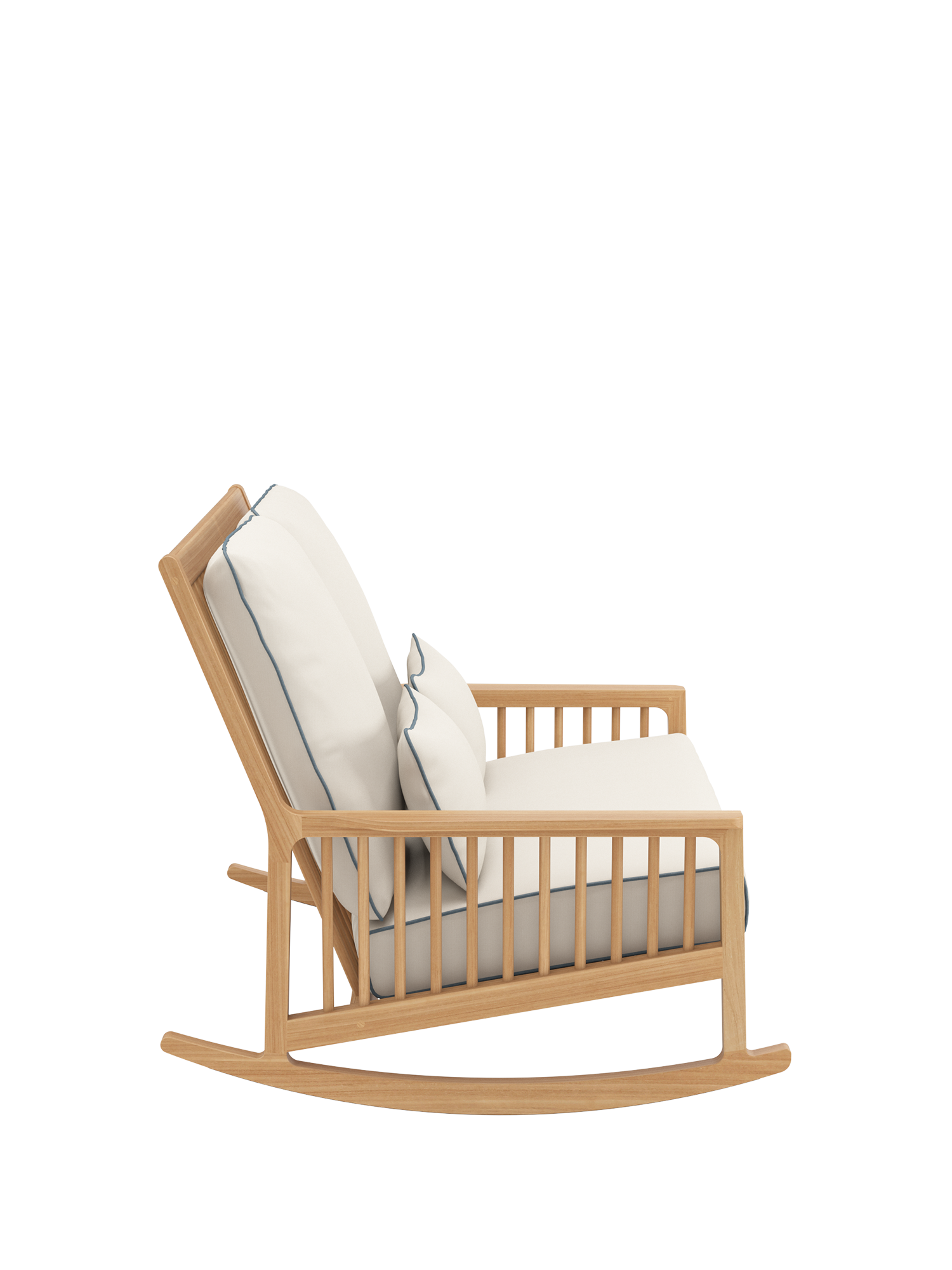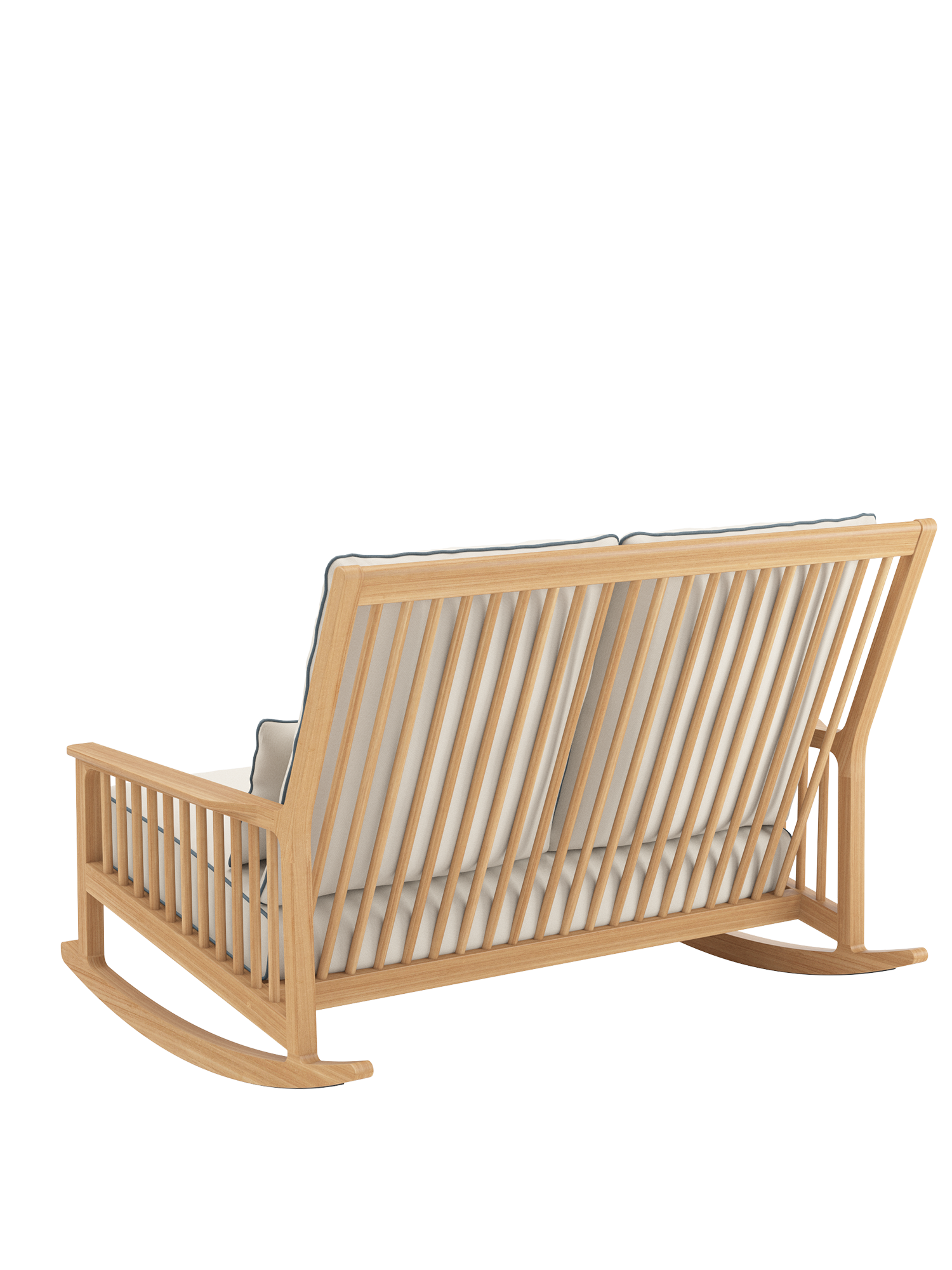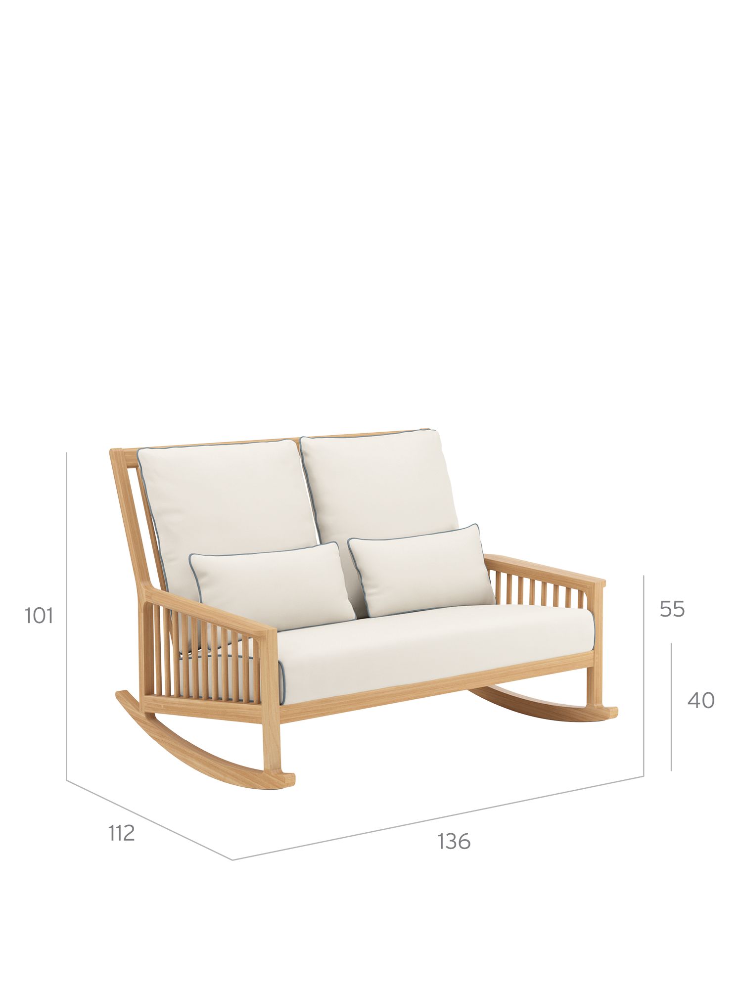 Die bewährten Qualitäten von Gartenbank und Schaukelstuhl potenzieren sich, wenn man sie vereint. Der Zweisitzer ist dazu da, glückliche Stunden zu teilen und Behaglichkeit Seite an Seite zu geniessen. Newhaven verwöhnt dabei mit einer schulterhohen Rückenlehne und besonders tiefem Sitz. Klassisches Teak bringt die nötige Bodenhaftung, elegantes Design den erwünschten Schwung. Hat man beide Sitzplätze einmal ganz für sich allein, kann man sich darauf auch ausstrecken, die Beine hoch- und eines der weichen Kissen unter den Kopf legen.