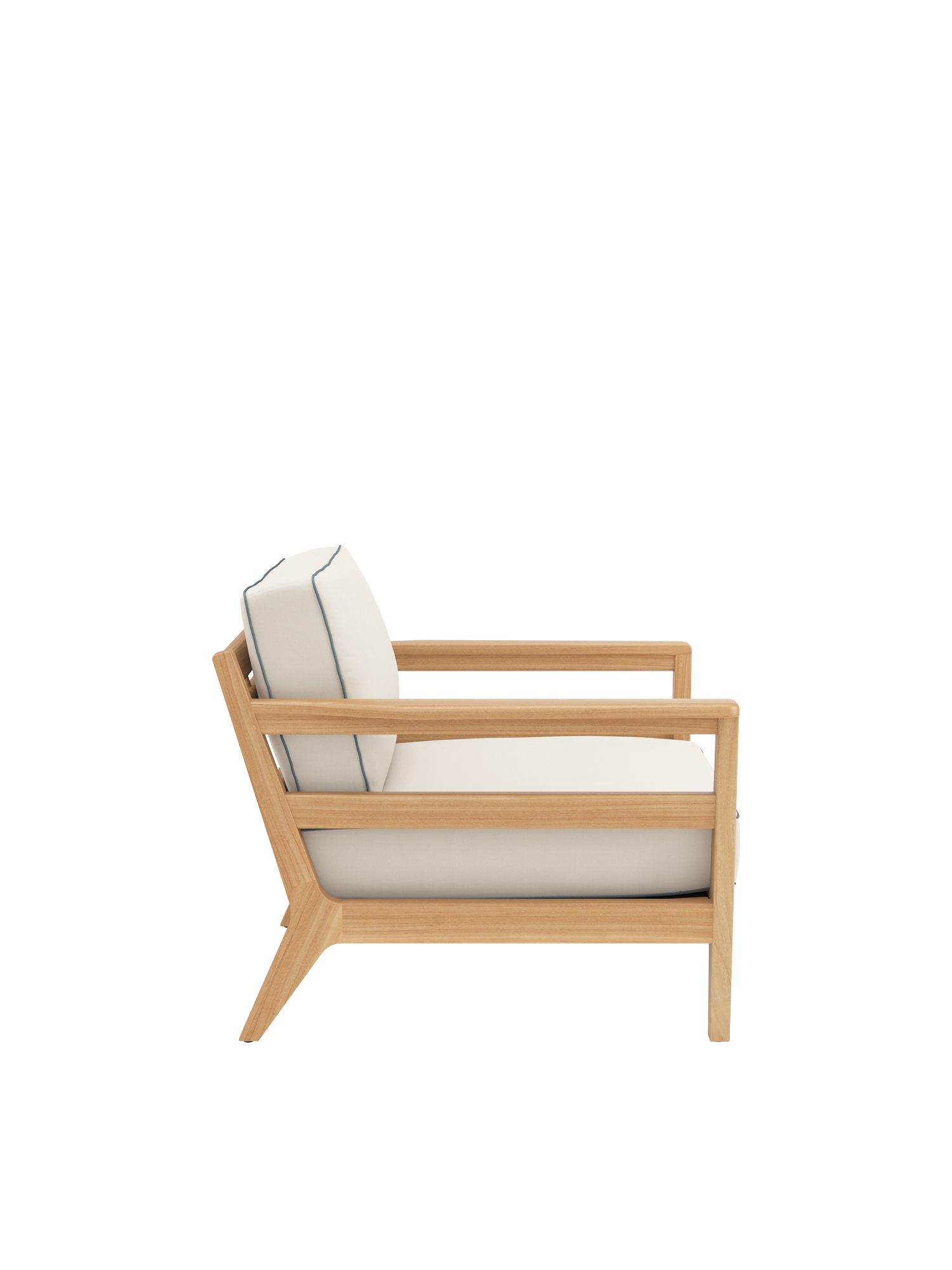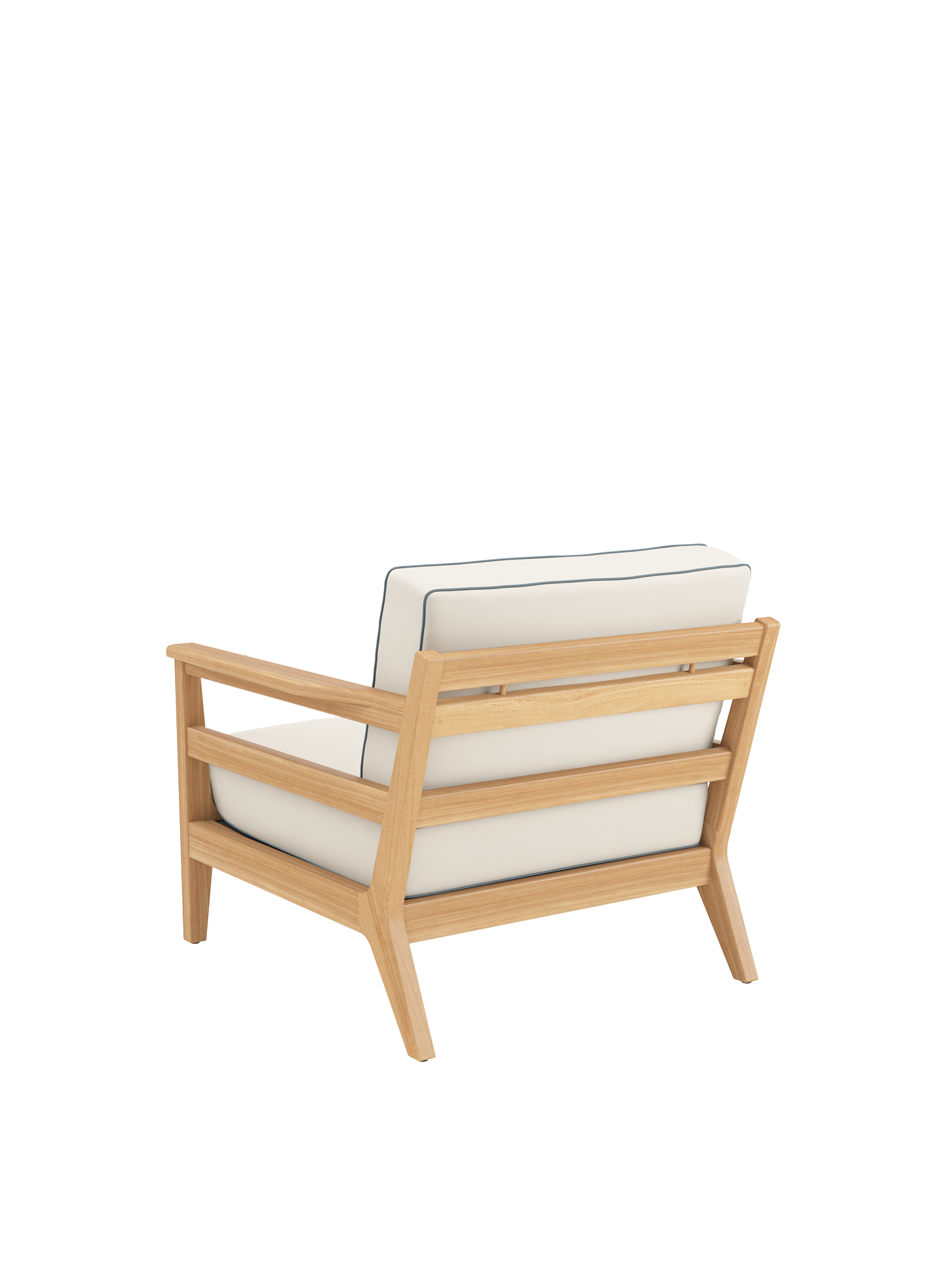 In die grosszügigen Polstermöbel im Loungeformat zieht man sich gerne zurück. Ihre Rahmen sind aus hochwertigem Plantagenteakholz gefertigt, die Sitzflächen mit einem Gewebe bespannt, das die komfortablen Polster sicher trägt. Als markantes Merkmal verleihen aufwendig verarbeitete Keder dem klassischen Refugium seine maritime Anmutung. Alle Kissen sind farbig umrandet.