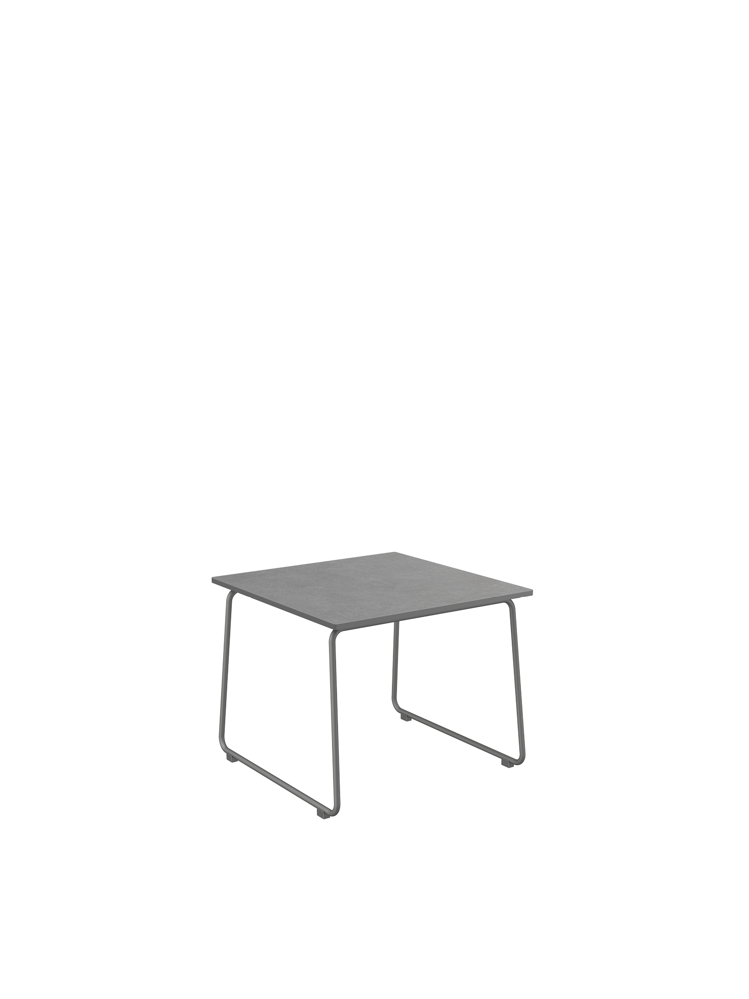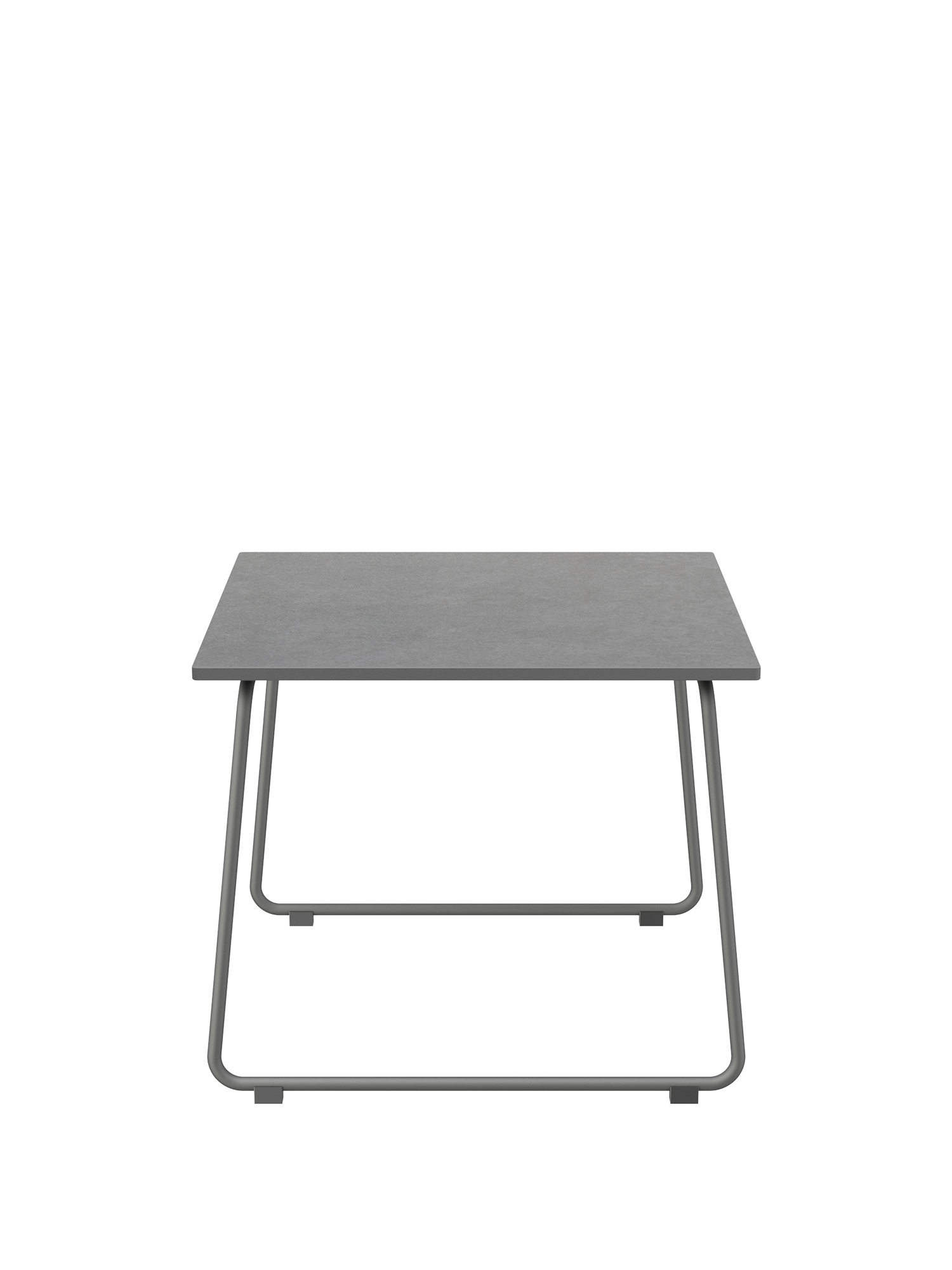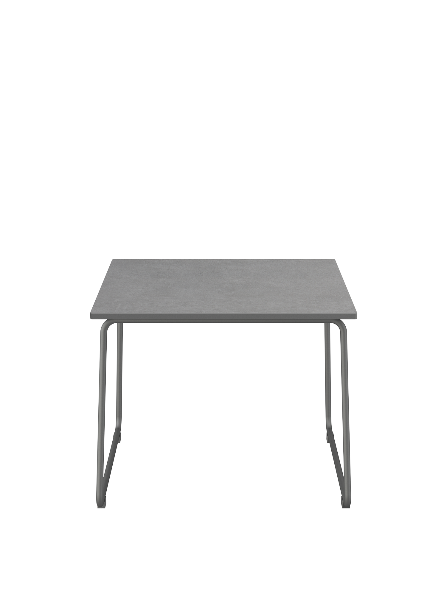 Der moderne Beistelltisch hat ein Gestell aus graphitgrau pulverbeschichtetem Edelstahl und eine Kunstharzplatte im Farbton Shade.