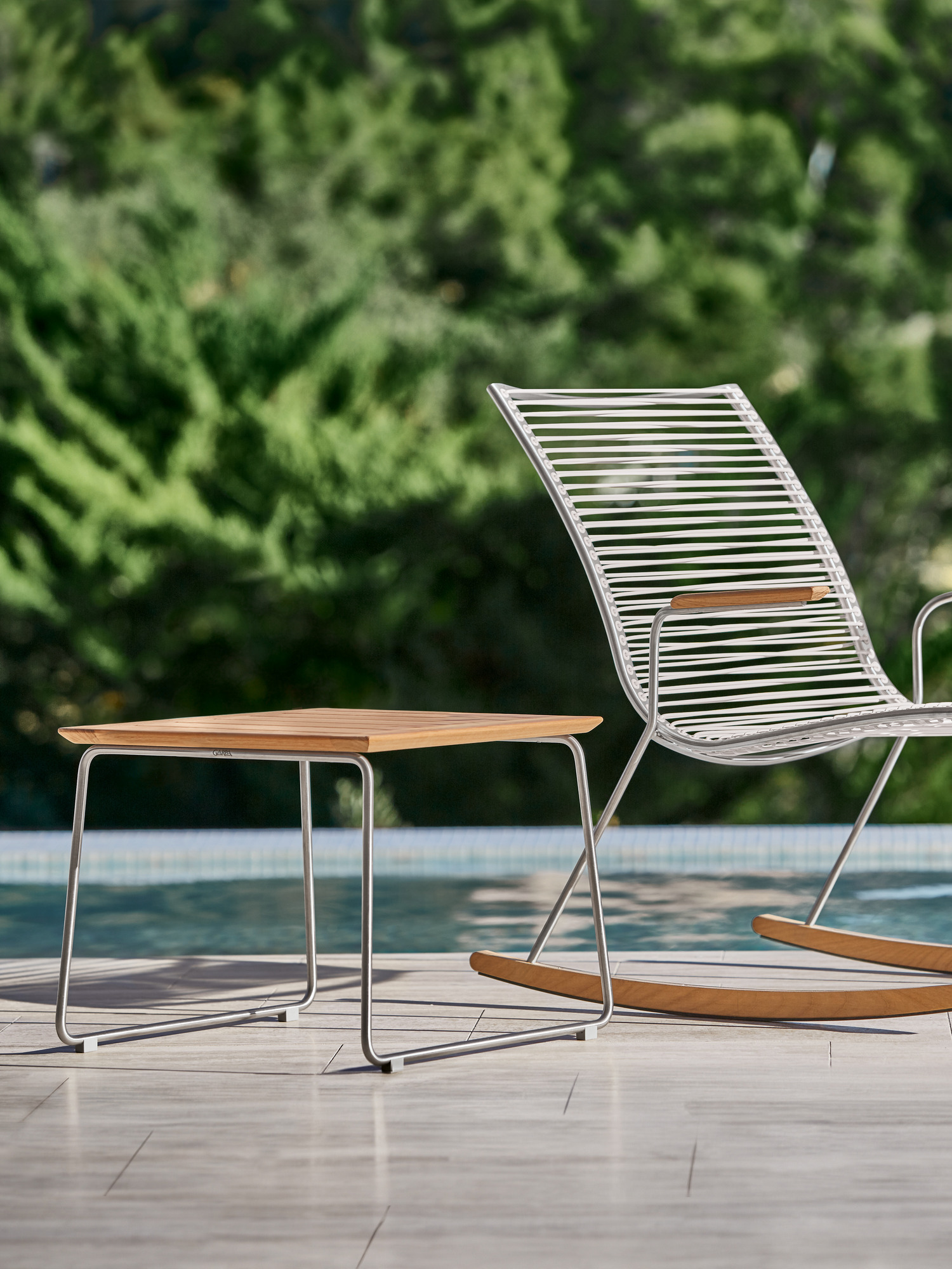 Pan Beistelltisch Edelstahl/Teak 48 x 48