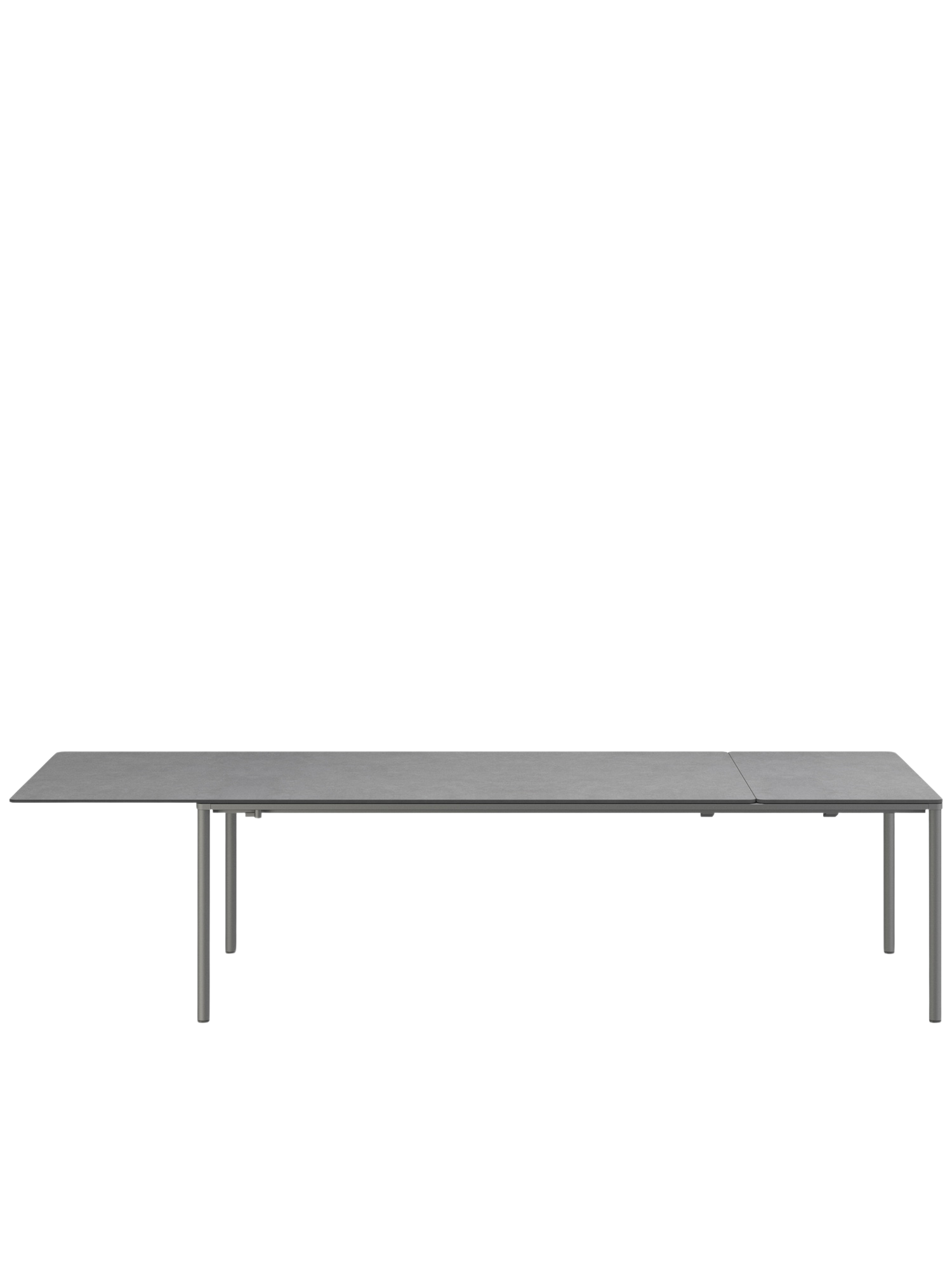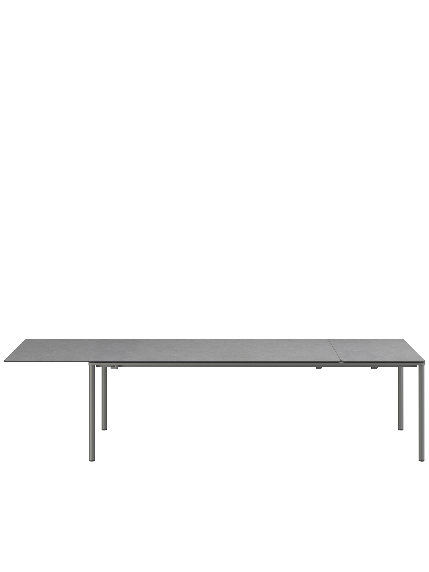 Die innovative und leichtgängige Ausziehmechanik der Portland Tische sorgt für einen fliessenden Übergang vom Tisch zur Tafel. Beim mittleren und grossen Modell der Serie lagert die Einlegeplatte im Tisch, beim kleinen Tisch wird sie in einer separaten Tasche verwahrt. Zur Erweiterung wird die Tischplatte leicht mit wenigen Handgriffen seitlich verschoben. Beim grossen und mittleren Modell wird die Einlegeplatte so positioniert, dass die Tischplatte einen gleichen Überstand zu beiden Seiten hat oder aber auf einer Seite vollständig übersteht. In dieser Variante können alle Gäste längsseits sitzen und Beinfreiheit geniessen. Beim kleinen Tisch ist die Platte immer mittig ausgerichtet.