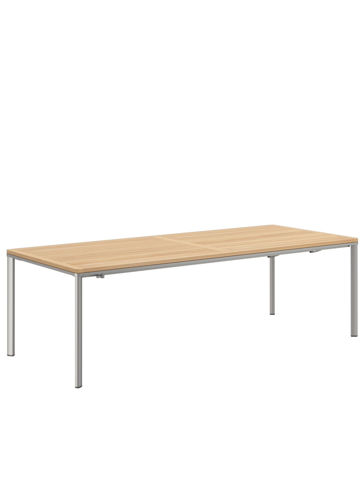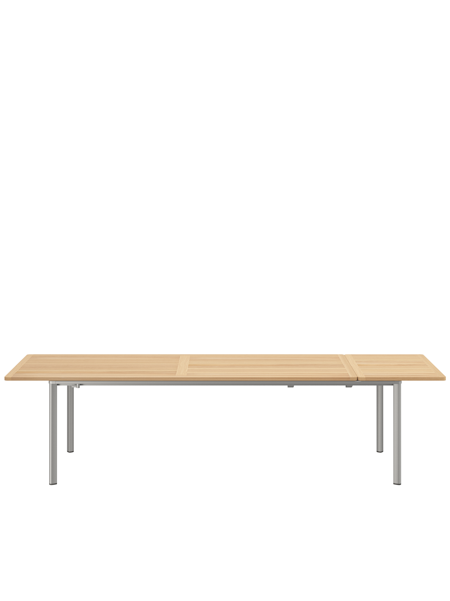 Im neuen Eloxalton Silk passt der Portland Ausziehtisch perfekt zu den Sitzmöbeln der Monterey Kollektion mit gleichfarbigem Gestell.