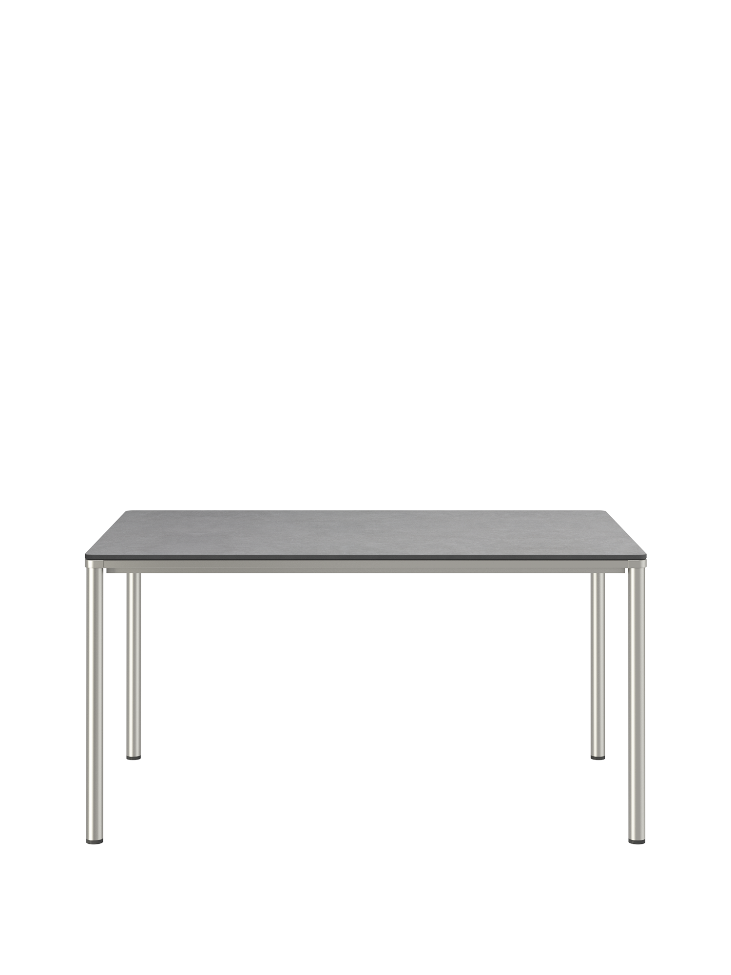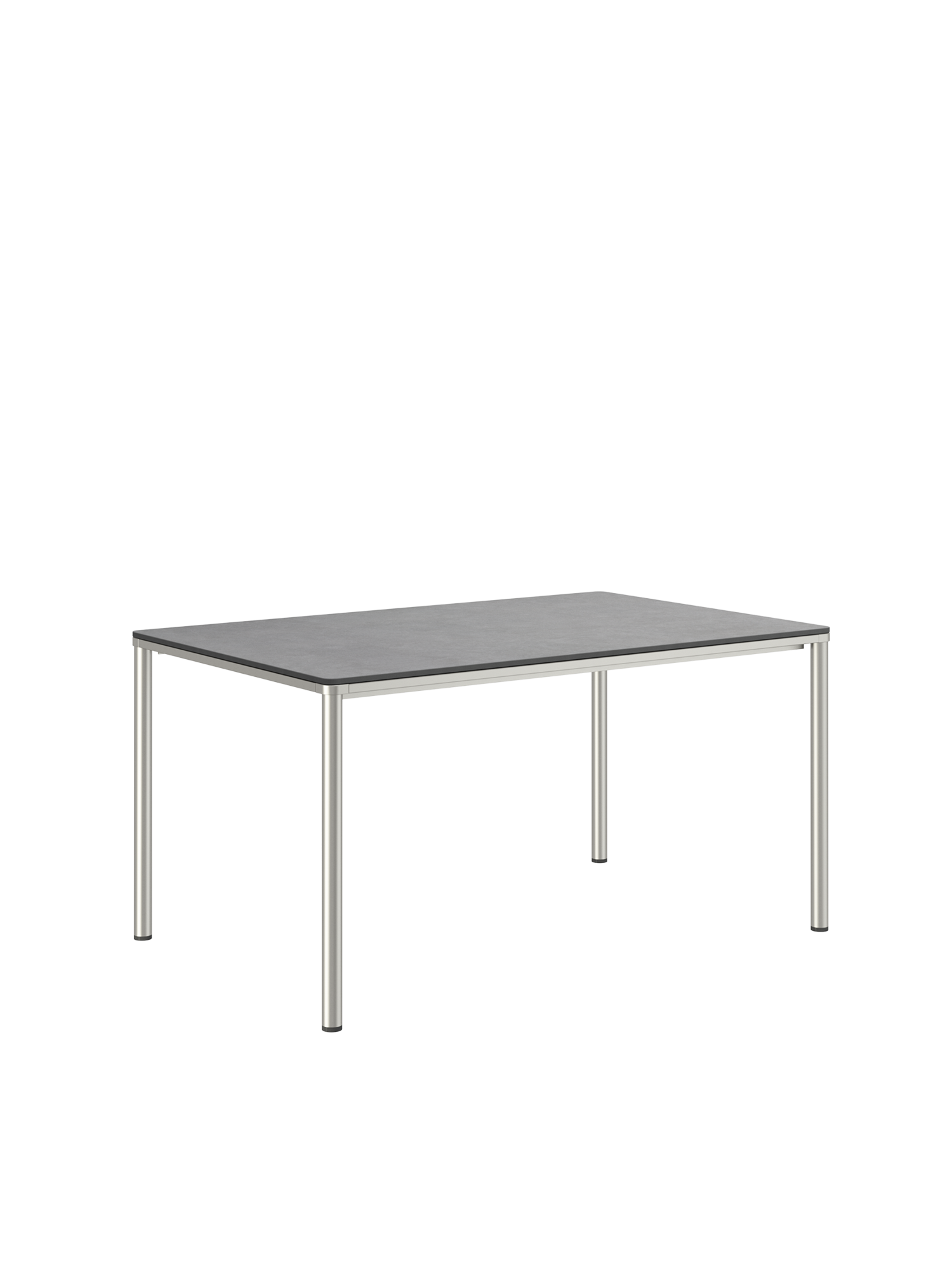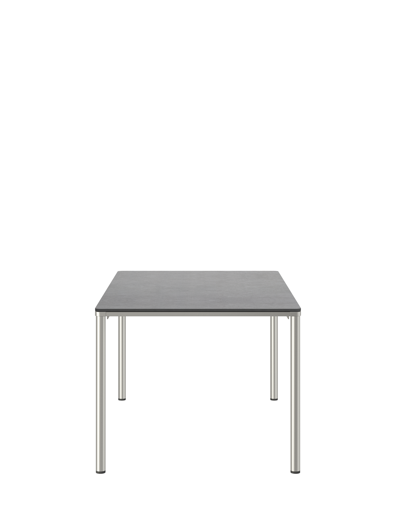 Eine umlaufende Zarge mit sanfter Rundung prägt das Design der Portland Tische. Sie sind der elegante Mittelpunkt jeder Gesellschaft. Die grosszügigen Tischplatten aus dunklem Kunstharz ruhen auf vier schlanken Beinen, das solide Edelstahlgestell harmoniert perfekt mit den Stühlen unserer modernen Möbelserien.