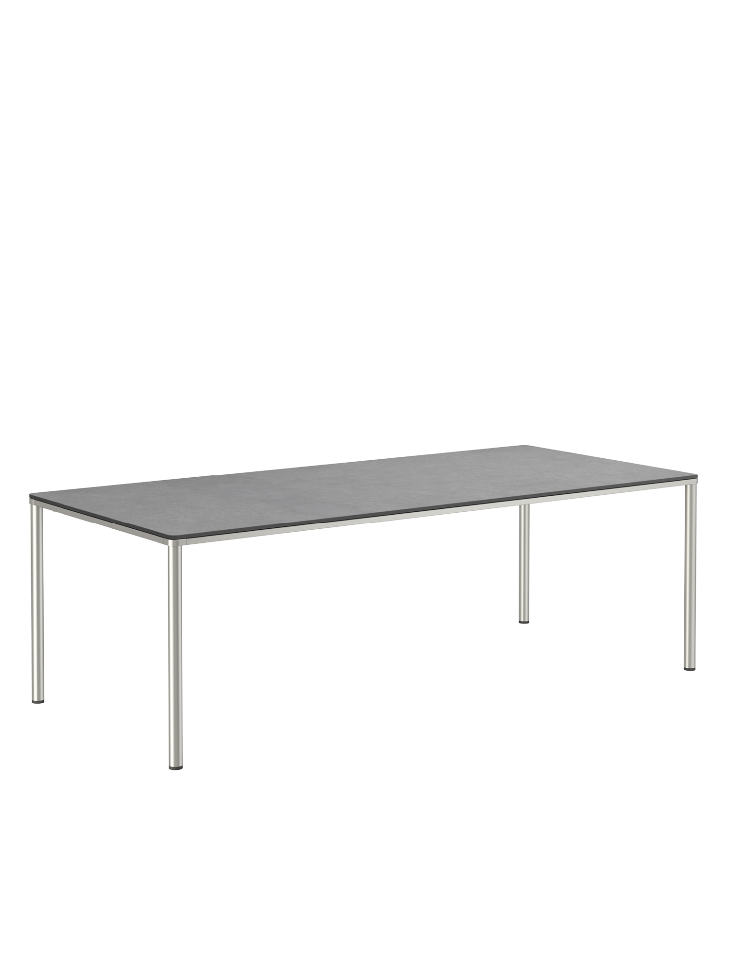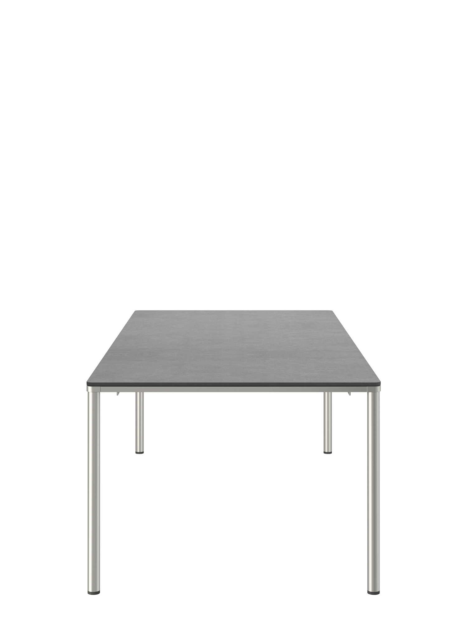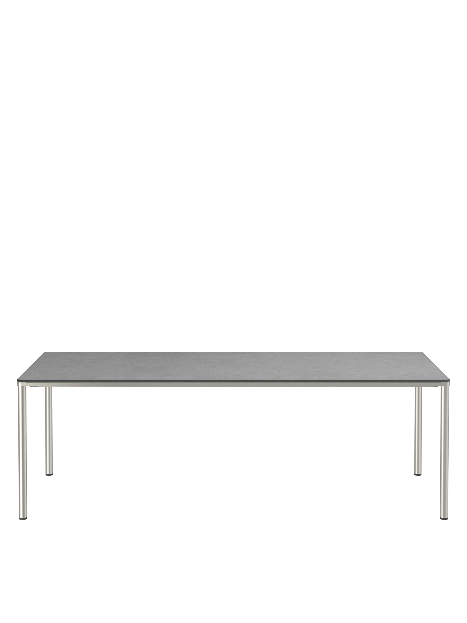 Eine umlaufende Zarge mit sanfter Rundung prägt das Design der Portlandtische. Sie sind der elegante Mittelpunkt jeder Gesellschaft. Die grosszügigen Tischplatten aus Kunstharz ruhen auf vier schlanken Beinen, das solide Edelstahlgestell harmoniert perfekt mit den Stühlen unserer modernen Möbelserien.