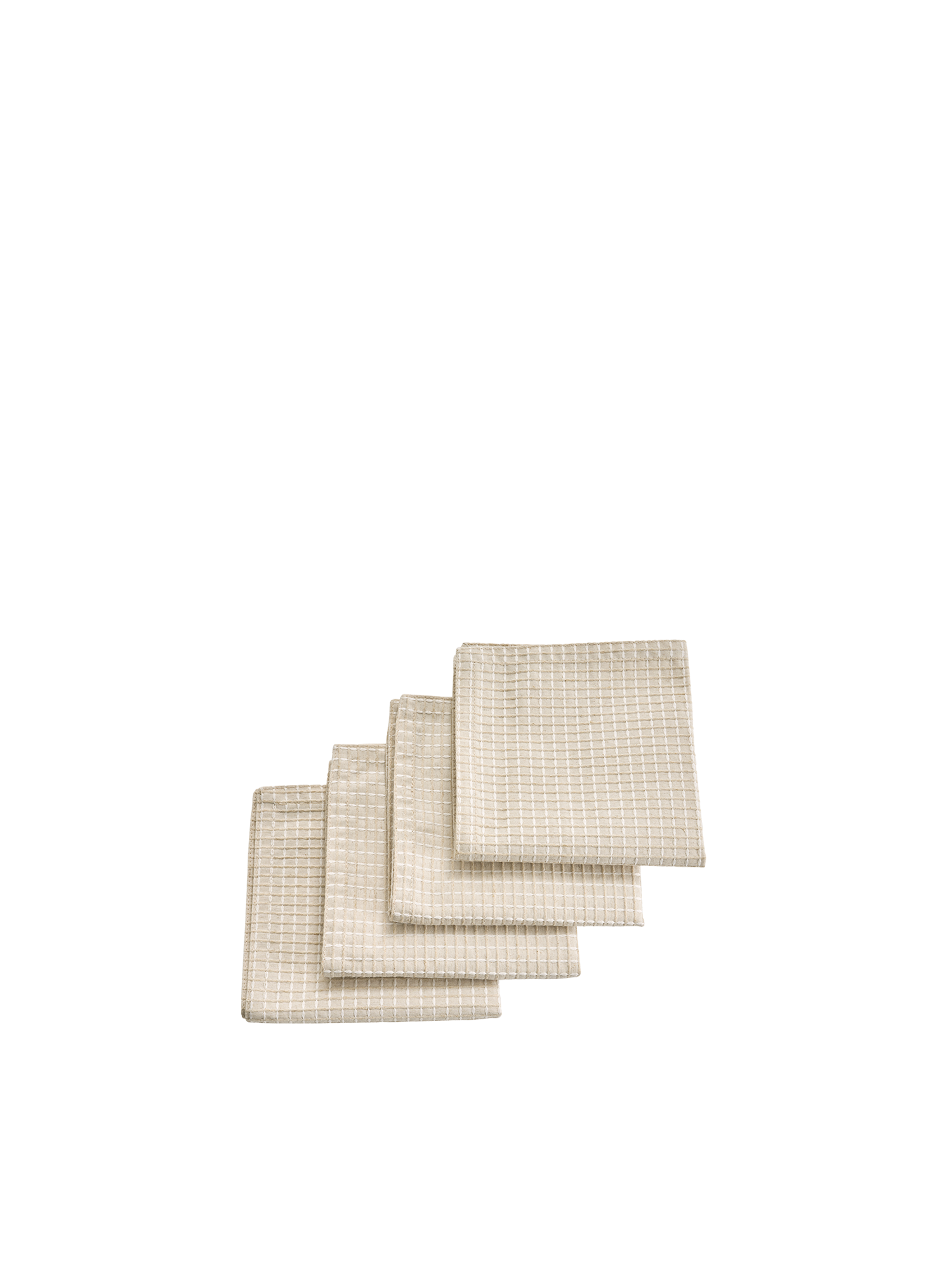 Die in Europa gefertigten Quadrado Servietten im 4er-Set interpretieren Tischkultur insofern nachhaltig, als sie sich für einen Schonwaschgang bei 30 Grad eignen und wiederwendbar sind. Das quadratische Muster ist nicht nur namensgebend, sondern weiss auch einen stilvollen Akzent zu setzen. Wir empfehlen, die Servietten nicht dauerhaft draussen zu lassen.
