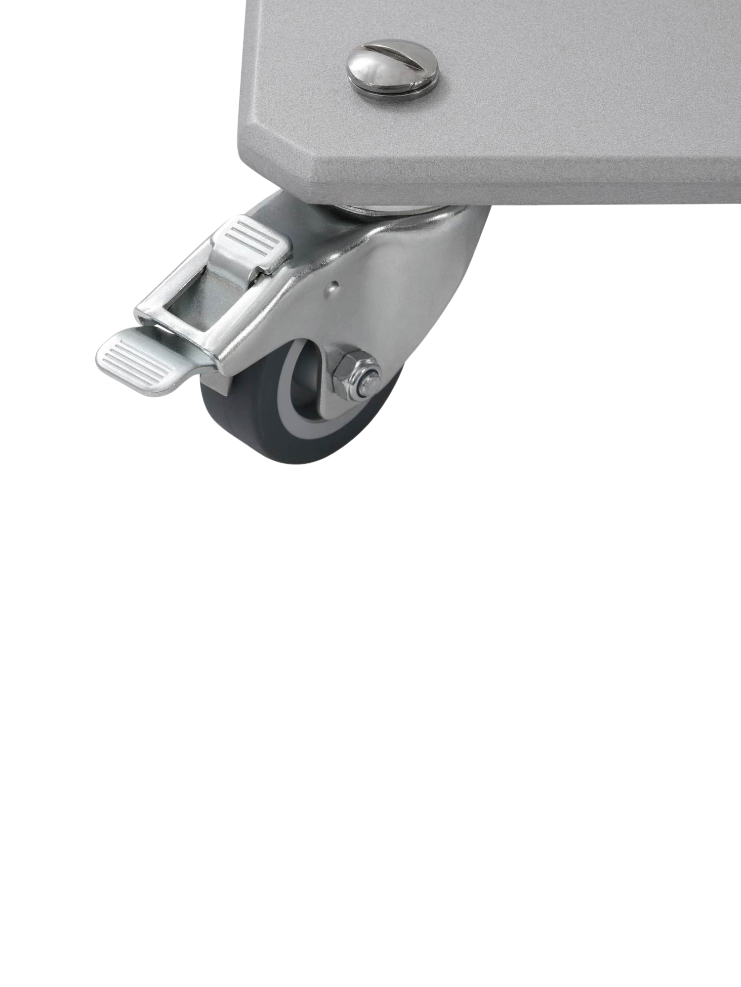 Das Räderset mit gedoppelten Rollen sorgt für sicheren Stand auf Böden mit grossen Spaltmassen.
