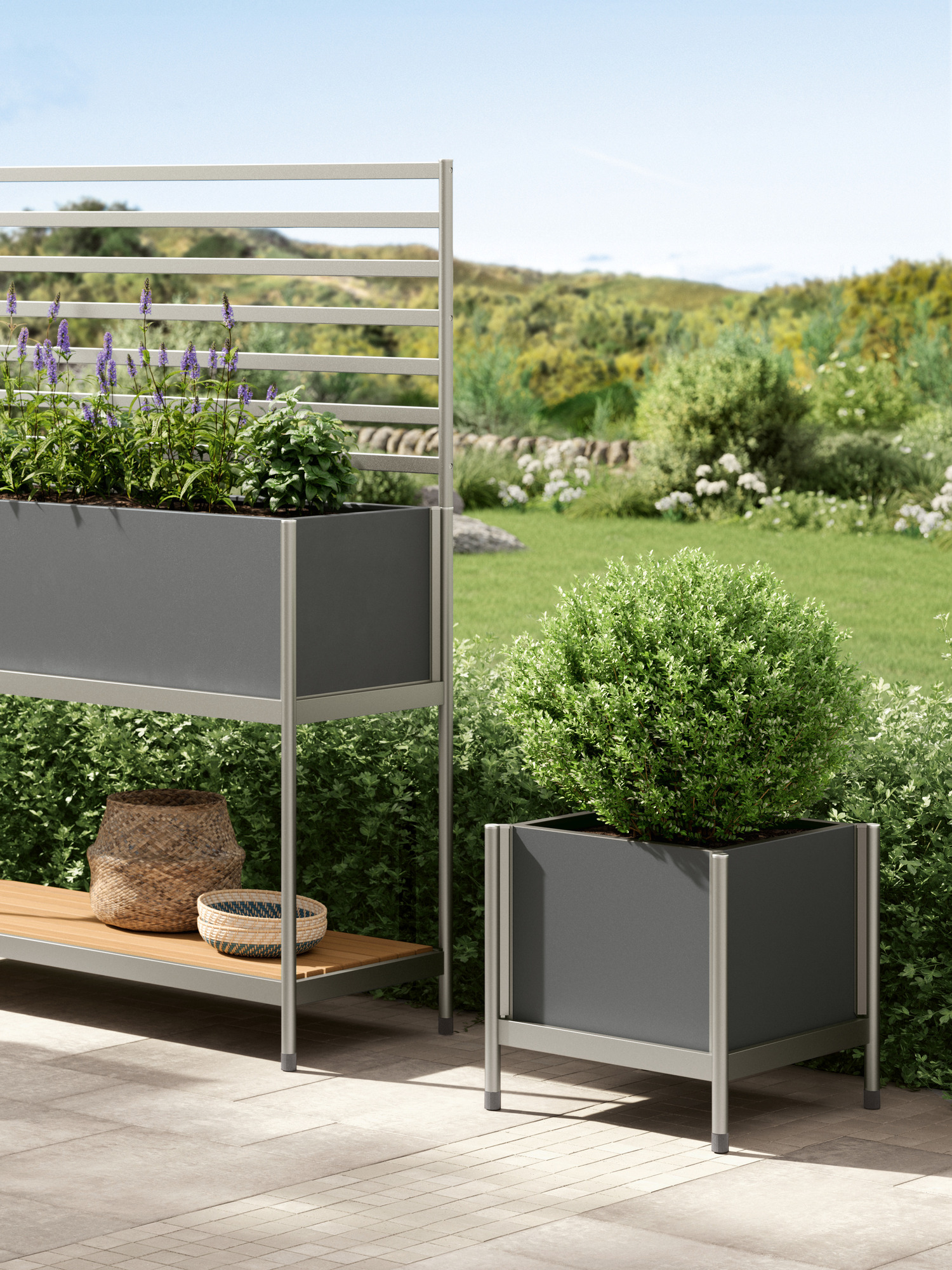 Zur modularen Rana Kollektion gehören hochwertige Regale in zwei Grössen, ein Hochbeet und ein Pflanzkübel im korrespondierenden Design. In vollendeter Formensprache, mit aufeinander abgestimmten Massen und durchdachter Funktionalität ergänzen sich die einzelnen Elemente auch als Ensemble, schaffen nützlichen Stauraum und bilden dekorative Arrangements.