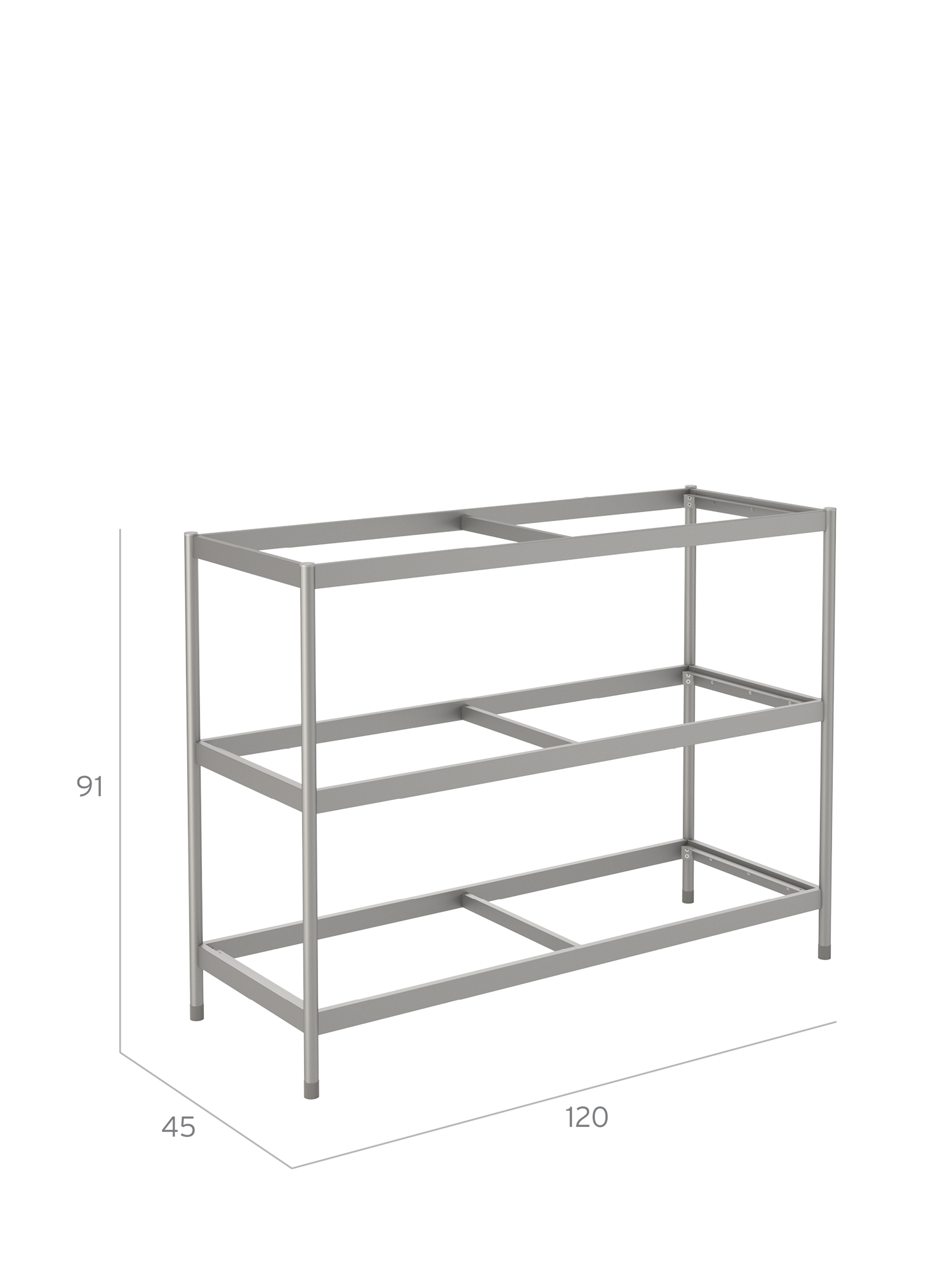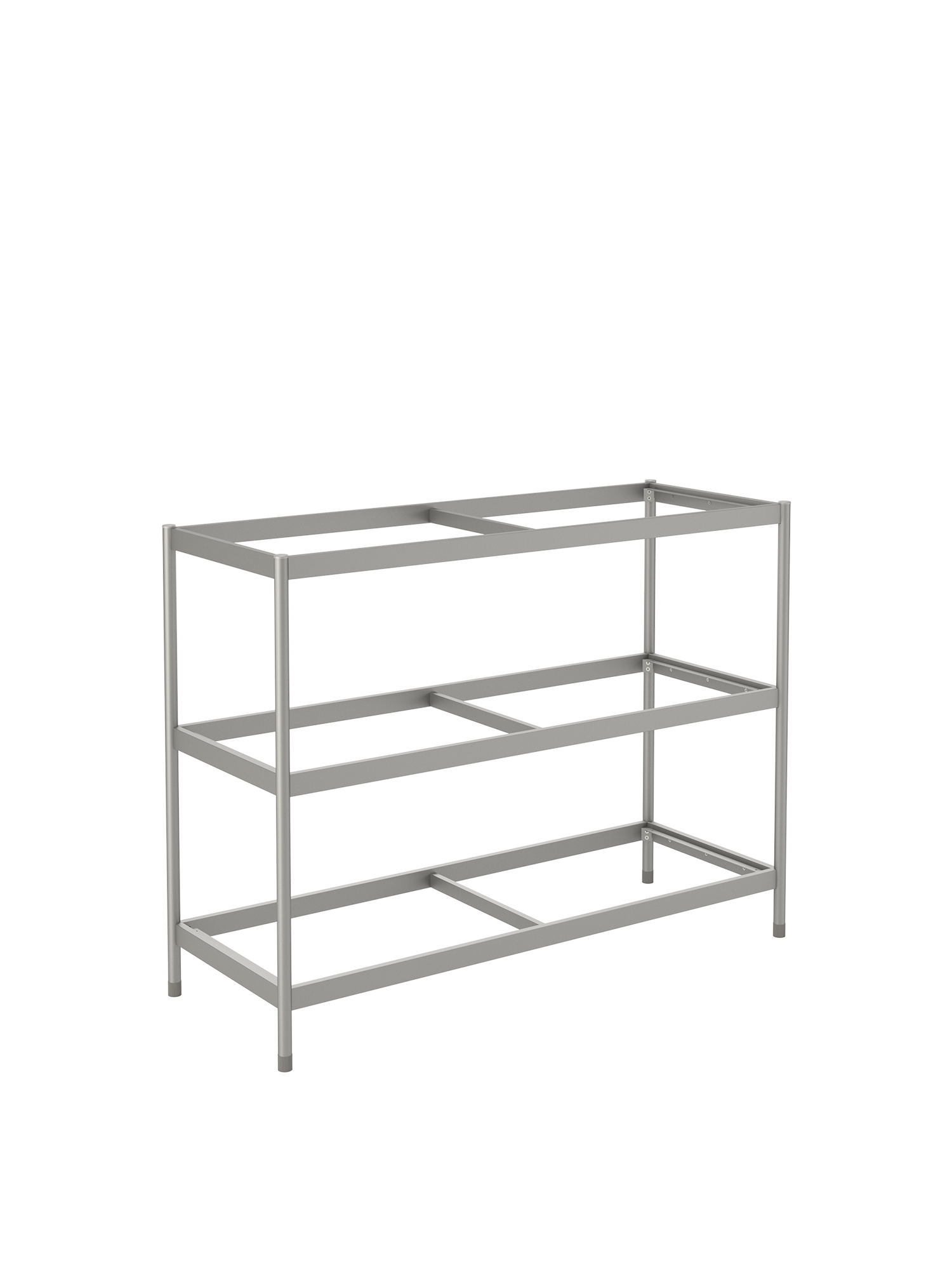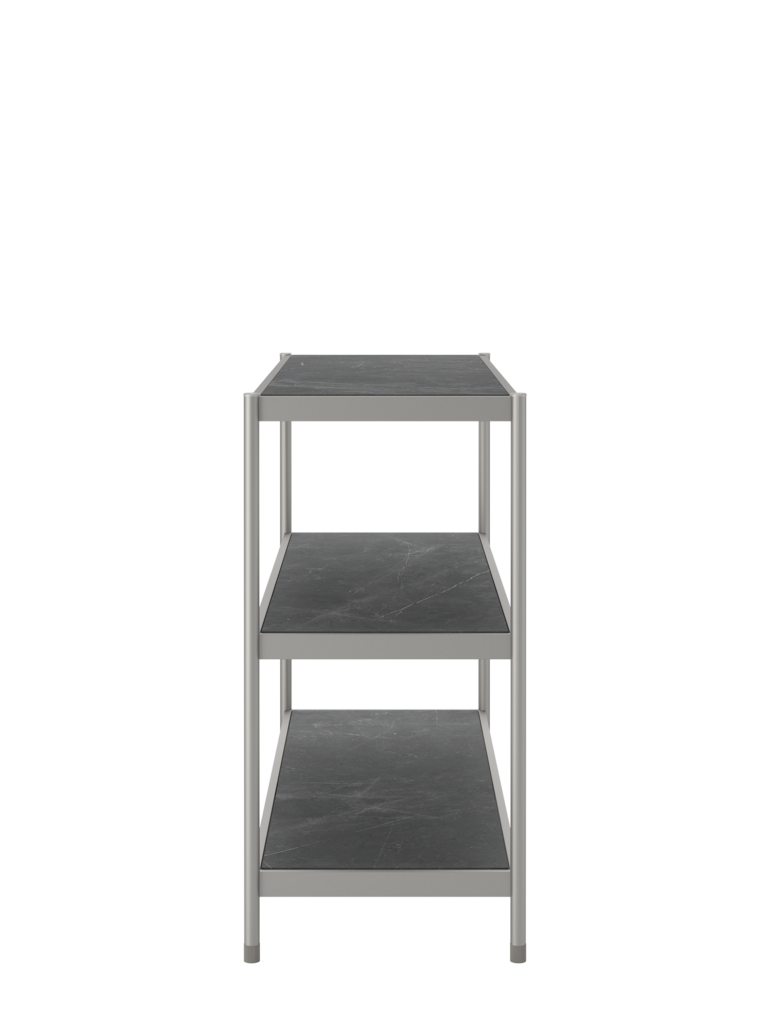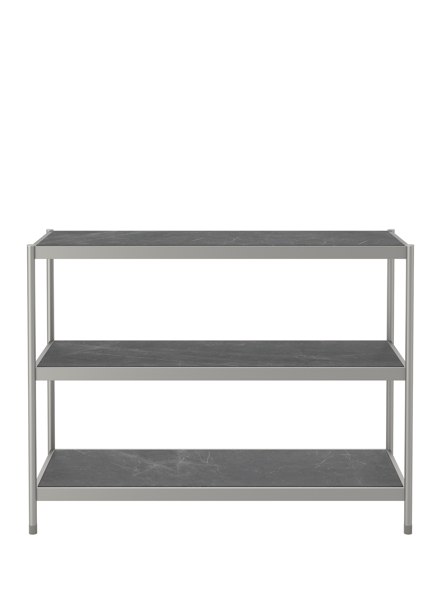 Das wetterfeste Gartenregal aus eloxiertem Aluminium fügt sich mit seinem reduzierten Design und einem sanft changierenden Farbton harmonisch in jede Umgebung. Als geräumiger Solitär oder flexibles Modul in einer Reihe mit weiteren Elementen der Rana Kollektion bietet es praktische Ablagefläche für Geschirr, Accessoires oder Zutaten für die Outdoor-Küche. Und fungiert im Zusammenspiel mit dem Hochbeet der Kollektion auch als eleganter Pflanztisch. Die separat zu bestellenden Einlegeböden für seine drei Ebenen bestehen wahlweise aus Teakleisten oder Keramikplatten. Höhenversteller an den Beinen gleichen Unebenheiten im Boden aus.