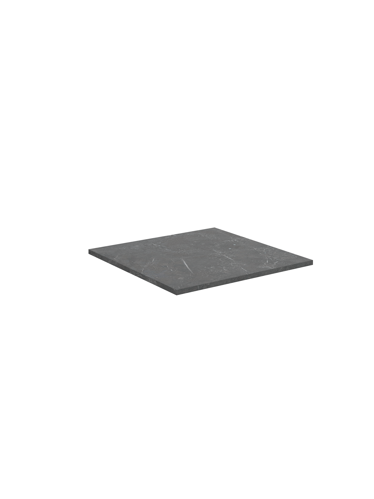 Der Einlegeboden aus fein gemaserter Keramik harmoniert perfekt mit dem eloxierten Aluminiumrahmen des passenden Rana Regals.