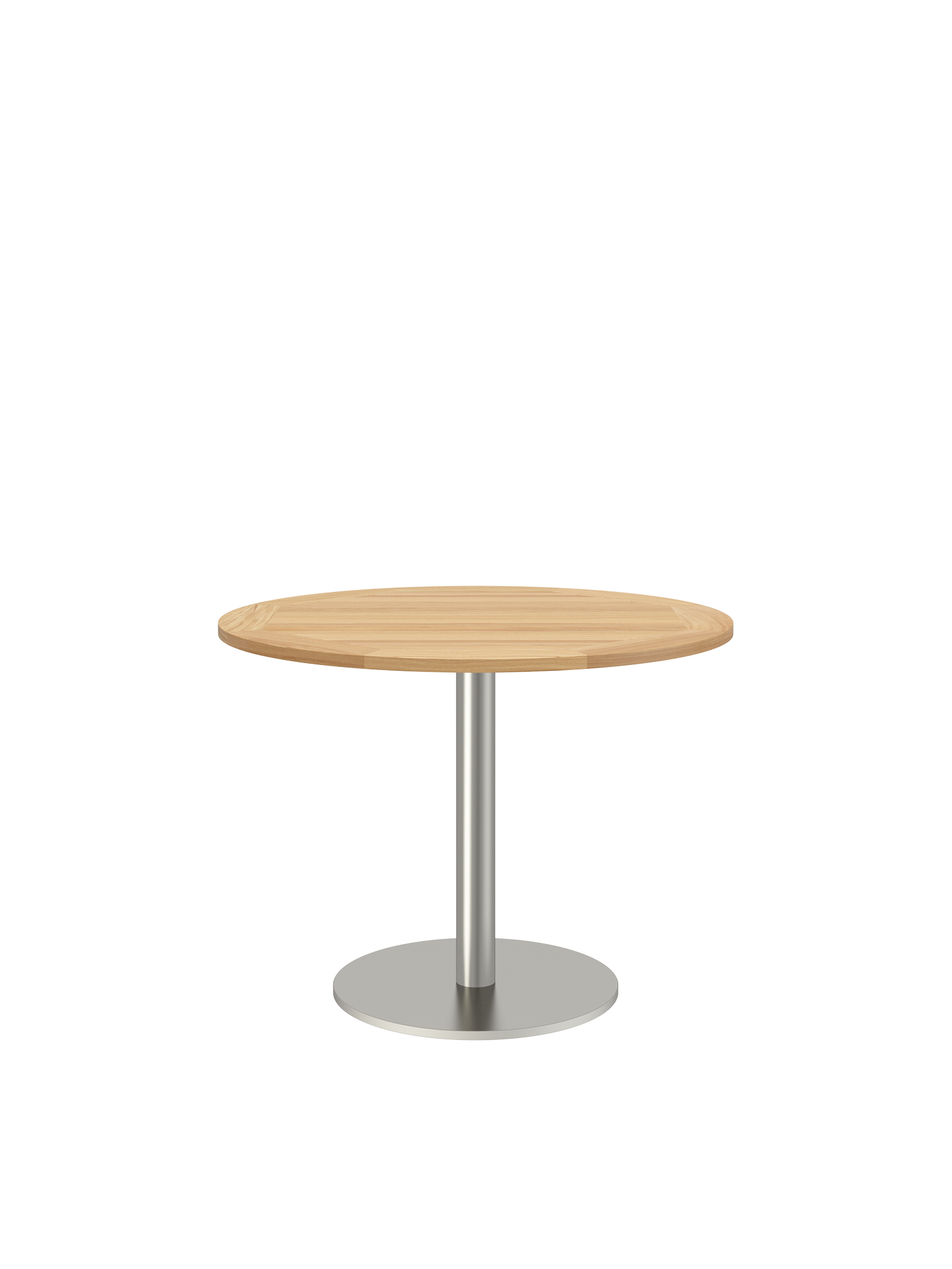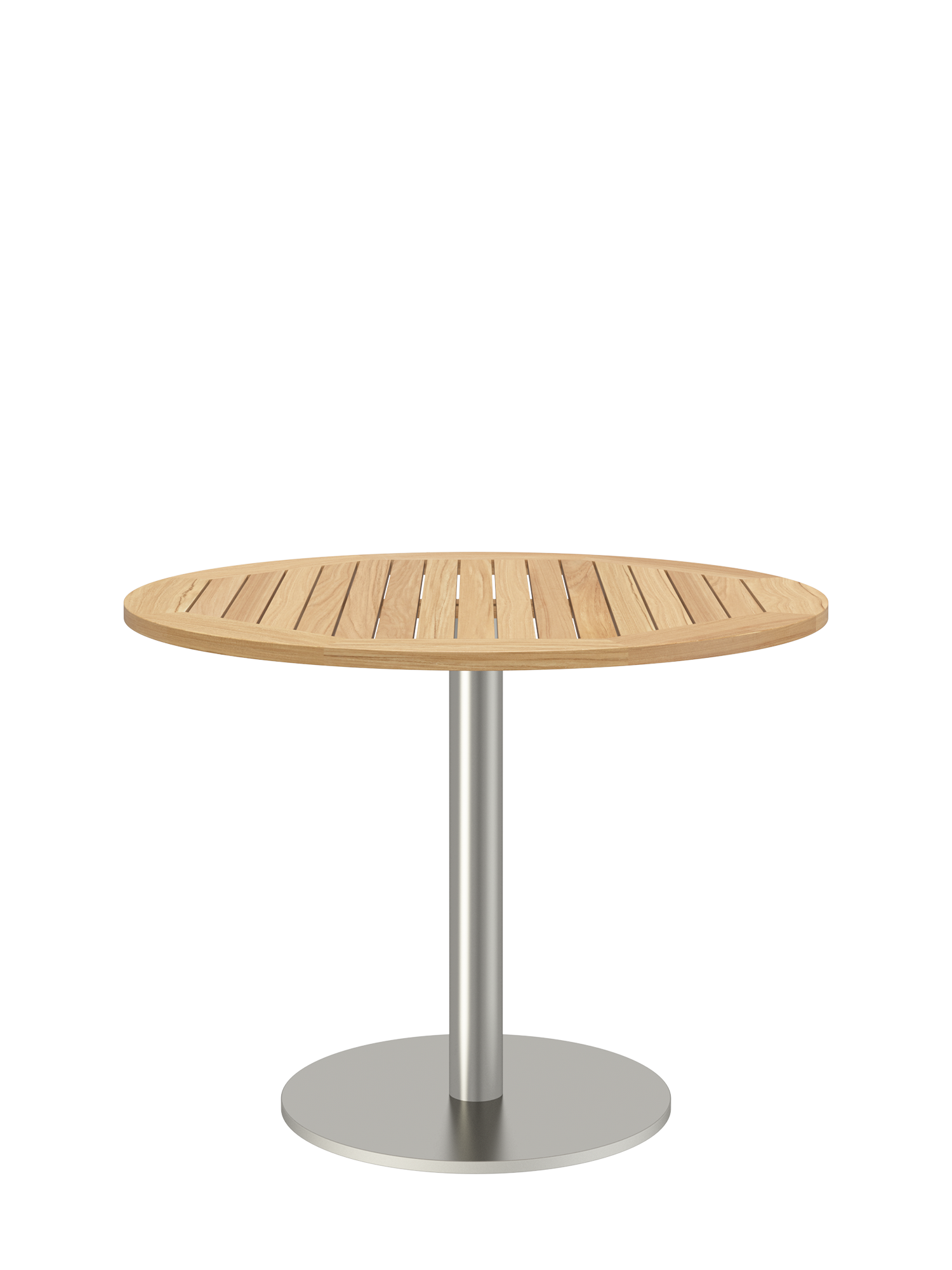 Ronda Mittelfusstisch Edelstahl rund 100 Tischplatte Teak