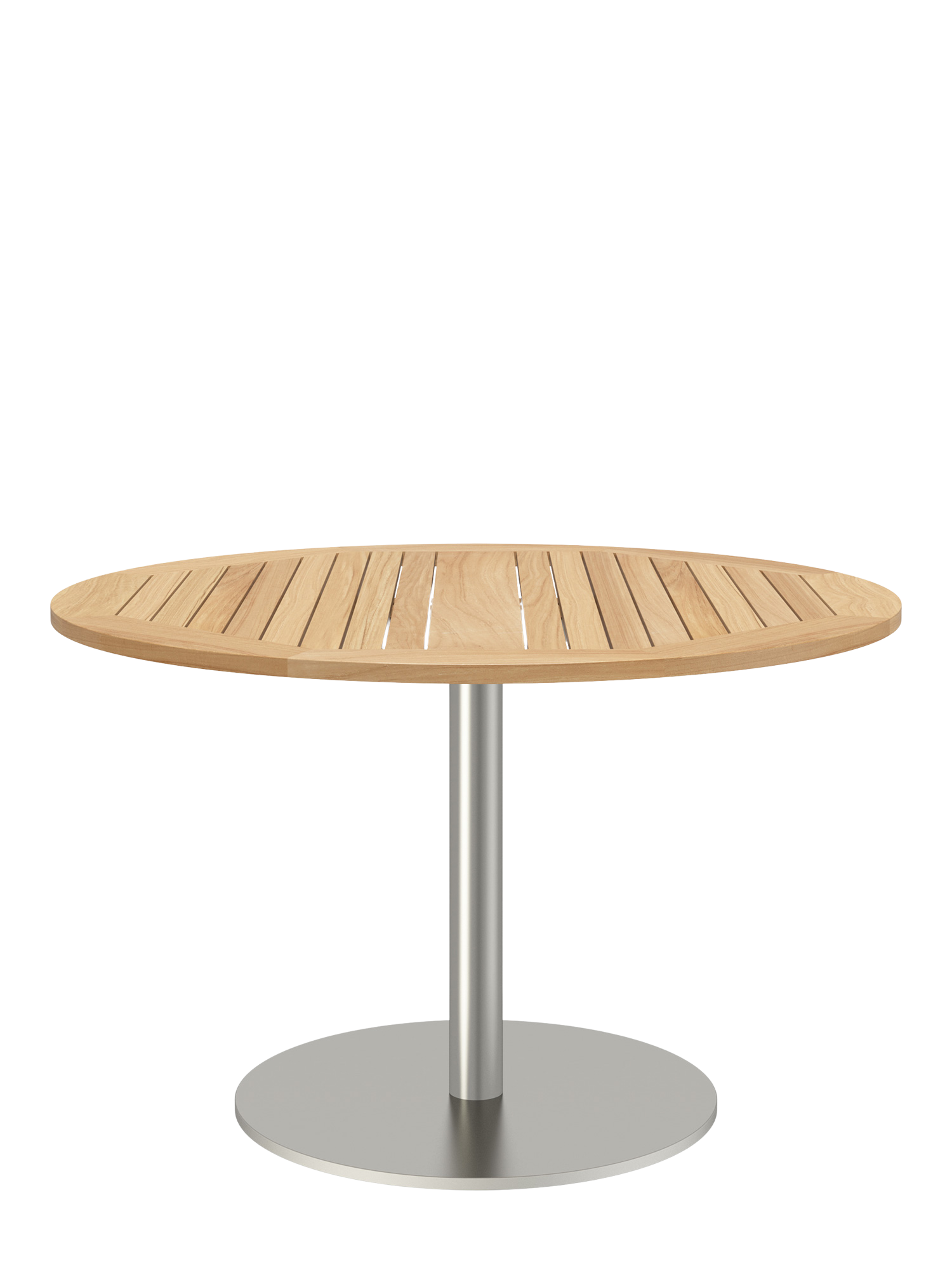 Ronda Mittelfusstisch Edelstahl rund 120 Tischplatte Teak