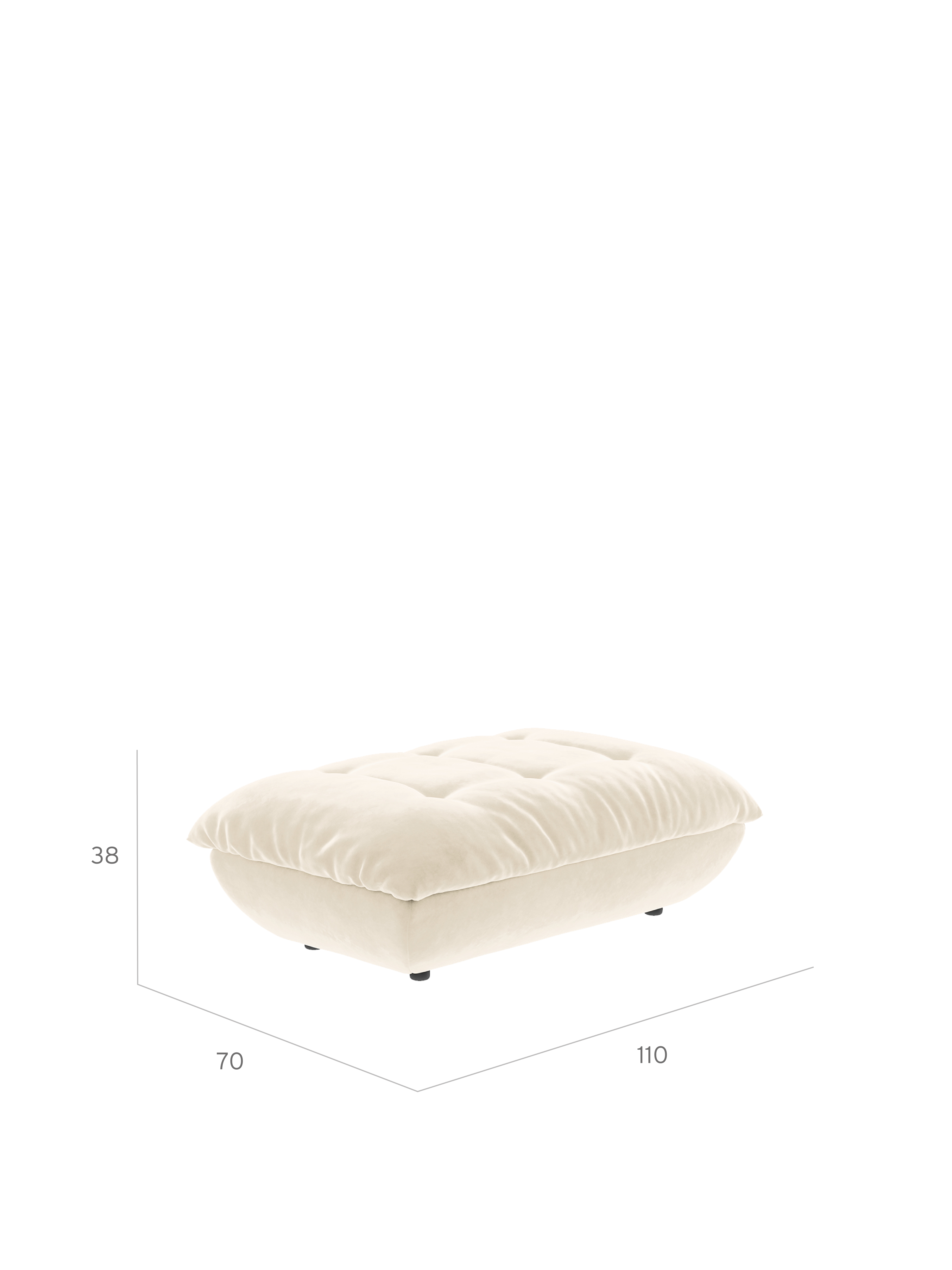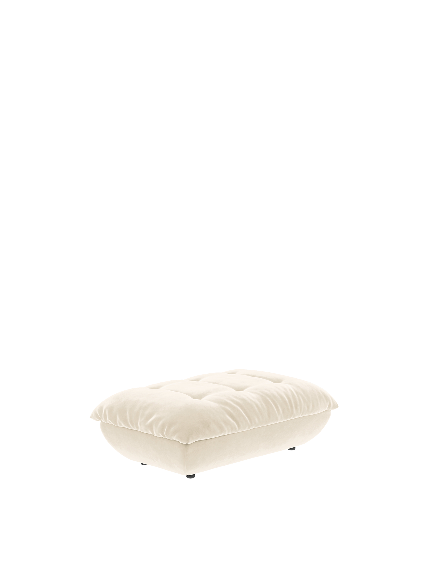 Der Hocker mit einem Holzkorpus aus massiver Esche empfiehlt sich als Solitär oder verlängert Sofa, Sessel und Longchair der modularen Sandvig Kollektion.