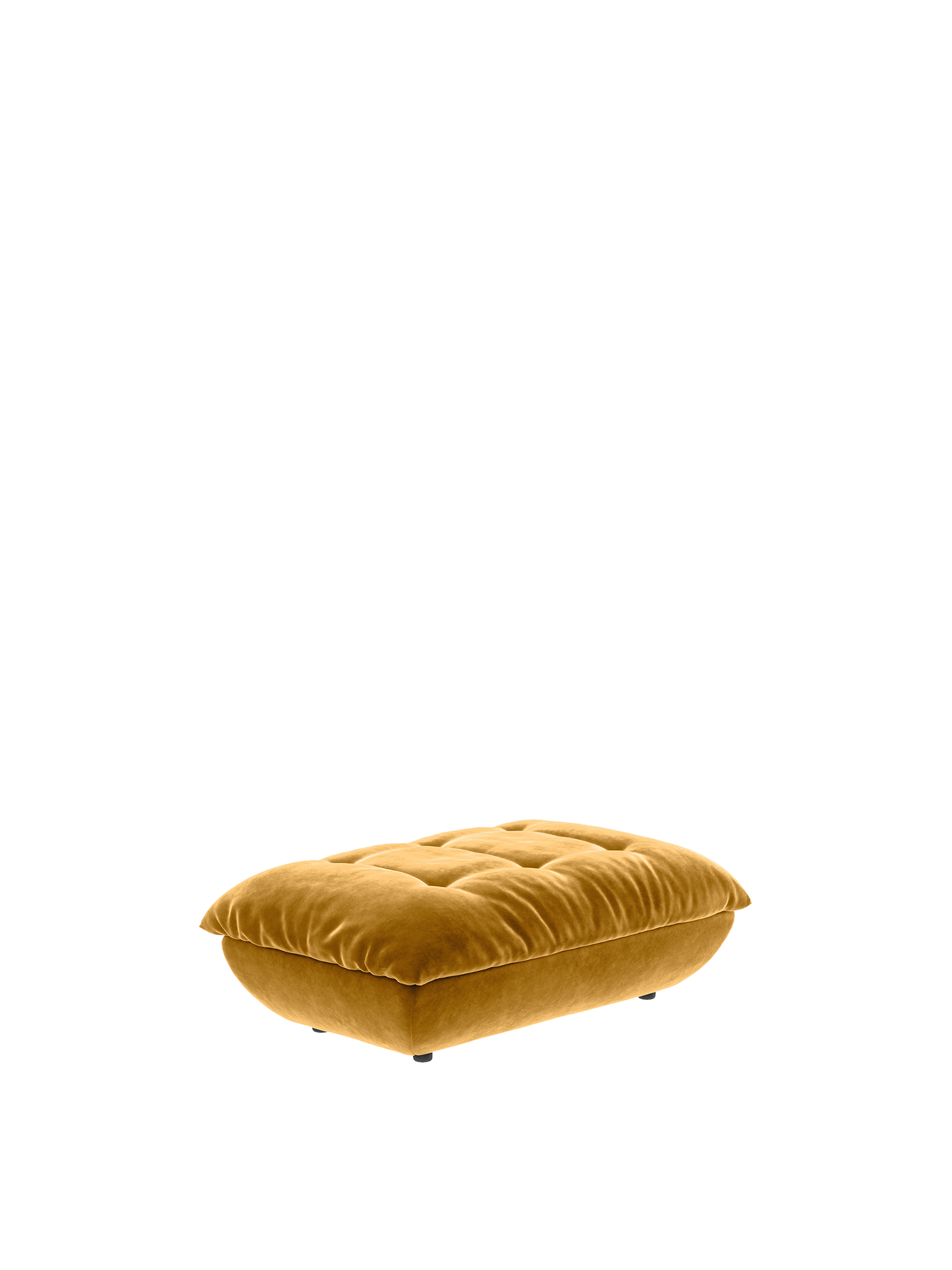 Der Hocker mit einem Holzkorpus aus massiver Esche empfiehlt sich als Solitär oder verlängert Sofa, Sessel und Longchair der modularen Sandvig Kollektion.
