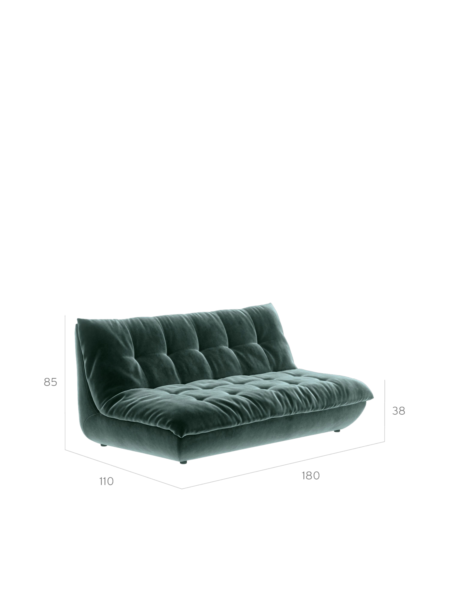 - Eschenholzkorpus mit voluminösen Polstern und einem Bezug aus Veloursstoff