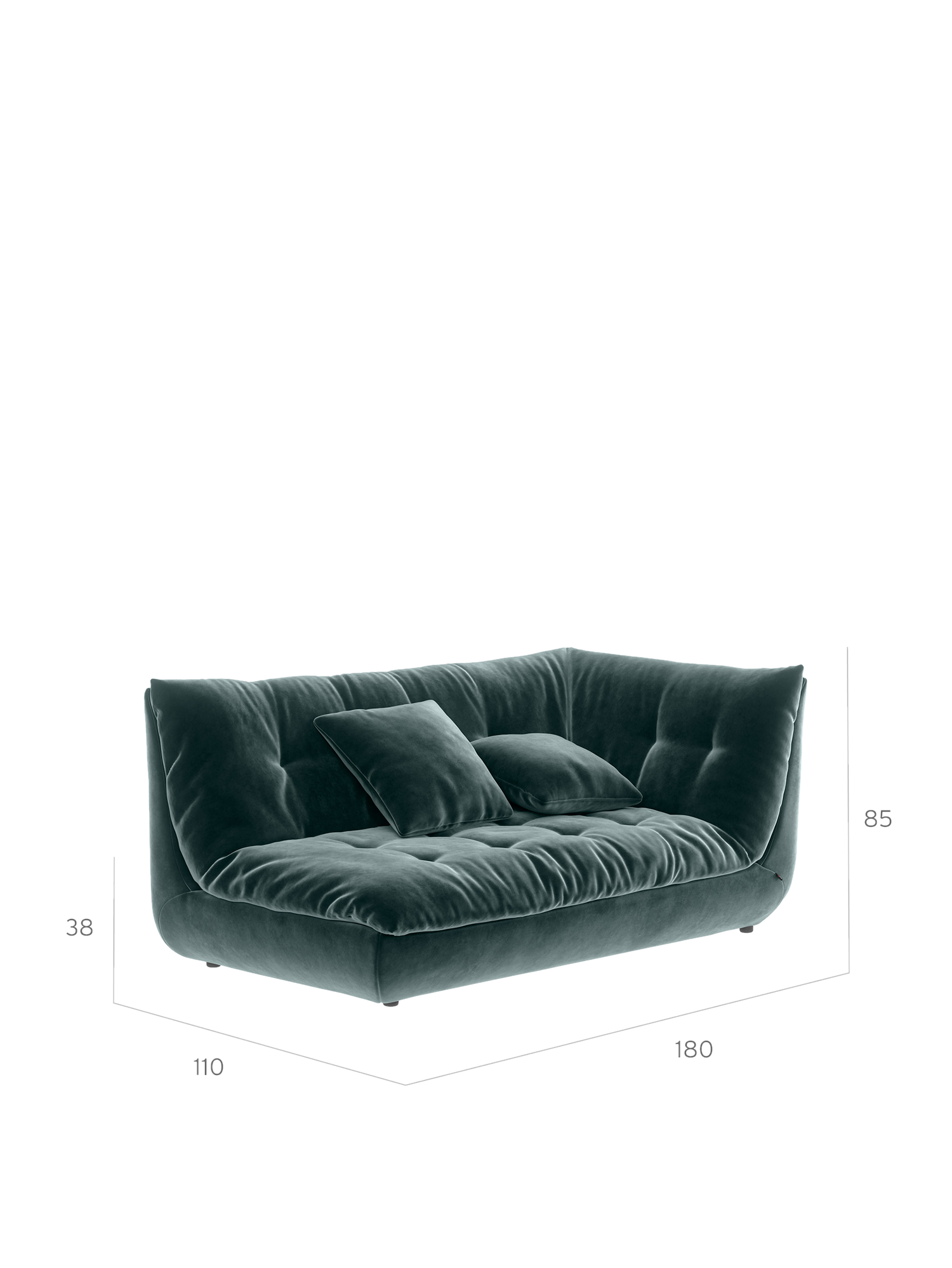 - Eschenholzkorpus mit voluminösen Polstern und einem Bezug aus Veloursstoff