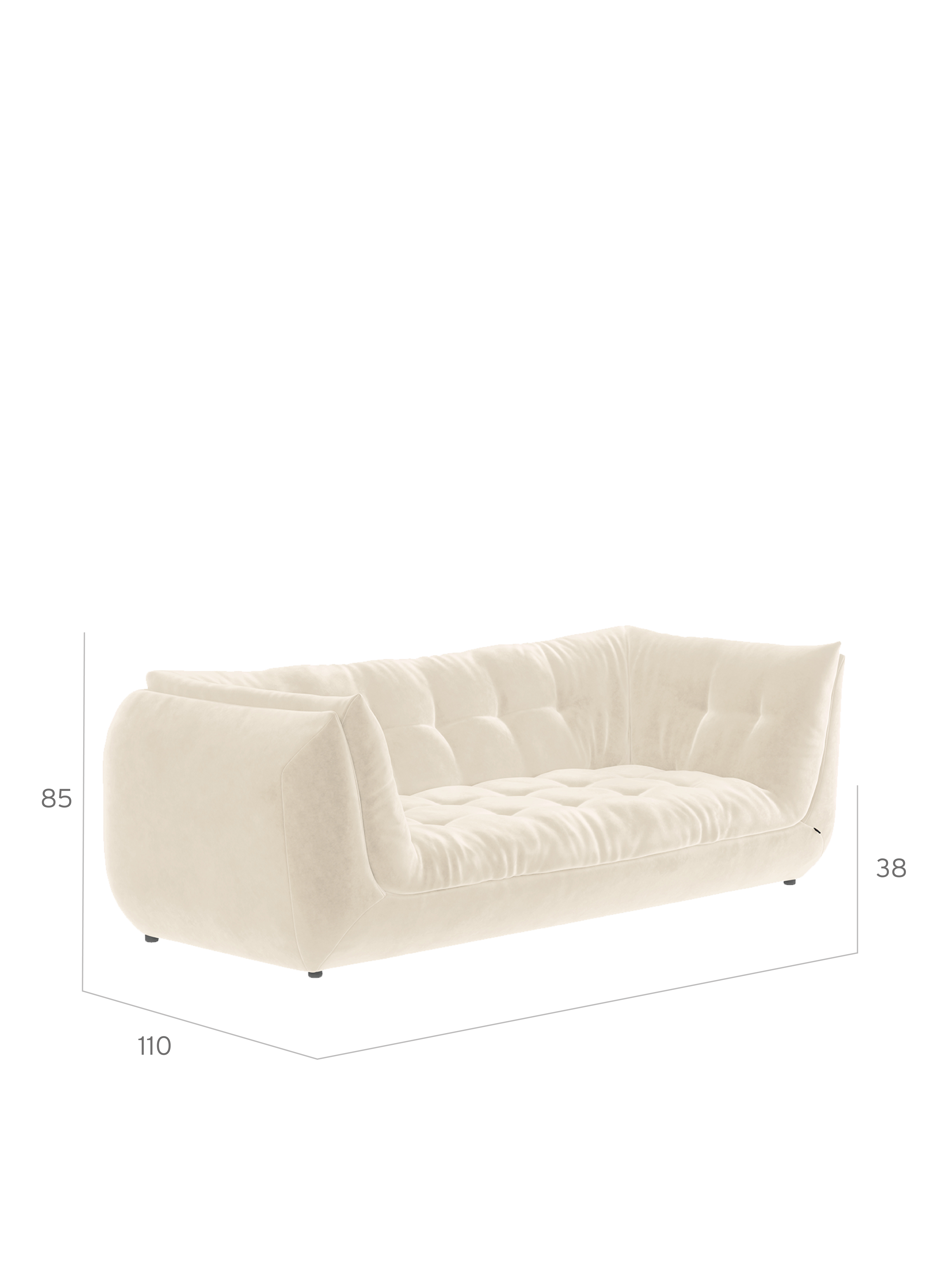 - Eschenholzkorpus mit voluminösen Polstern und einem Bezug aus Veloursstoff