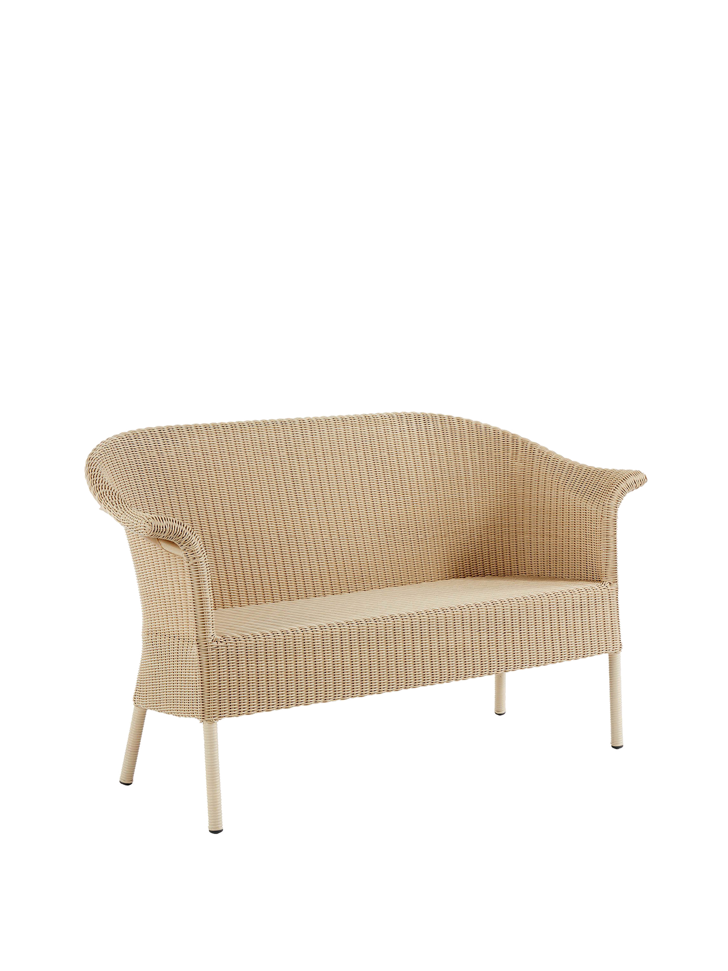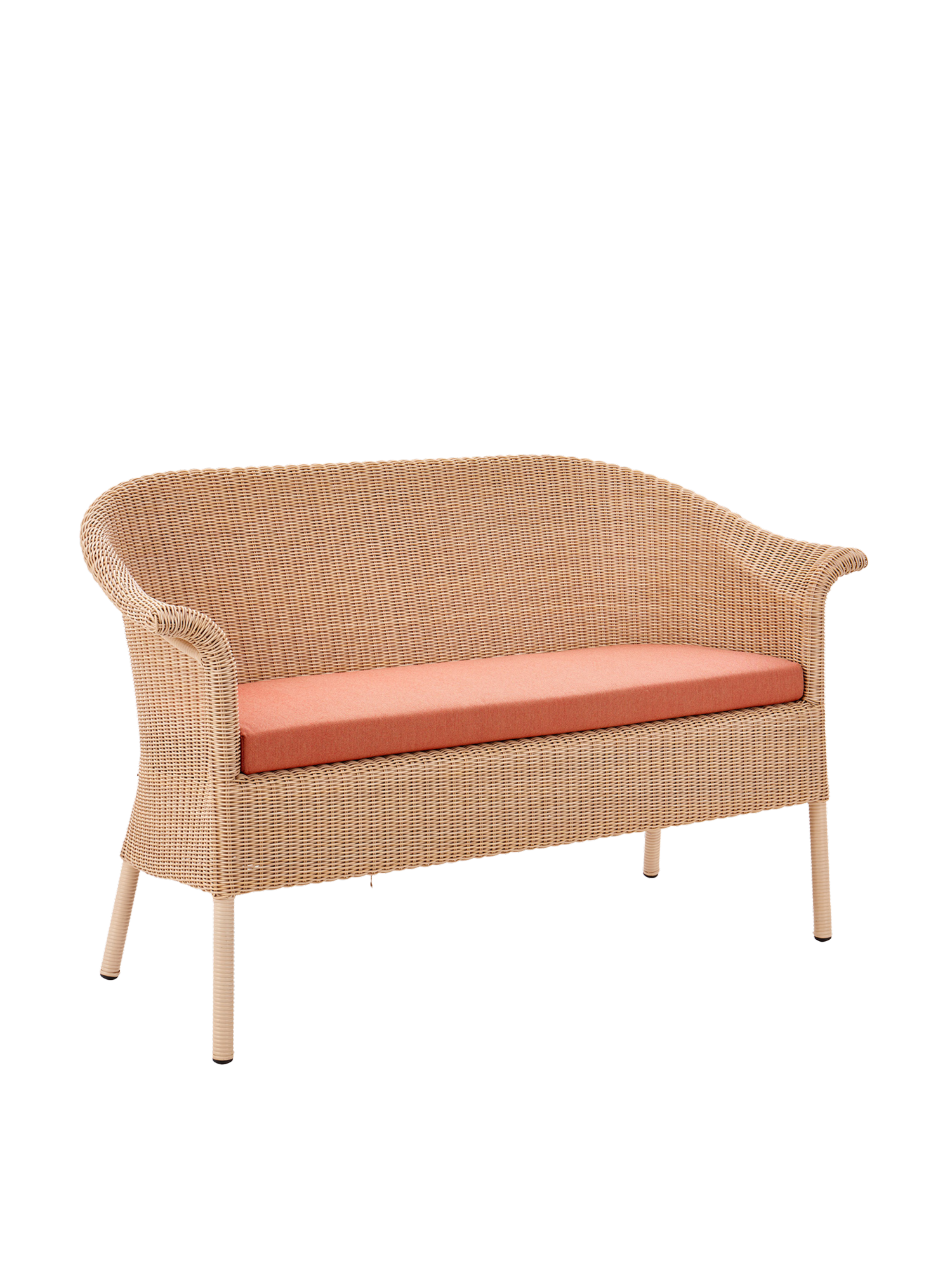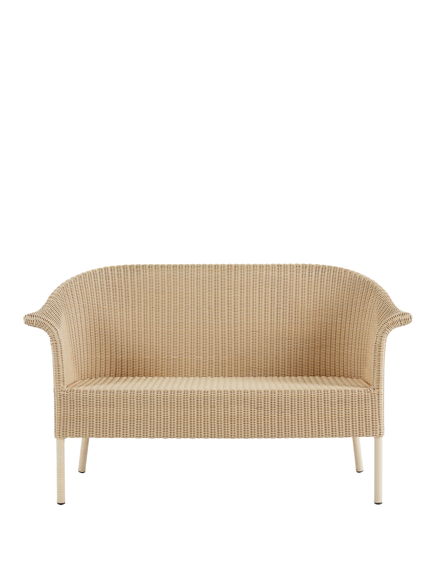 Der Zweisitzer aus einer hochwertigen, wetterfesten Kunststofffaser erinnert in seiner Form an die 20er Jahre, an Art déco und die Entstehungszeit seiner klassischen Vorbilder aus Loomgeflecht. Seine Sitzfläche ist besonders grosszügig konzipiert, die geschwungene Rückenlehne lädt zum behaglichen Zurücklehnen auch zu zweit ein.