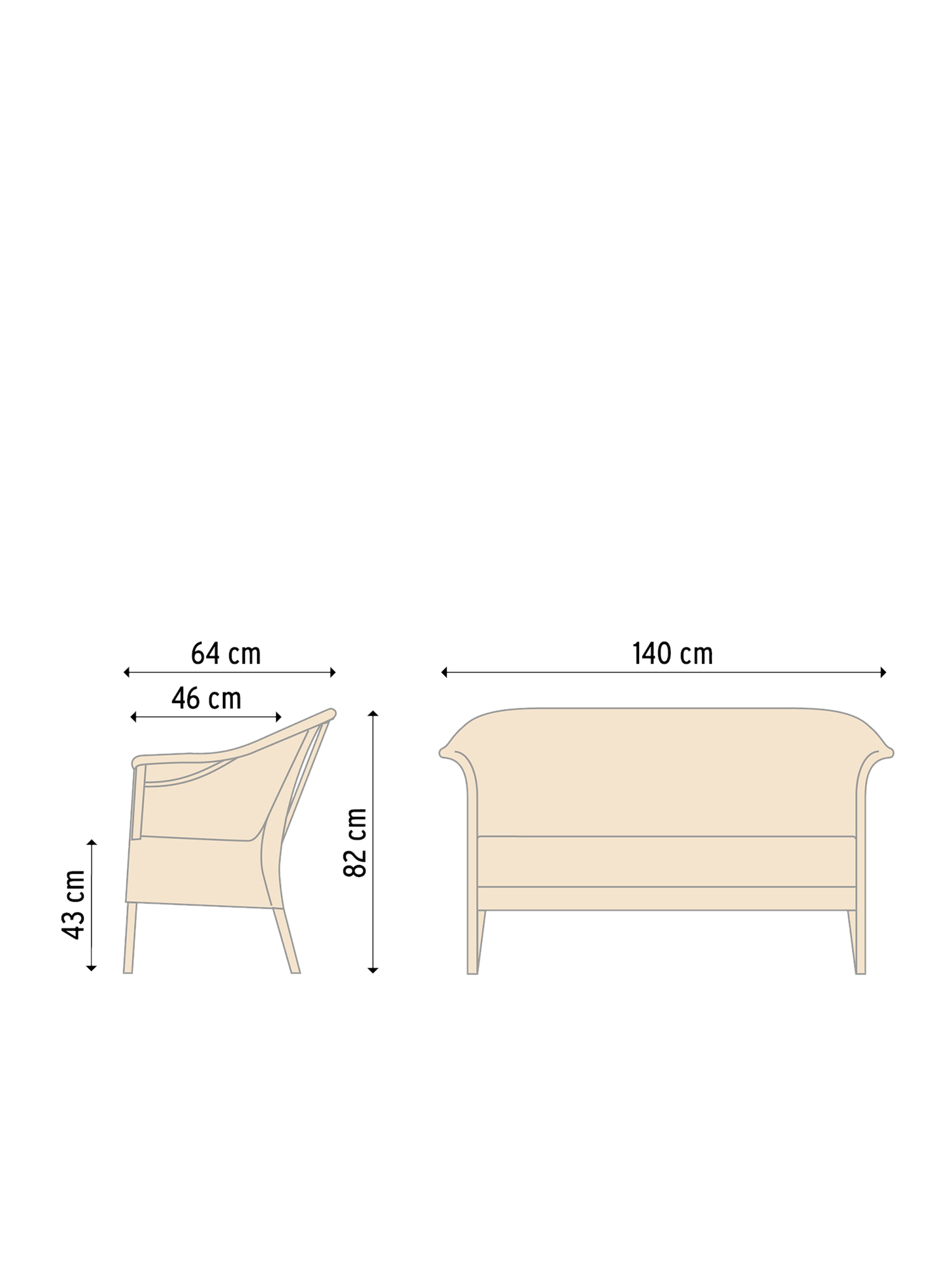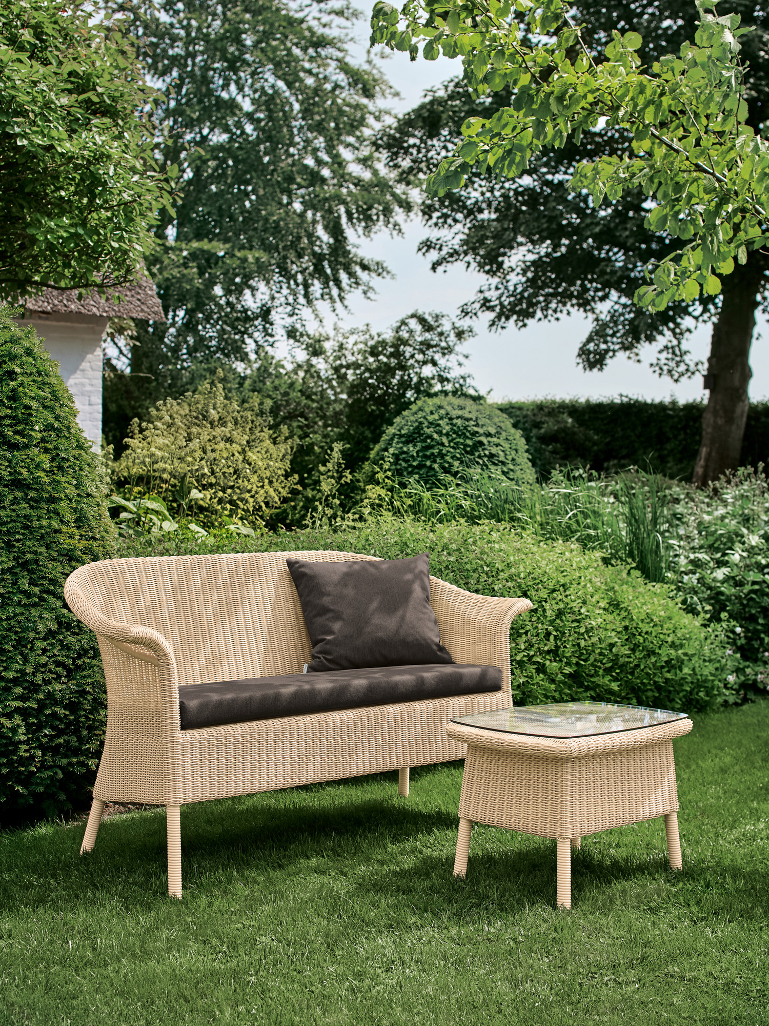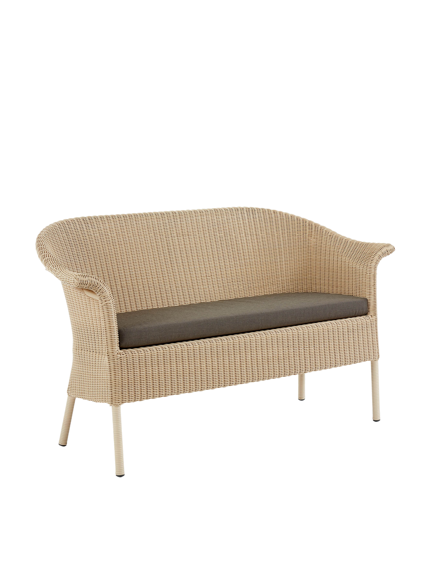 Der Zweisitzer aus einer hochwertigen, wetterfesten Kunststofffaser erinnert in seiner Form an die 20er Jahre, an Art déco und die Entstehungszeit seiner klassischen Vorbilder aus Loomgeflecht. Seine Sitzfläche ist besonders grosszügig konzipiert, die geschwungene Rückenlehne lädt zum behaglichen Zurücklehnen auch zu zweit ein.