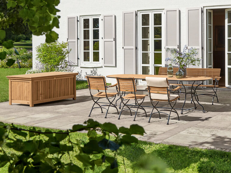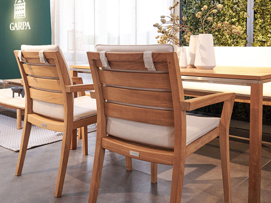 Teak ist ein Geschenk der Natur, seine natürliche Patina ein Gütesiegel: Wie kein anderes Holz widersteht es Regen, Sonne, Temperaturschwankungen und Frost ohne Lack oder chemische Oberflächenbehandlung. Garpa verwendet ausschliesslich Material aus nachhaltig bewirtschafteten Plantagen, die durch ihre kontinuierlich nachwachsende Holzmasse viel CO2 binden. Als eines der ersten europäischen Unternehmen, die sich zur Produktketten-Zertifizierung (COC) nach den Richtlinien des Forest Stewardship Council® anmeldeten (Lizenz-Nr. C013733), erhielt Garpa bereits 1998 den COC-Zertifizierungscode NC-COC-016417 (ab Juni 2025 PBN-COC-016417), der seitdem alle 5 Jahre nach erfolgreichem Reassessment verlängert wird.