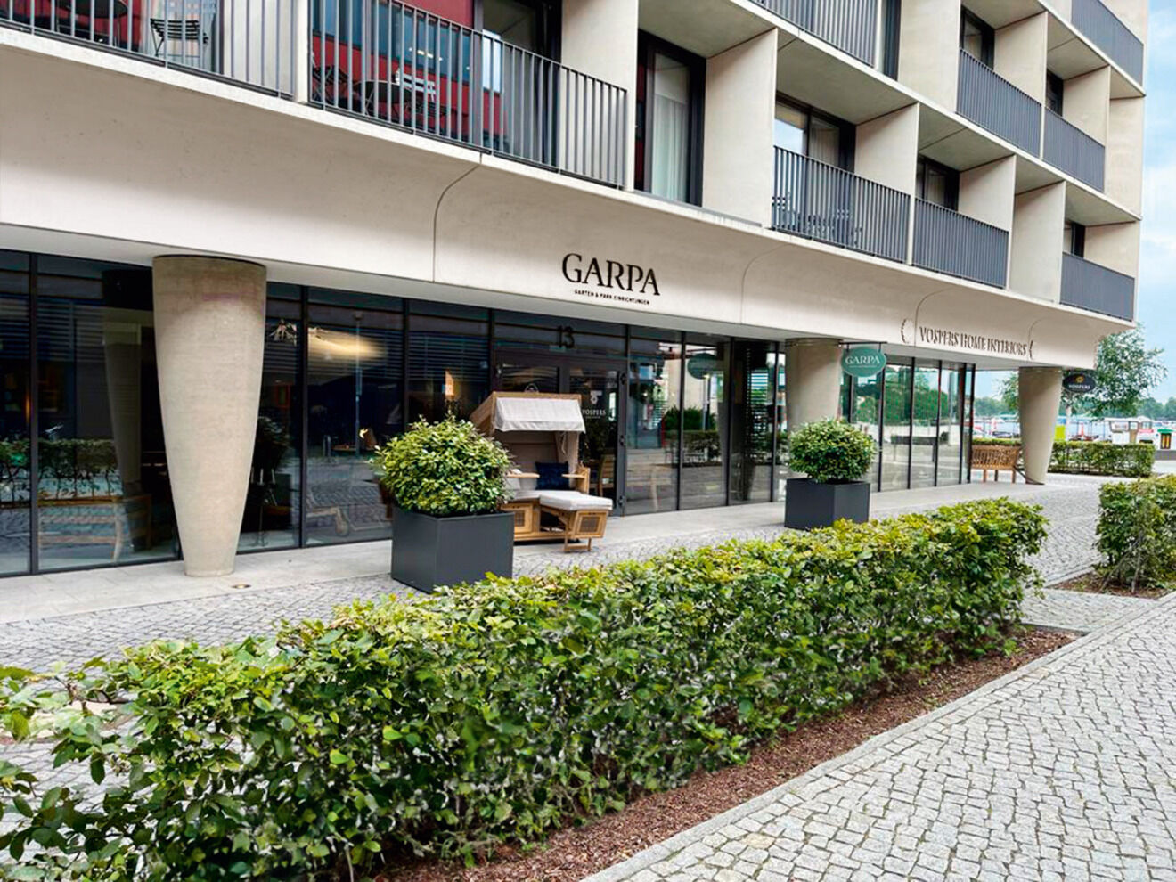Wir freuen uns auf Ihren Besuch der exklusiven Gartenmöbel Ausstellung für den Raum Potsdam und Berlin. Im Ensemble des Kulturquartiers Schiffbauergasse, direkt am Tiefen See gelegen, präsentieren wir im wohnlichen Ambiente unseres Showrooms einen umfänglichen Auszug des Garpa Sortiments.