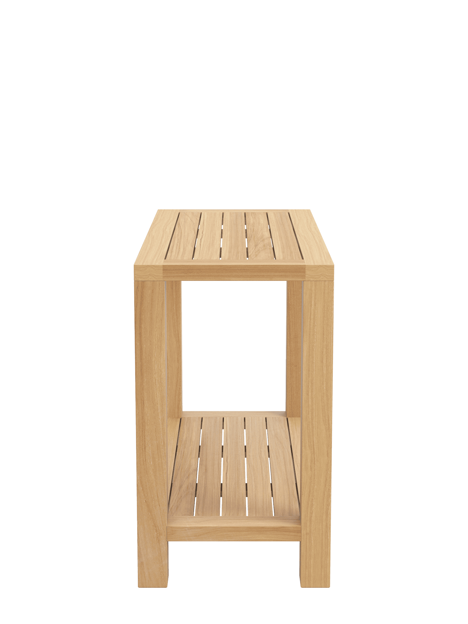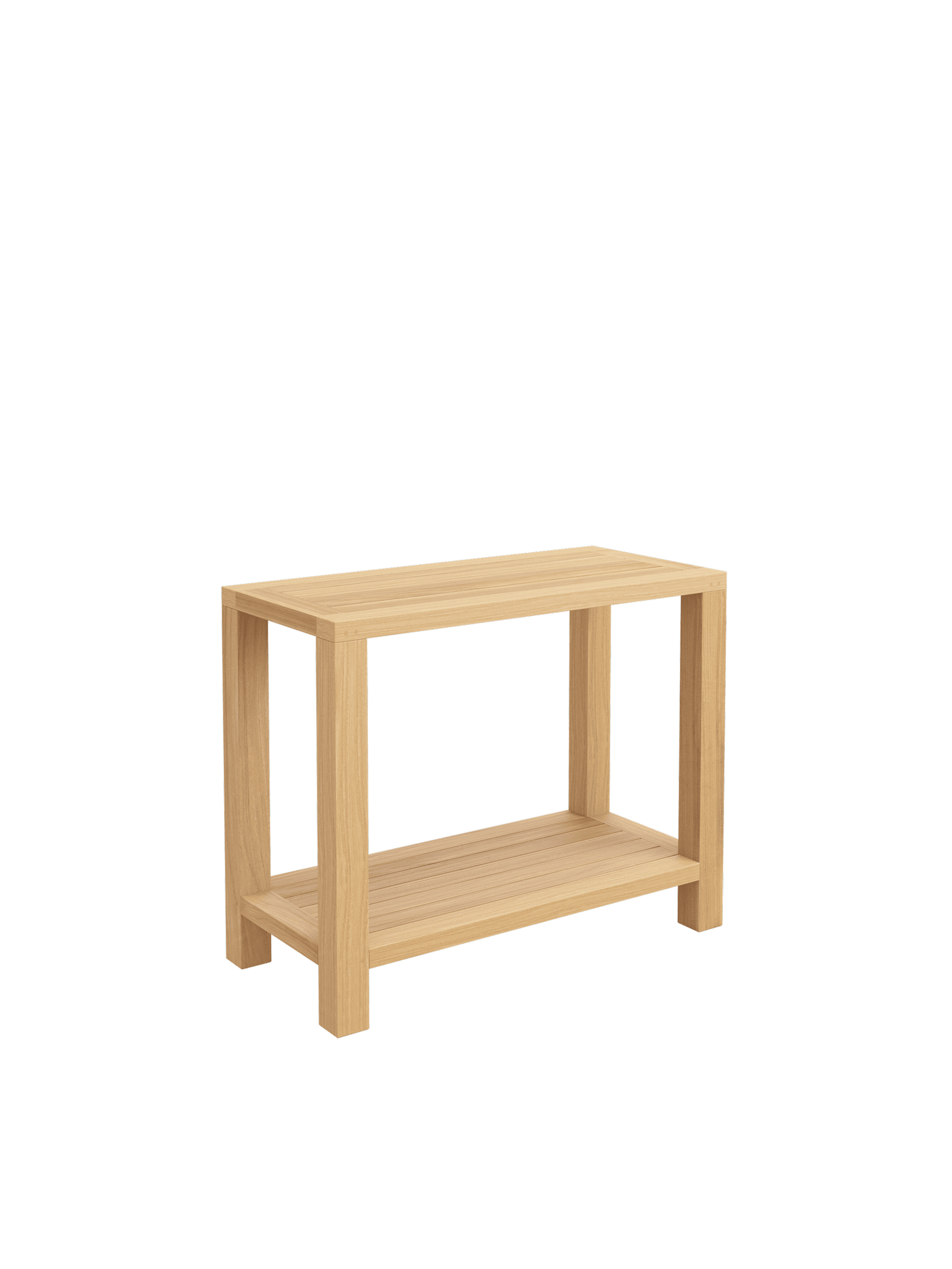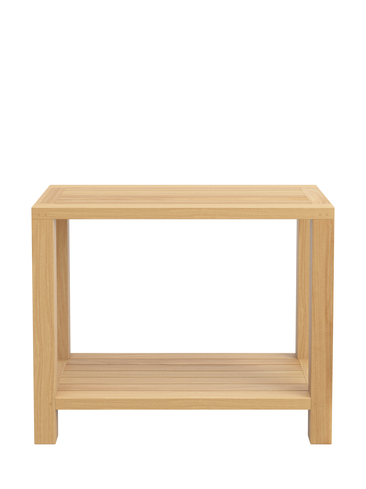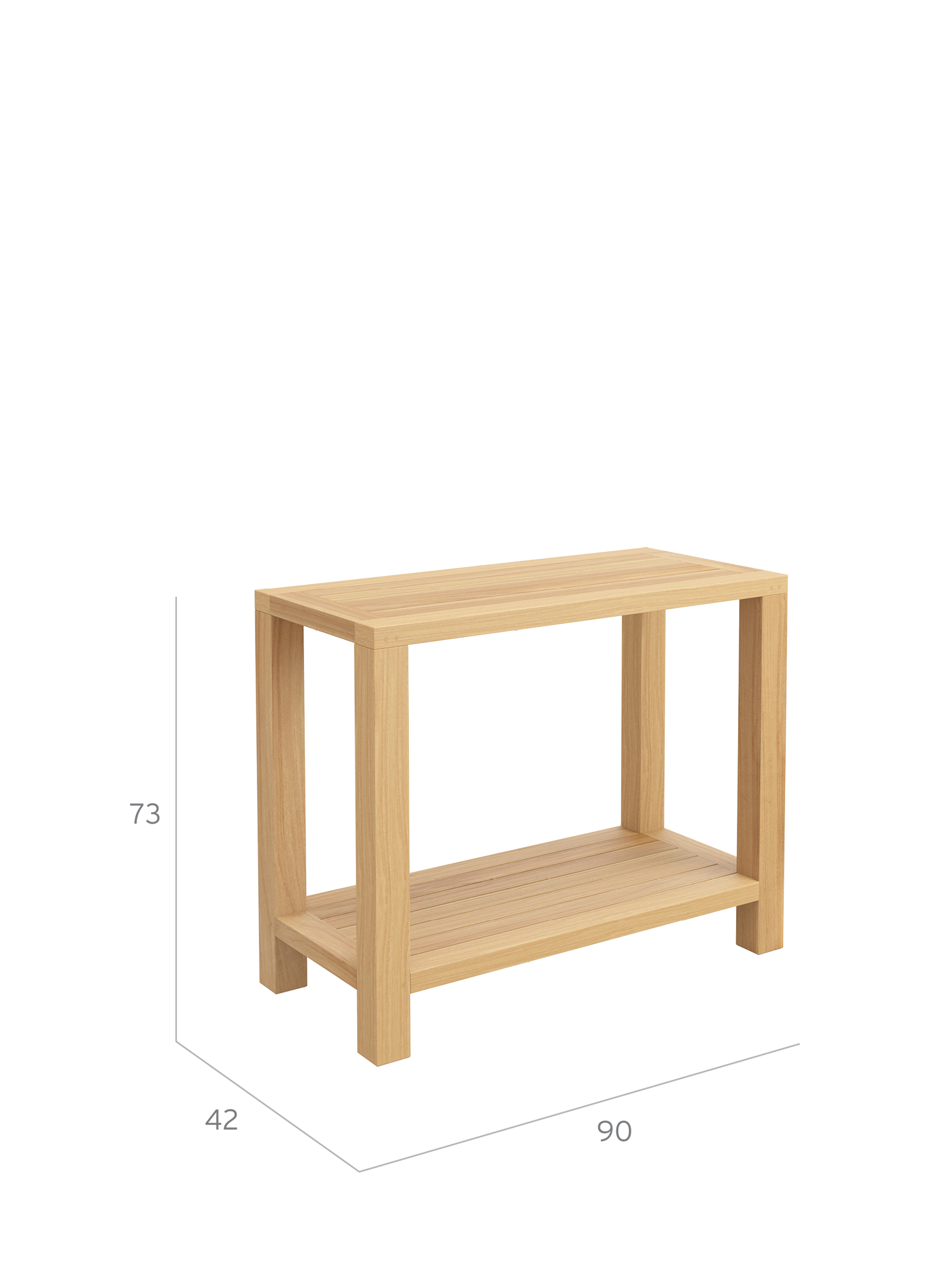 Die moderne Optik der grosszügigen Square Tische passt gut zu leichteren Teakserien. Der schlichte Konsoltisch der Serie bietet auf zwei Ebenen Platz für Geschirr oder Accessoires oder verlängert, schnell dazugestellt, elegant die Tafel.