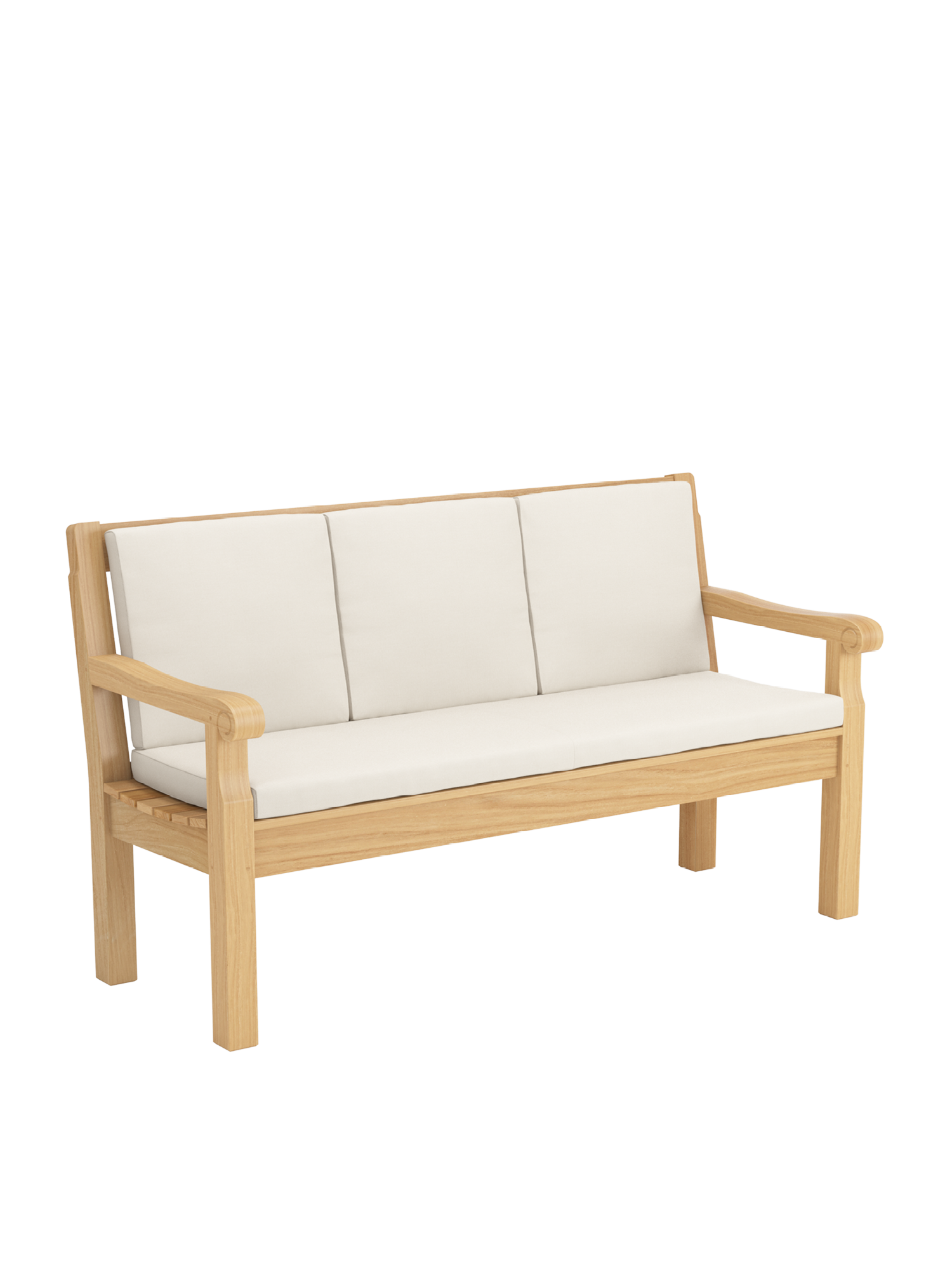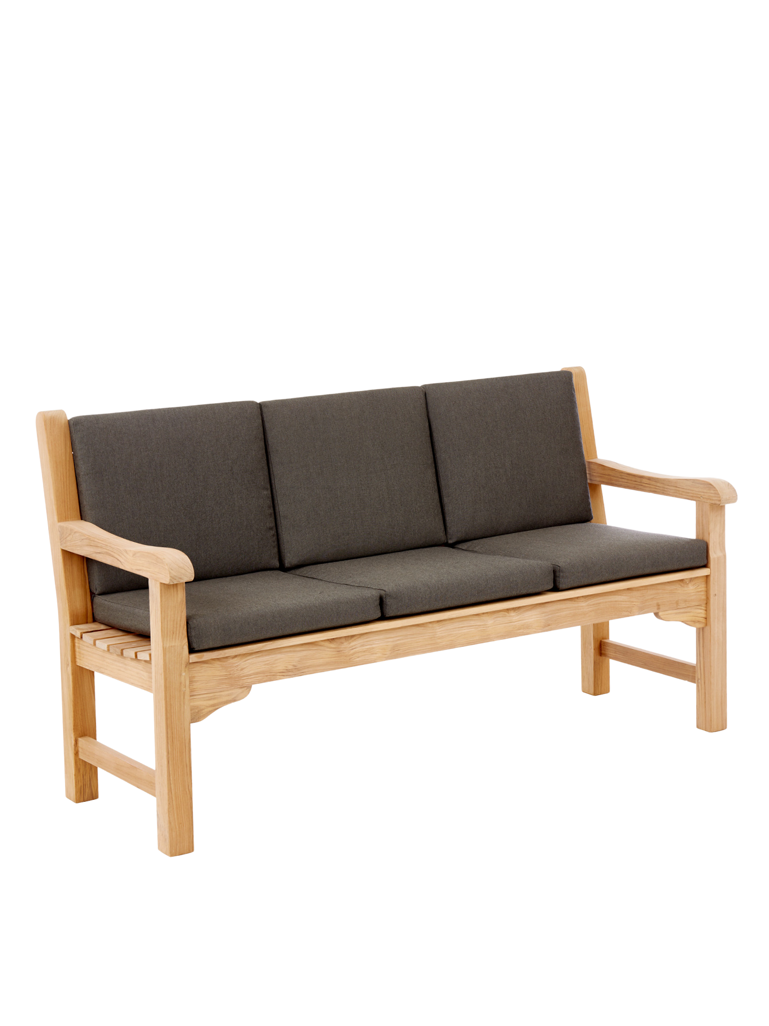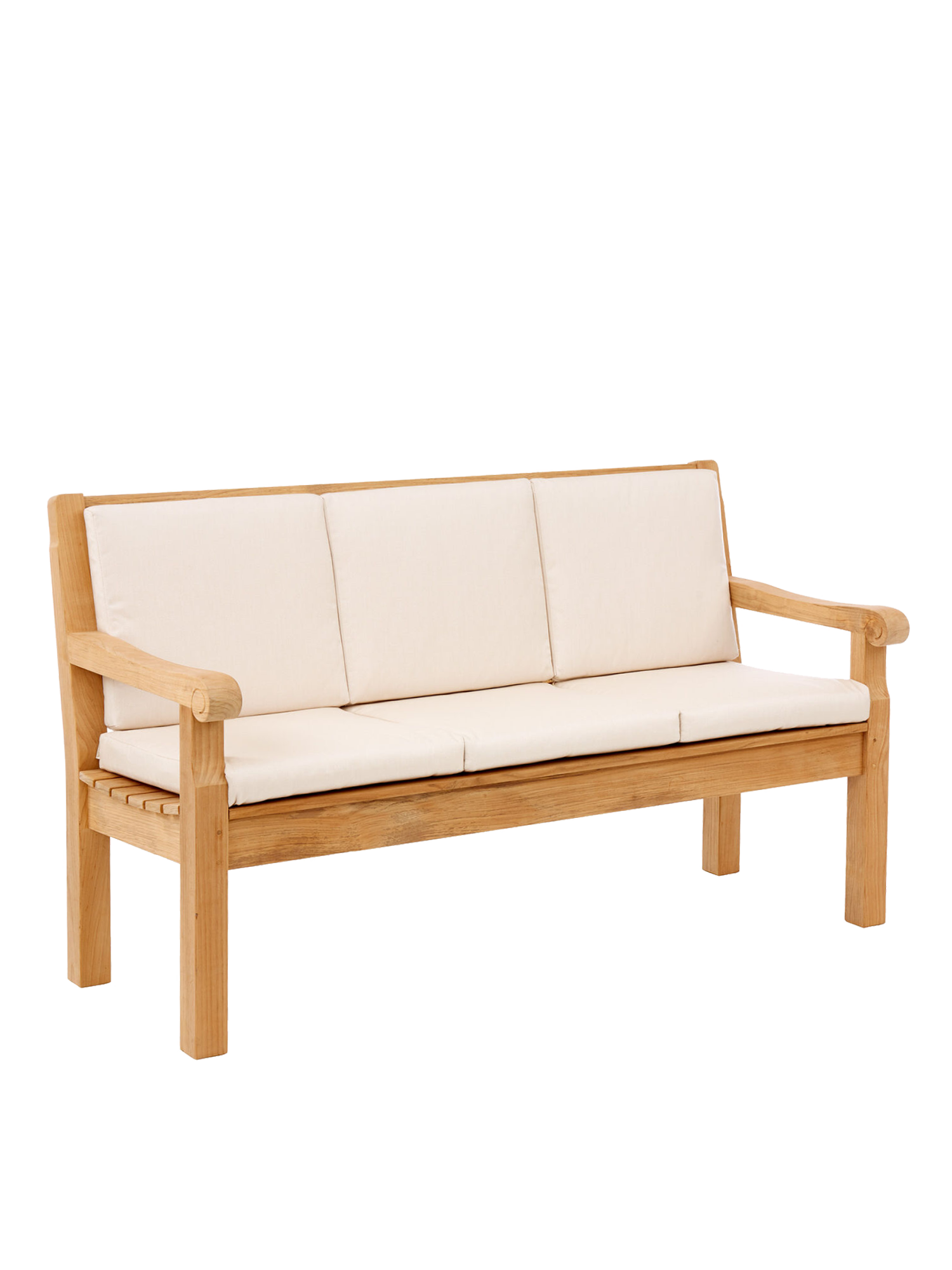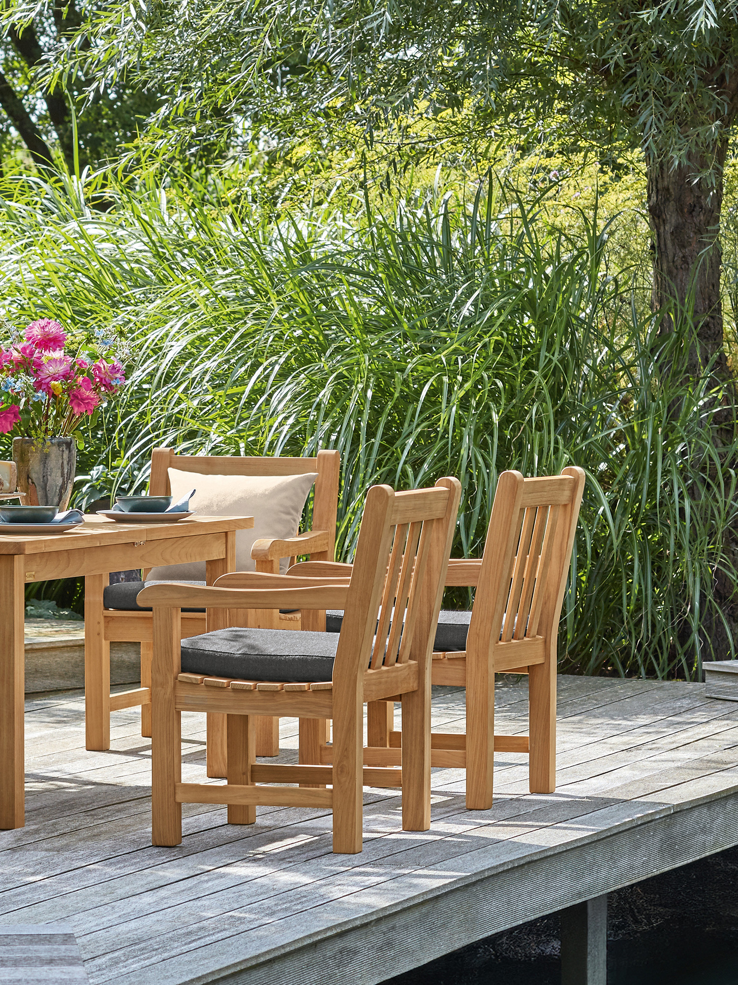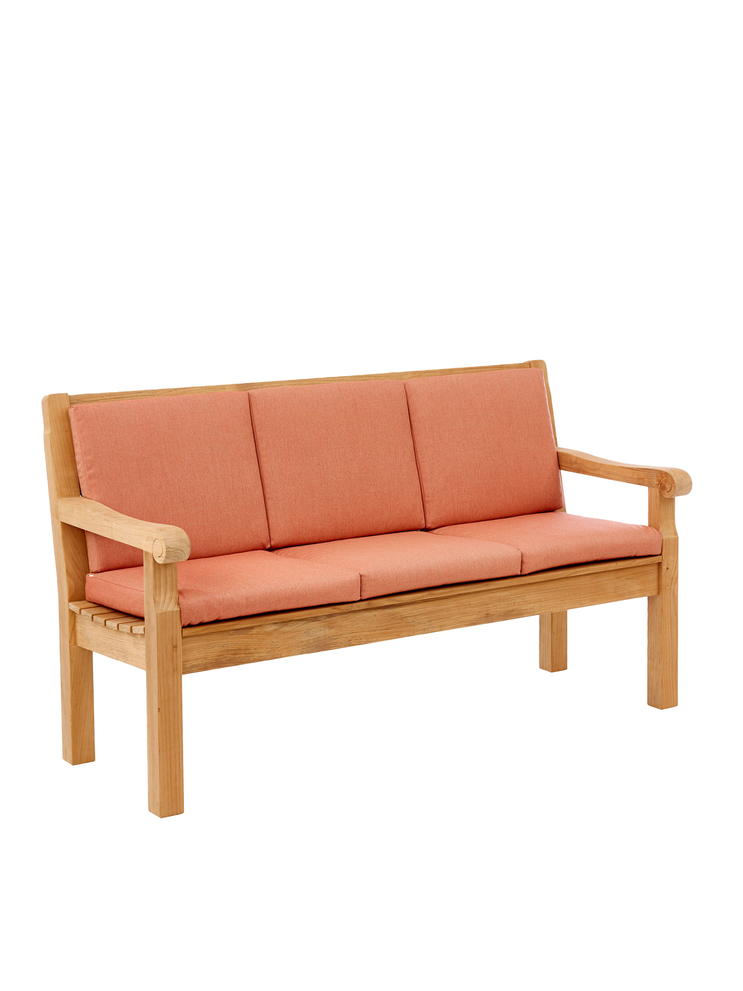Wer mit Hingabe Rasen mäht und Blumen giesst, darf sich auf englischer Tradition ausruhen. Wer einfach nur die Sonne geniessen will, auch. Klassisches Teakdesign adelt jeden Ort. In vier verschiedenen Grössen verwöhnt die Bank mit schmeichelnd glatten Oberflächen.