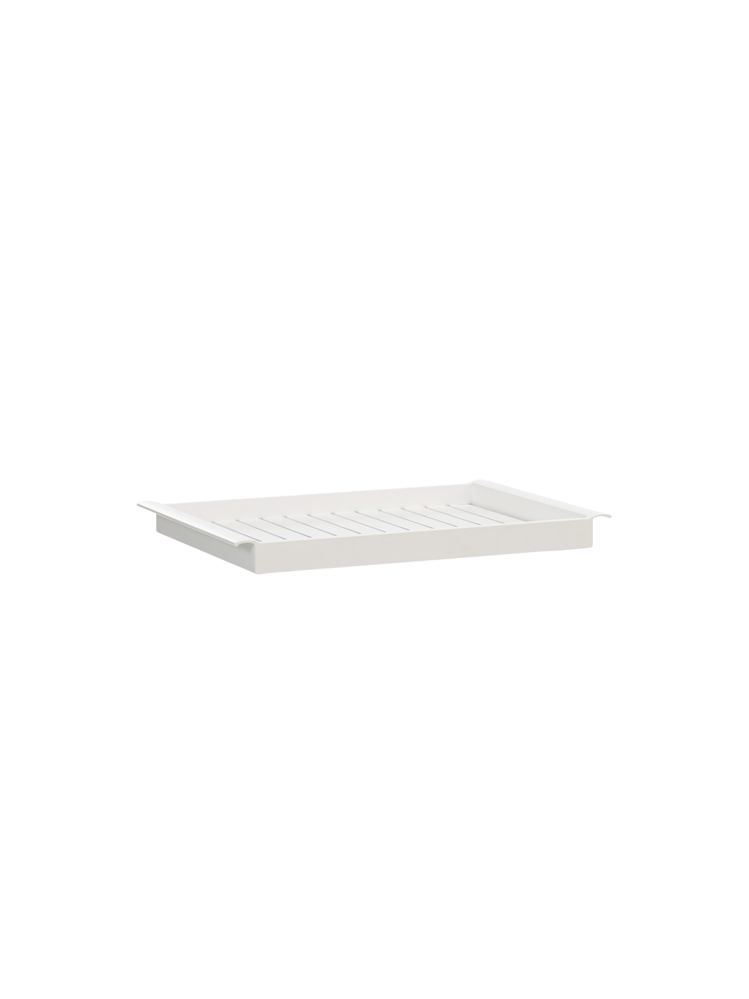 Praktisch, leicht und mit zwei Griffen versehen, steht das Tablett aus weiss pulverbeschichtetem Aluminiumprofilen jederzeit zu Diensten. Die aufwendig von Hand bearbeitete Pulverbeschichtung sorgt für eine angenehme Haptik und ist besonders haltbar und pflegeleicht.
