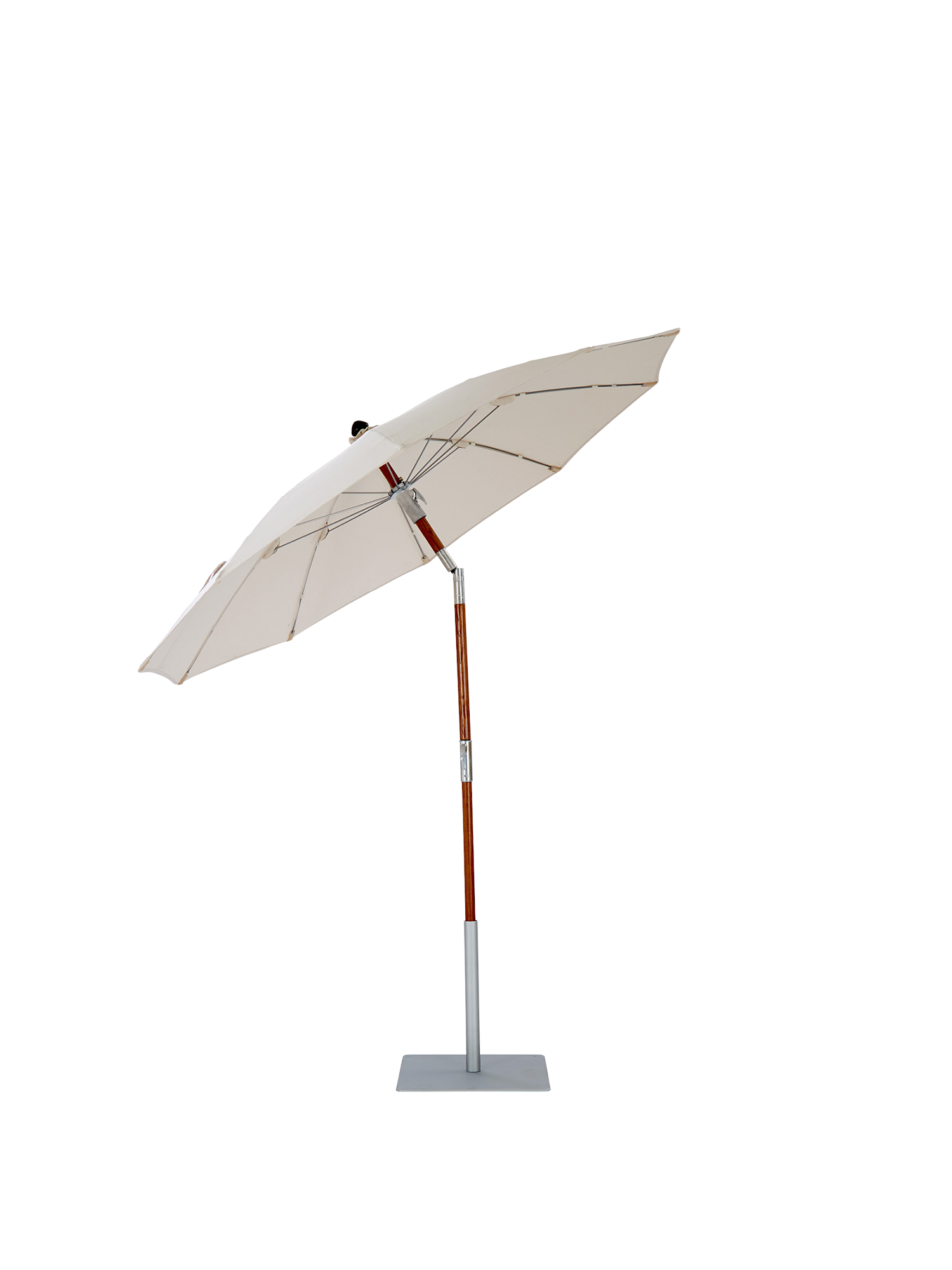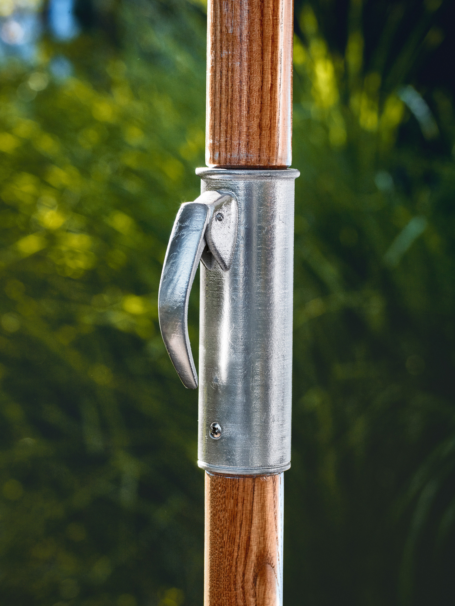 Toscana gibt es in zwei Ausführungen: mit einem Mast aus klar lackiertem Hartholz oder mit Aluminiummast.