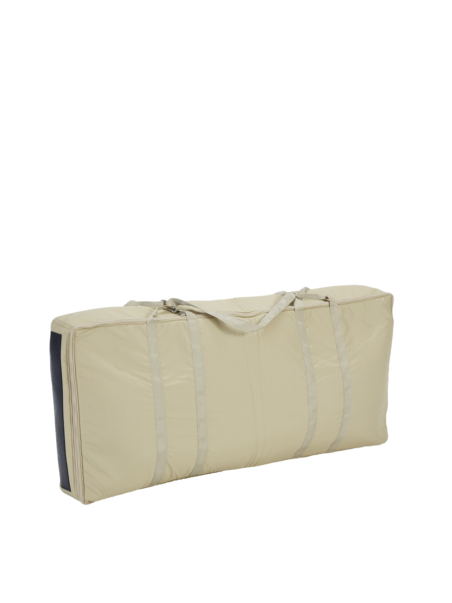 Transport und Schutz in einem. Ausgestattet mit einem Schultergurt und 2 Tragegriffen hilft die Tasche beim Transport der Pan Liege. Im Winterlager schützt sie das Liegemöbel mit einem weichen Schaumstoffkern.
