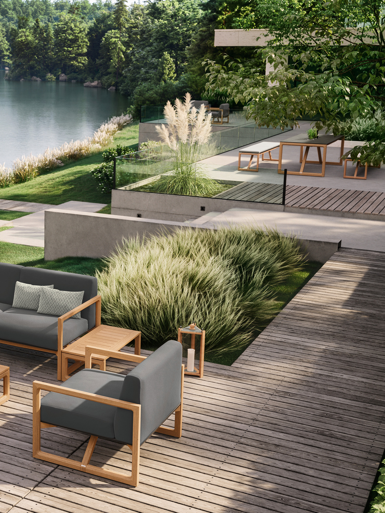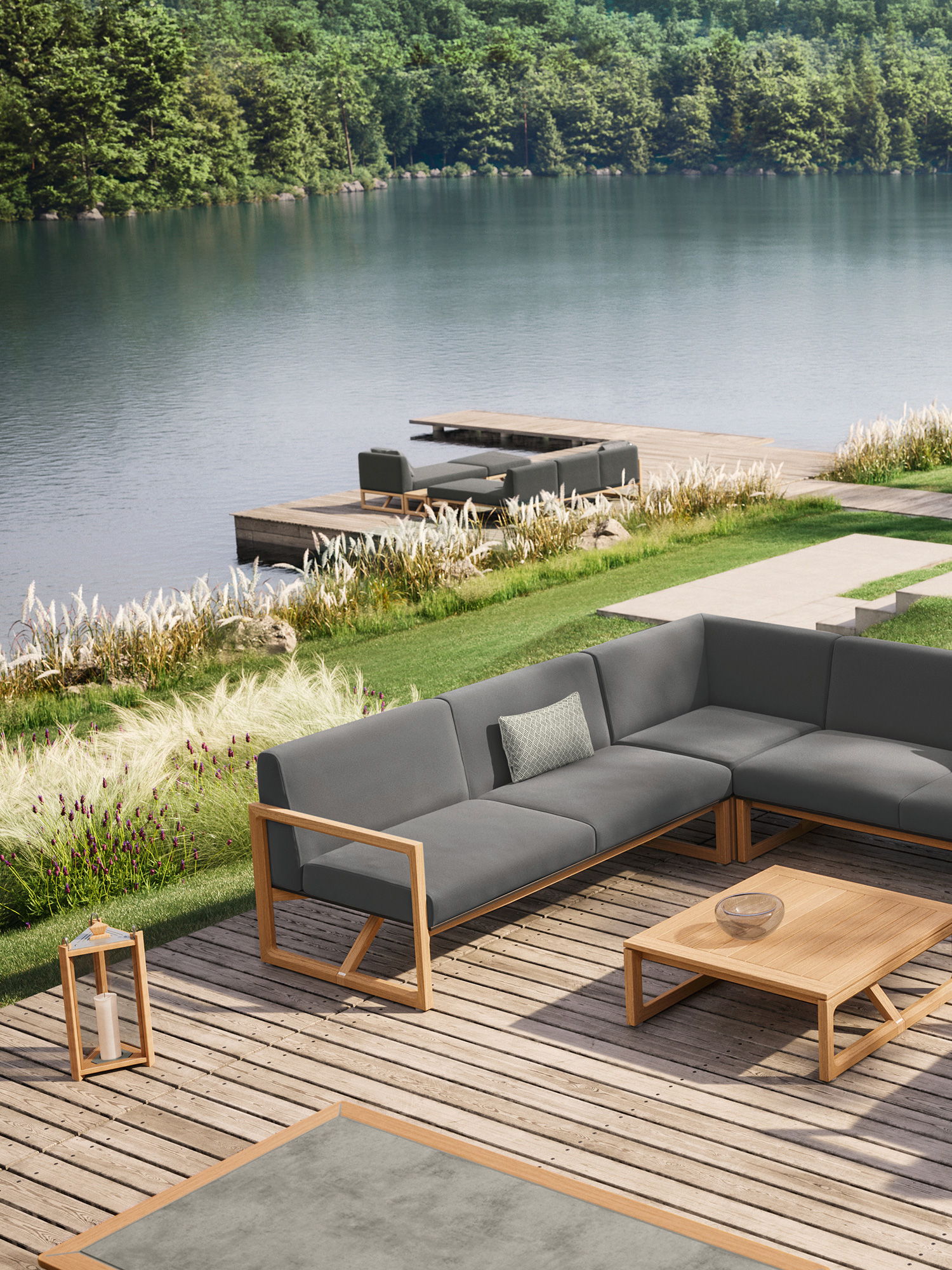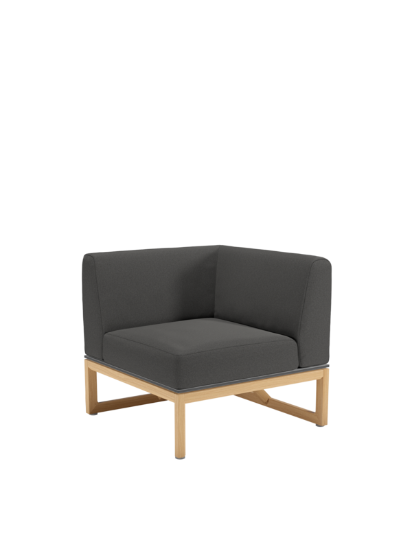 Ein markantes Teakgestell rahmt opulente Polster, die pure Behaglichkeit versprechen. Das vielseitige Eckelement eröffnet grosszügigen Gestaltungsspielraum und kann beliebig mit den anderen Polstermöbeln der Kollektion kombiniert werden. Das puristische Design verbindet das Eckelement mit der Trey Sitzgruppe. Gemeinsam laden die zeitlosen Dining- und Loungemöbel zur ganzheitlichen Einrichtung von Gärten und Terrassen ein. Für Komfort, dem einfach nichts hinzuzufügen ist.