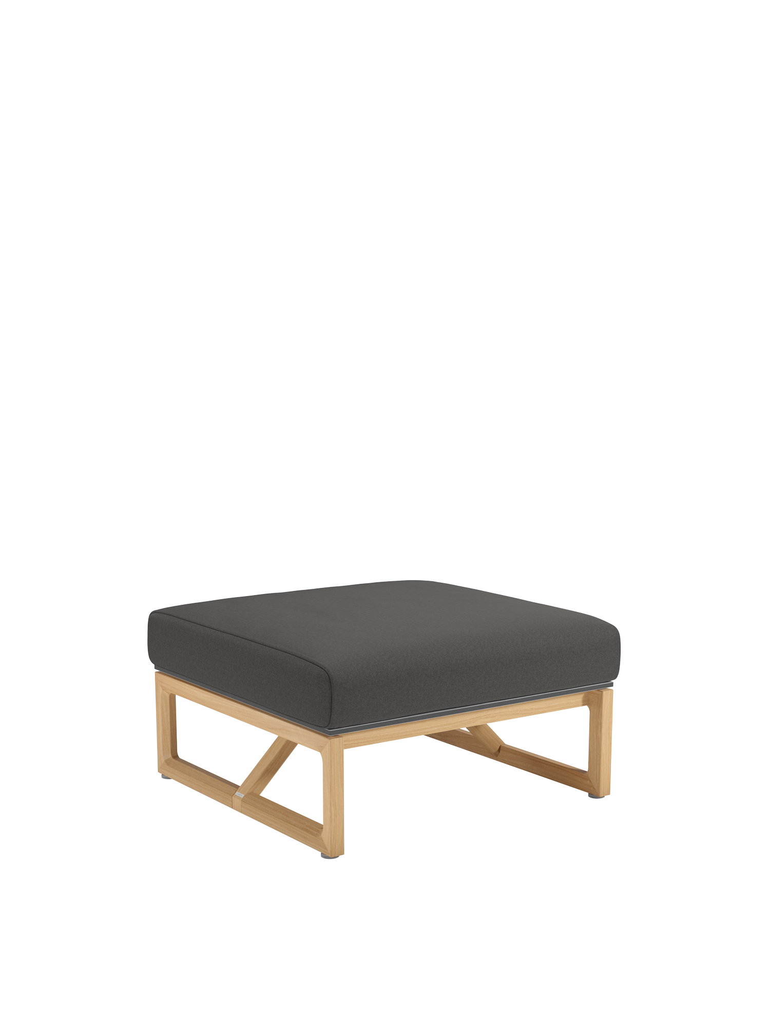 Ein markantes Teakgestell rahmt das opulente Polster, das pure Behaglichkeit verspricht. Der einladende Hocker empfiehlt sich als Solitär oder als Ergänzung zum Sessel der Kollektion. Das puristische Design verbindet den Hocker mit der Trey Sitzgruppe. Gemeinsam laden die zeitlosen Dining- und Loungemöbel zur ganzheitlichen Einrichtung von Gärten und Terrassen ein. Für Komfort, dem einfach nichts hinzuzufügen ist.