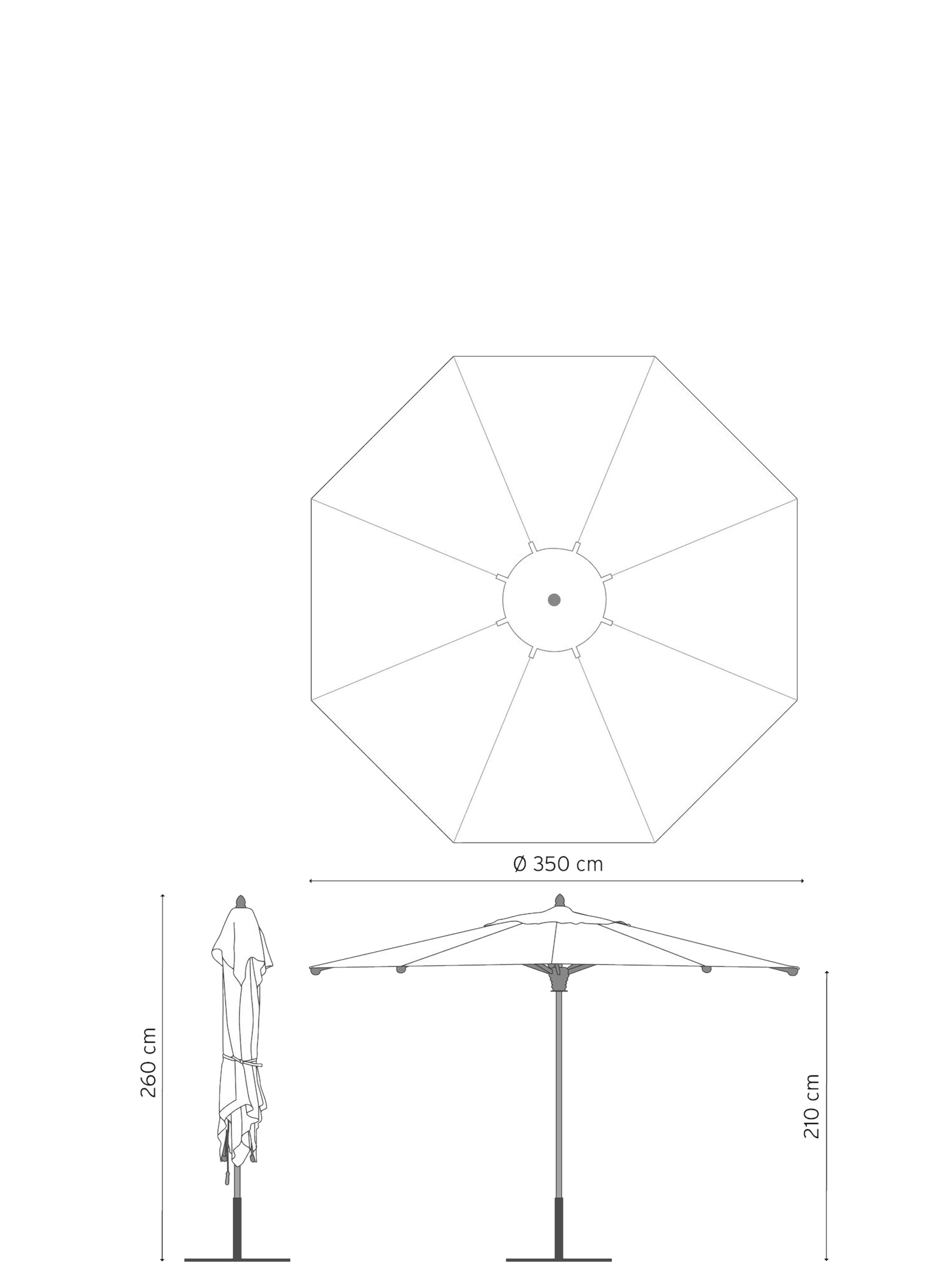 Umbria ist in drei Formen und verschiedenen Grössen im Farbton Elfenbein erhältlich. Ob rund, quadratisch oder rechteckig - die Sonnenschirme eignen sich besonders für grössere Tafelrunden. Umbria harmoniert sowohl mit klassischen als auch mit modernen Möbeln.