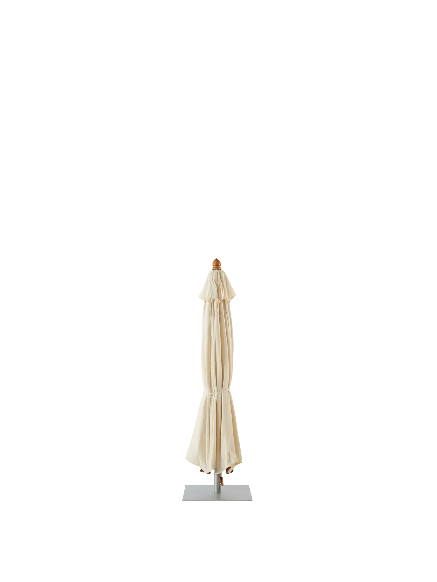 Als grösstes der sieben Umbria Sommerdächer ist dieses Modell nicht für den Schirmständer mit der Ref.Nr. 3951 geeignet. Unsere Empfehlung ist der schwerere Schirmständer mit der Ref.Nr. 3949.