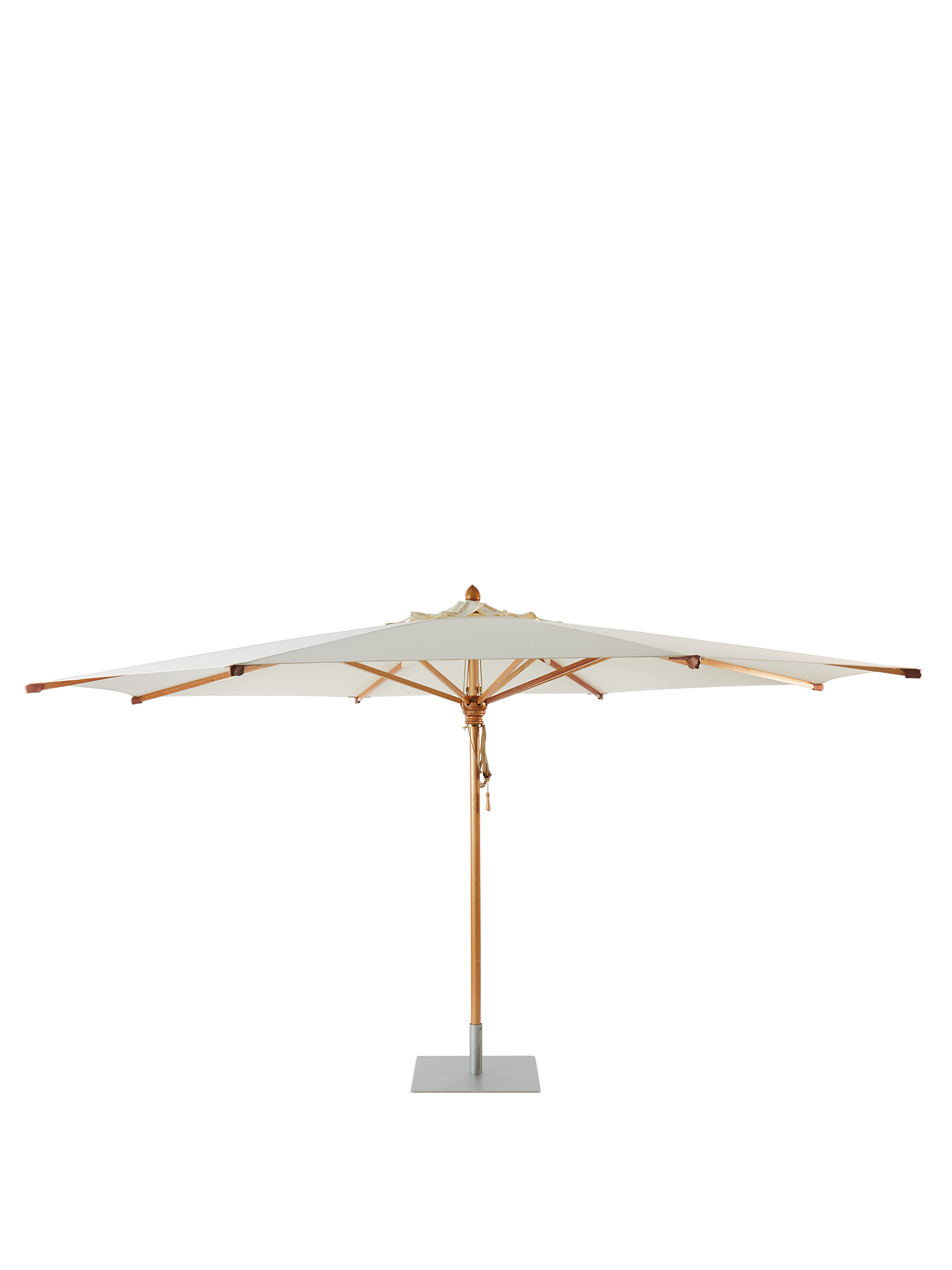 Umbria ist in sieben Grössen und einer Vielzahl von Formen erhältlich. Ob rund, quadratisch oder rechteckig - die Schirme eignen sich besonders für grössere Tafelrunden.
