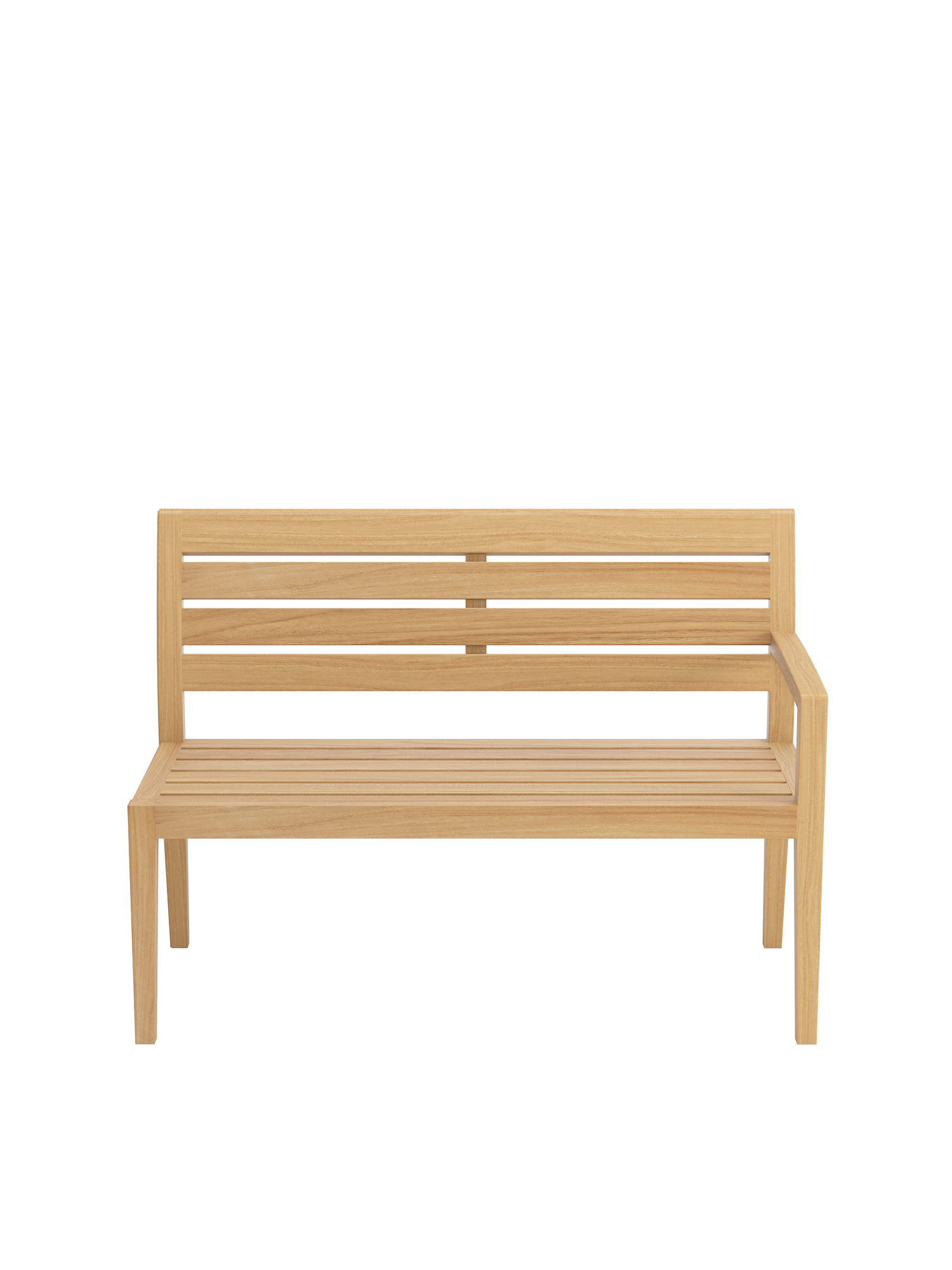 Die Valencia Bank mit einer Armlehne auf der linken Seite ist Bestandteil eines modularen Systems und kann zu vielfältigen Eckbänken kombiniert werden.