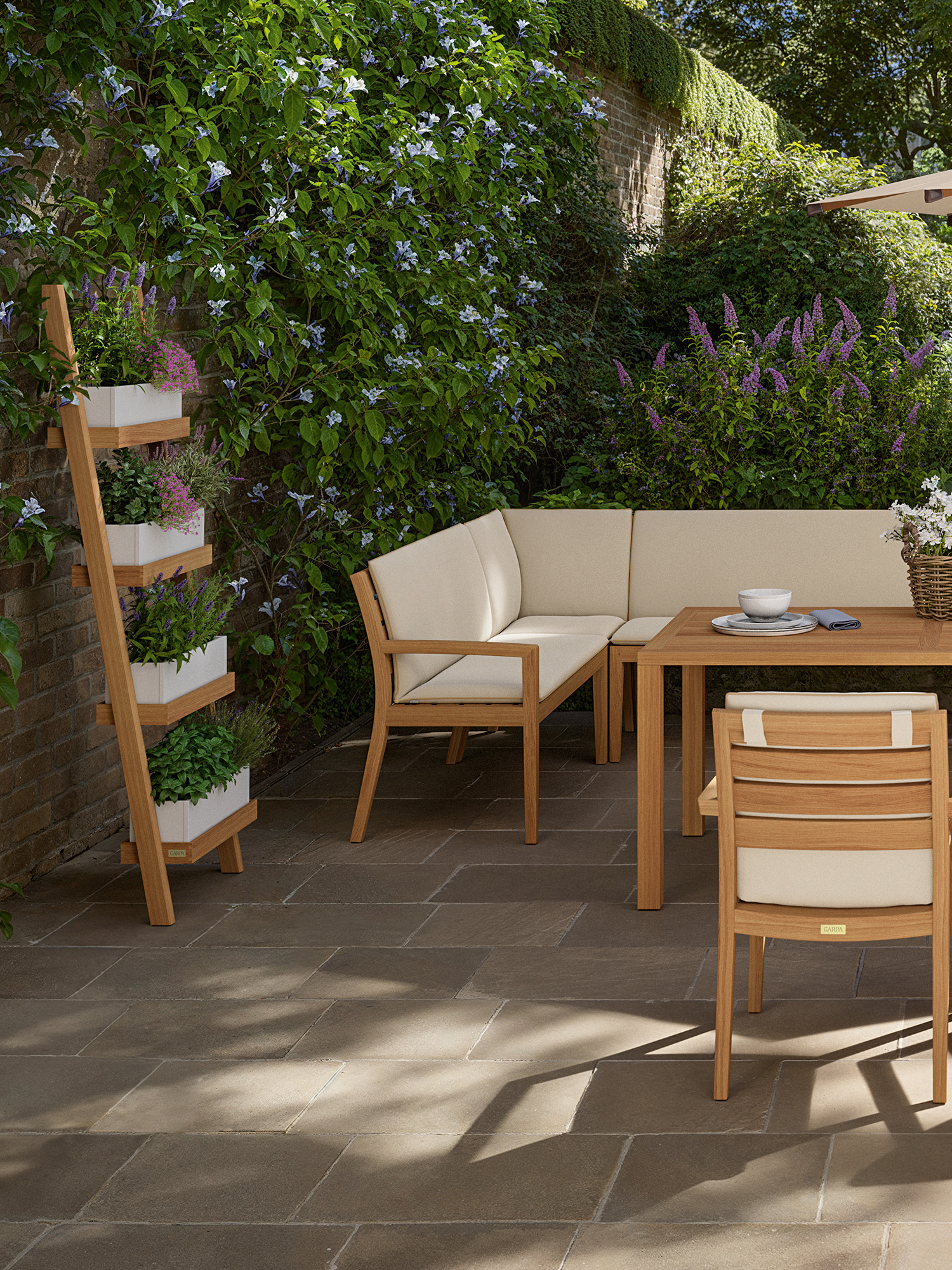 Als Abschlusselement im Valencia Eckmodul oder als Solitär – die Valencia Bank mit einer Armlehne auf der linken Seite lädt ein, Platz zu nehmen. Bei der klassischen Nutzung als Gartenbank verspricht sie behagliche Ruhepausen im Freien. Als Bestandteil des modularen Systems weckt sie beste Erinnerungen an frühere Zeiten. Die Valencia Eckbank aus hochwertigem Teakholz versammelt lebendige Runden um passende Tische – und sorgt so dafür, dass neue Erinnerungen geschrieben werden.