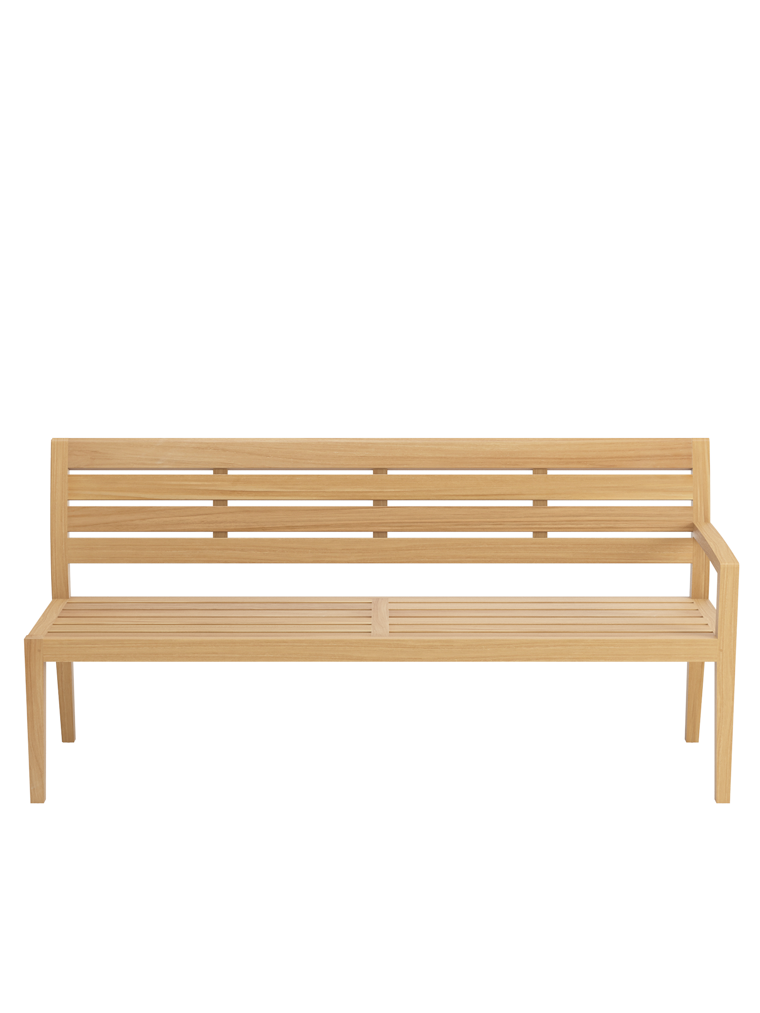 Die Valencia Bank mit einer Armlehne auf der linken Seite ist Bestandteil eines modularen Systems und kann zu vielfältigen Eckbänken kombiniert werden.