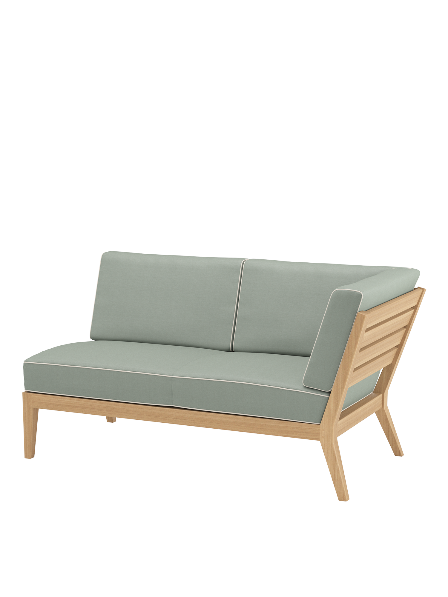 Am Ufer des Schwimmbeckens oder am Rand der Terrasse, auf einem Stadtbalkon oder mitten im Garten: Mit Elementen der Valencia Lounge findet ein Ruhepol in jeder luftigen Lage zur angemessenen Grösse. Extra breit und besonders tief, bieten Chaiselongues, Mittelelemente und Eckmodule aus Teak mit ihren quer verlaufenden Sitz- und Rückenlehnen und ausgestellten Beinen viel Raum zum Anlehnen. Dicke, von Kedern gerahmte Polster und Federkissen in frischen Farben setzen dazu sommerliche Akzente.