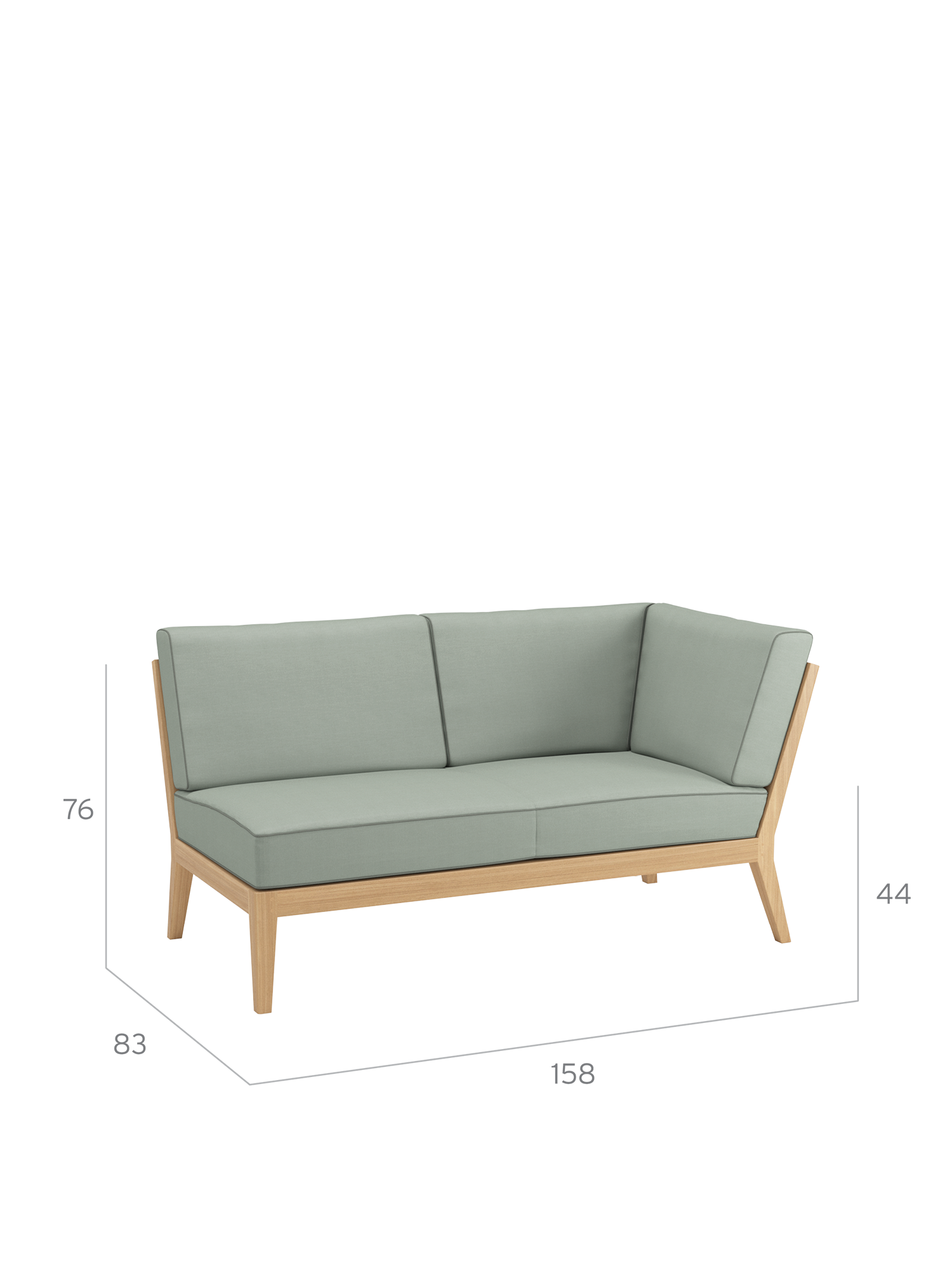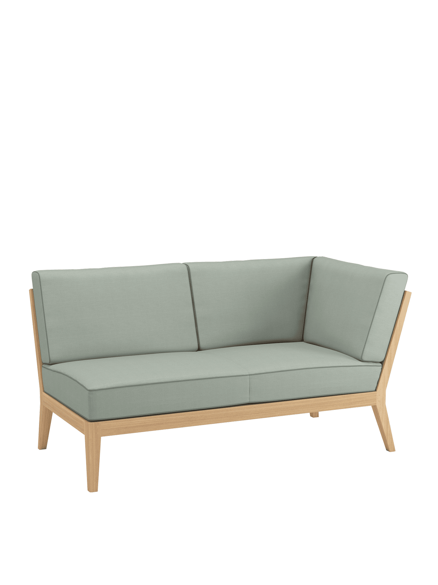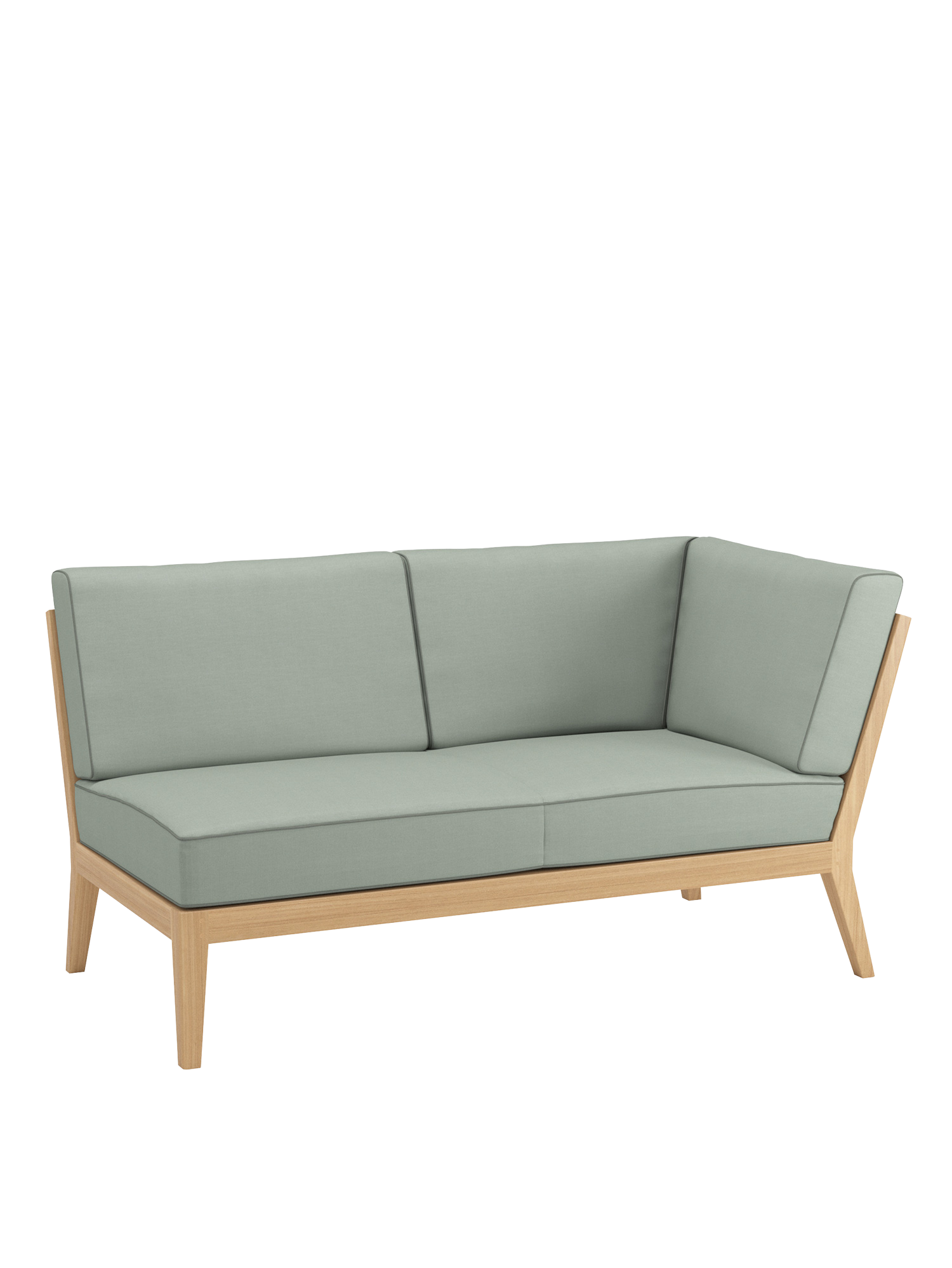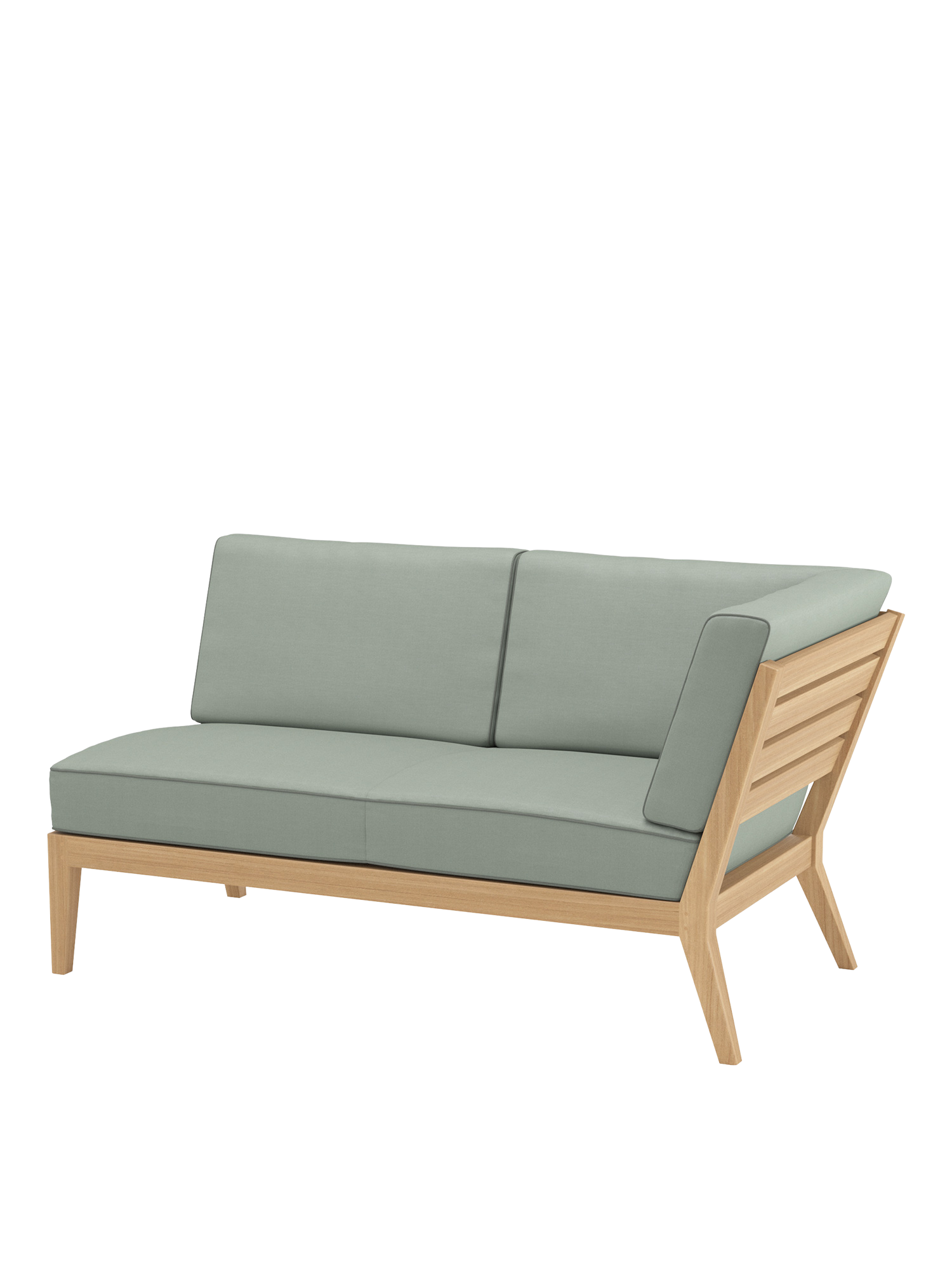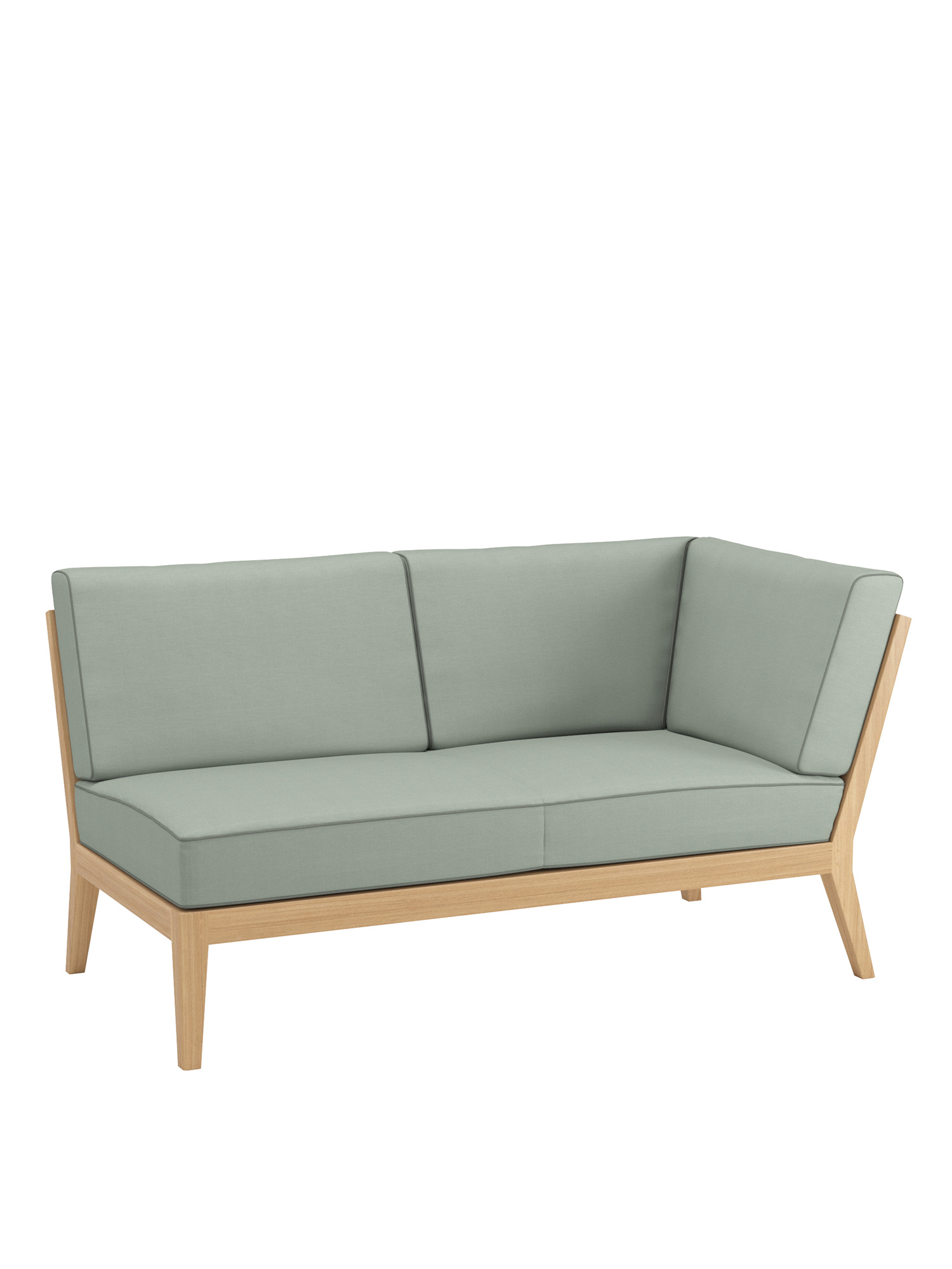 Am Ufer des Schwimmbeckens oder am Rand der Terrasse, auf einem Stadtbalkon oder mitten im Garten: Mit Elementen der Valencia Lounge findet ein Ruhepol in jeder luftigen Lage zur angemessenen Grösse. Extra breit und besonders tief, bieten Chaiselongues, Mittelelemente und Eckmodule aus Teak mit ihren quer verlaufenden Sitz- und Rückenlehnen und ausgestellten Beinen viel Raum zum Anlehnen. Dicke, von Kedern gerahmte Polster und Federkissen in frischen Farben setzen dazu sommerliche Akzente.