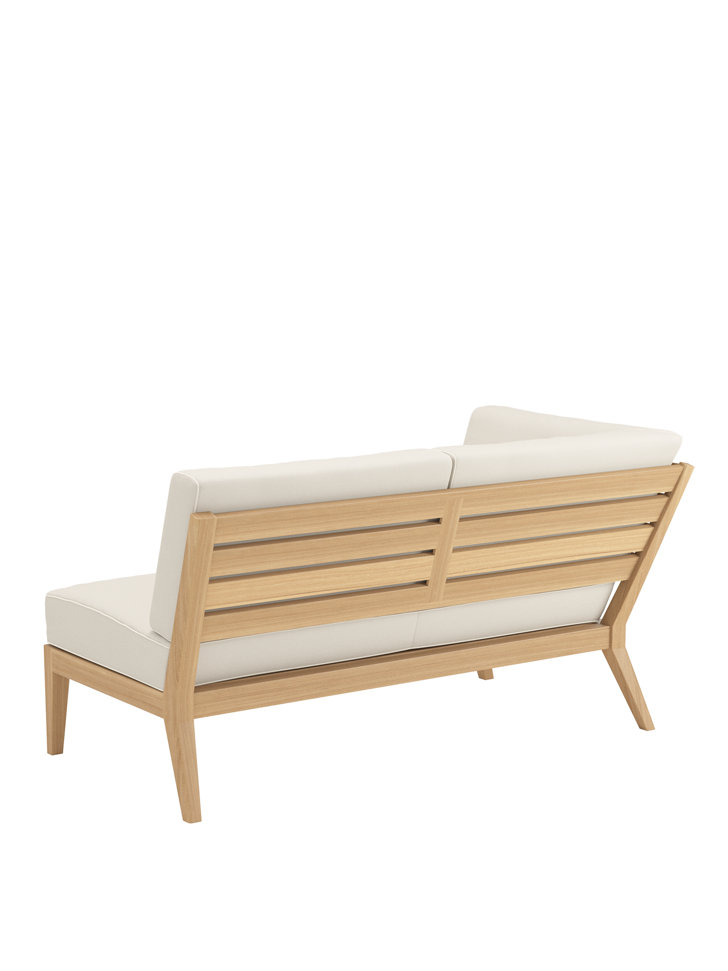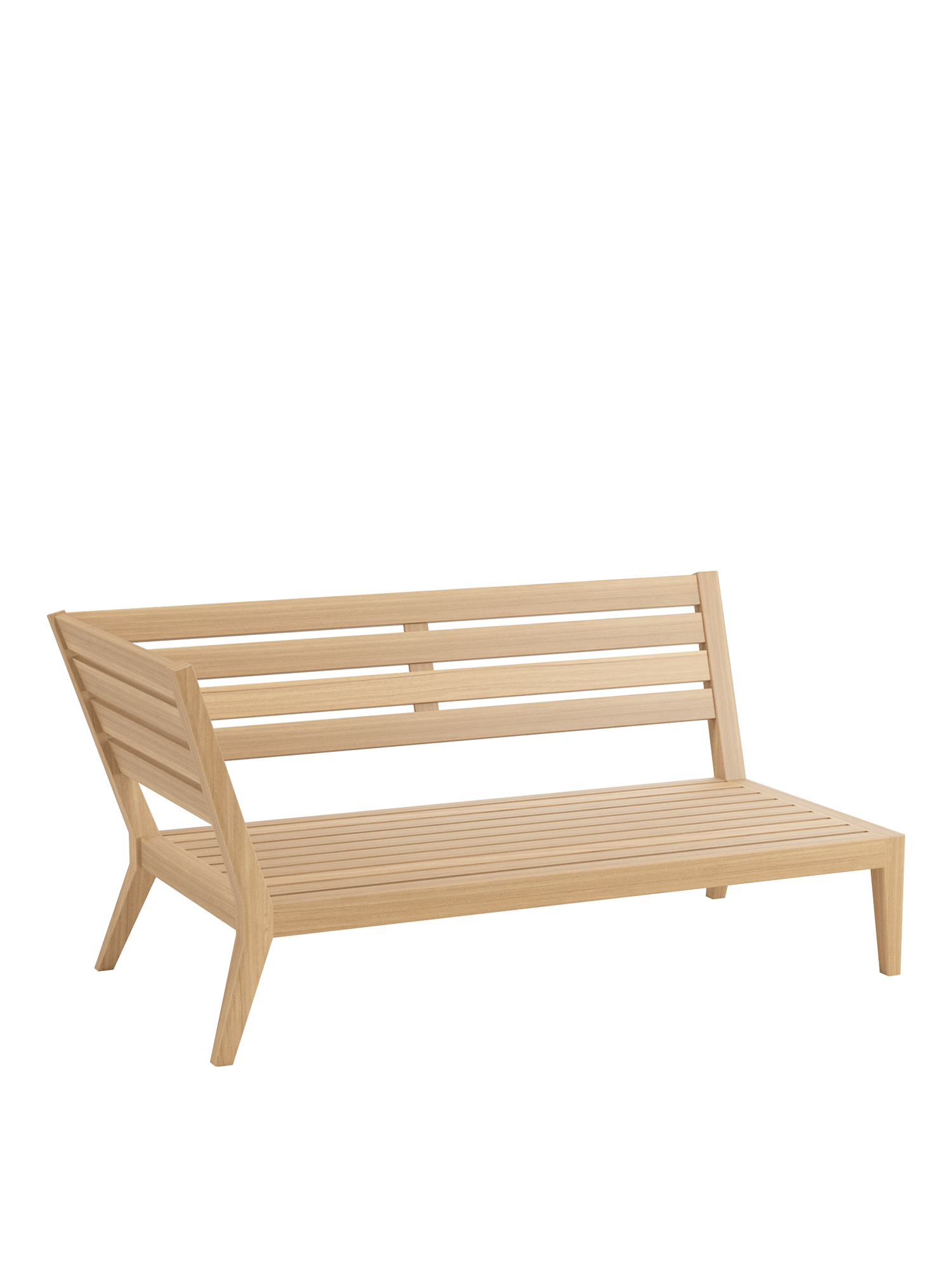 Am Ufer des Schwimmbeckens oder am Rand der Terrasse, auf einem Stadtbalkon oder mitten im Garten: Mit Elementen der Valencia Lounge findet ein Ruhepol in jeder luftigen Lage zur angemessenen Grösse. Extra breit und besonders tief, bieten Chaiselongues, Mittelelemente und Eckmodule aus Teak mit ihren quer verlaufenden Sitz- und Rückenlehnen und ausgestellten Beinen viel Raum zum Anlehnen. Dicke, von Kedern gerahmte Polster und Federkissen in frischen Farben setzen dazu sommerliche Akzente.