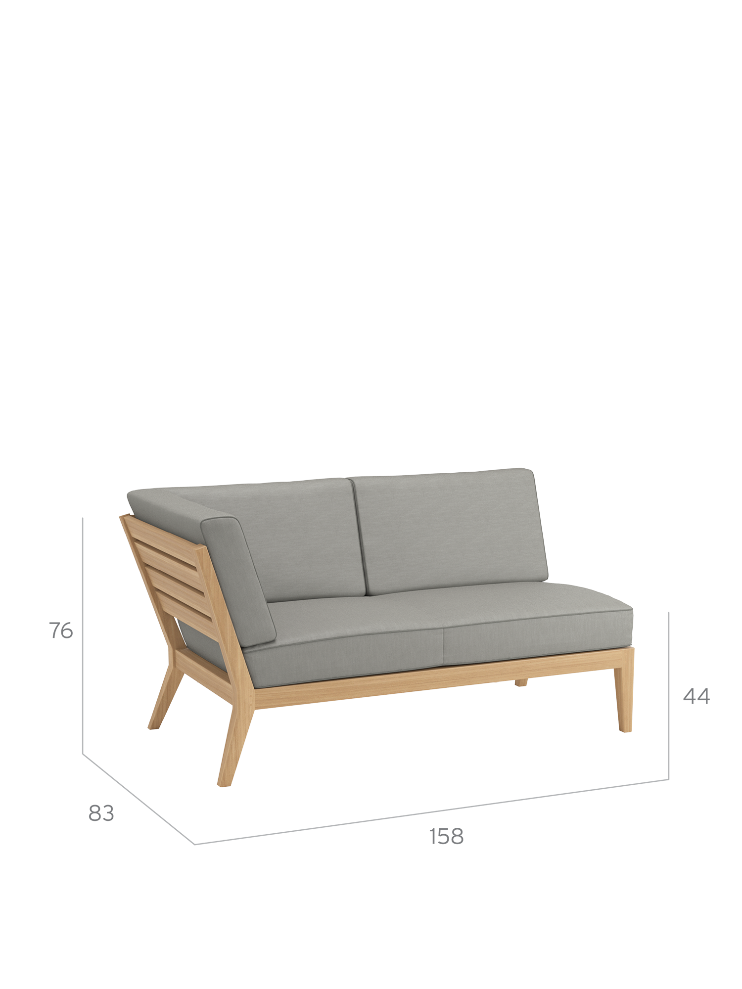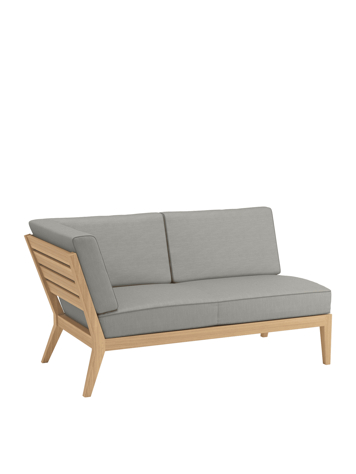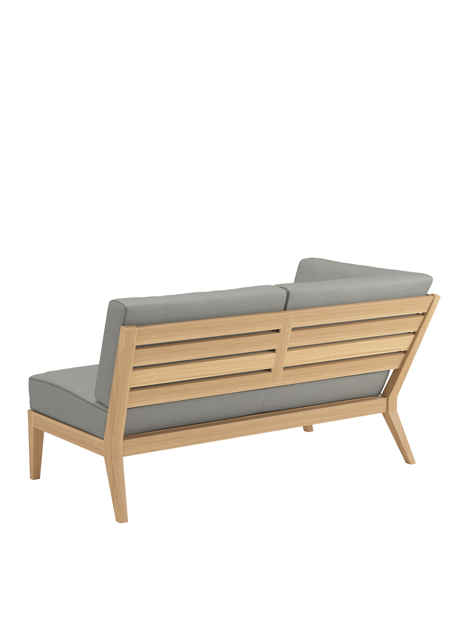 Am Ufer des Schwimmbeckens oder am Rand der Terrasse, auf einem Stadtbalkon oder mitten im Garten: Mit Elementen der Valencia Lounge findet ein Ruhepol in jeder luftigen Lage zur angemessenen Grösse. Extra breit und besonders tief, bieten Chaiselongues, Mittelelemente und Eckmodule aus Teak mit ihren quer verlaufenden Sitz- und Rückenlehnen und ausgestellten Beinen viel Raum zum Anlehnen. Dicke, von Kedern gerahmte Polster und Federkissen in frischen Farben setzen dazu sommerliche Akzente.