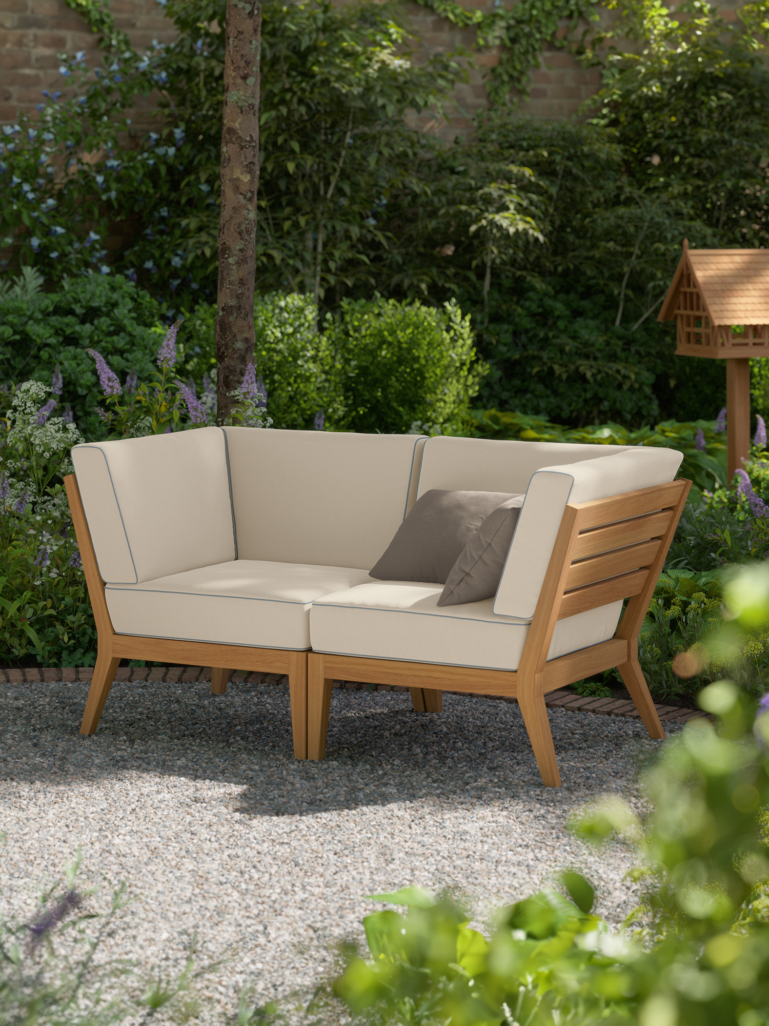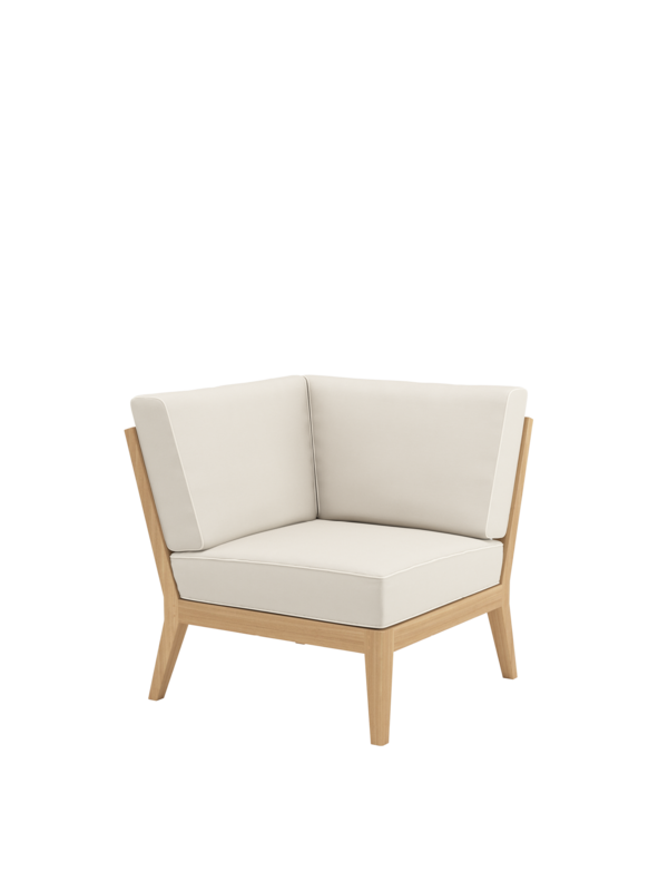 Am Ufer des Schwimmbeckens oder am Rand der Terrasse, auf einem Stadtbalkon oder mitten im Garten: Mit Elementen der Valencia Lounge findet ein Ruhepol in jeder luftigen Lage zur angemessenen Grösse. Extra breit und besonders tief, bieten Chaiselongues, Mittelelemente und Eckmodule aus Teak mit ihren quer verlaufenden Sitz- und Rückenlehnen und ausgestellten Beinen viel Raum zum Anlehnen. Dicke, von Kedern gerahmte Polster und Federkissen in frischen Farben setzen dazu sommerliche Akzente.
