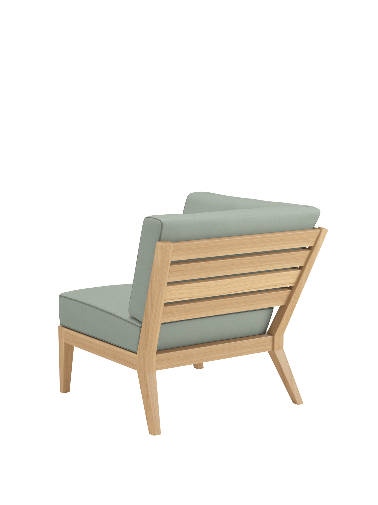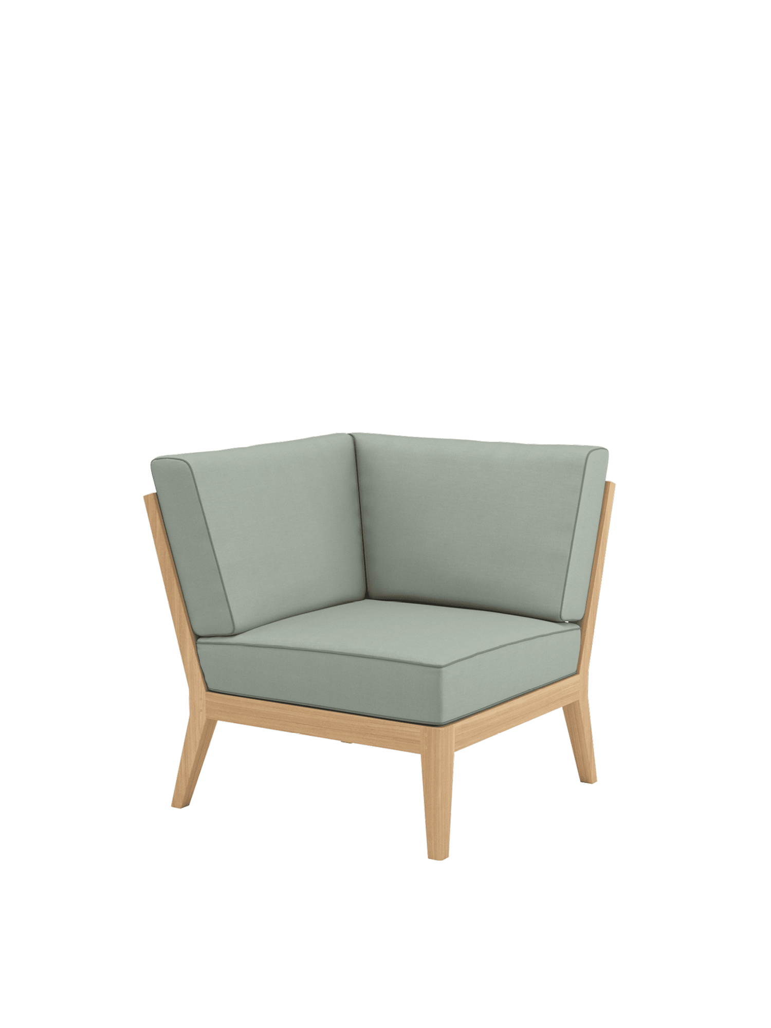 Am Ufer des Schwimmbeckens oder am Rand der Terrasse, auf einem Stadtbalkon oder mitten im Garten: Mit Elementen der Valencia Lounge findet ein Ruhepol in jeder luftigen Lage zur angemessenen Grösse. Extra breit und besonders tief, bieten Chaiselongues, Mittelelemente und Eckmodule aus Teak mit ihren quer verlaufenden Sitz- und Rückenlehnen und ausgestellten Beinen viel Raum zum Anlehnen. Dicke, von Kedern gerahmte Polster und Federkissen in frischen Farben setzen dazu sommerliche Akzente.