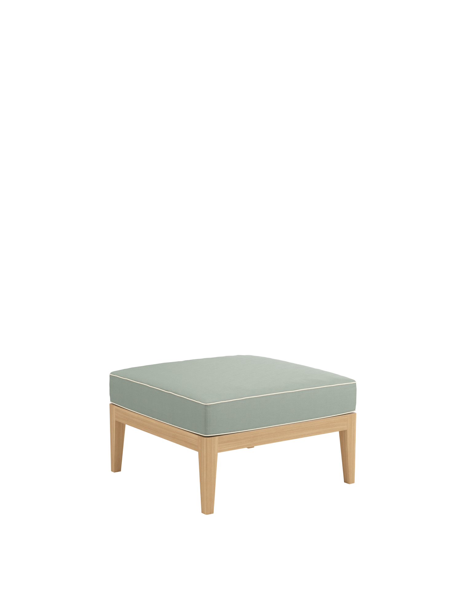 Der passende Hocker verlängert die grosszügigen Elemente, entspannt angenehm die Beine und dient mit aufgelegtem Polster als Sitz.