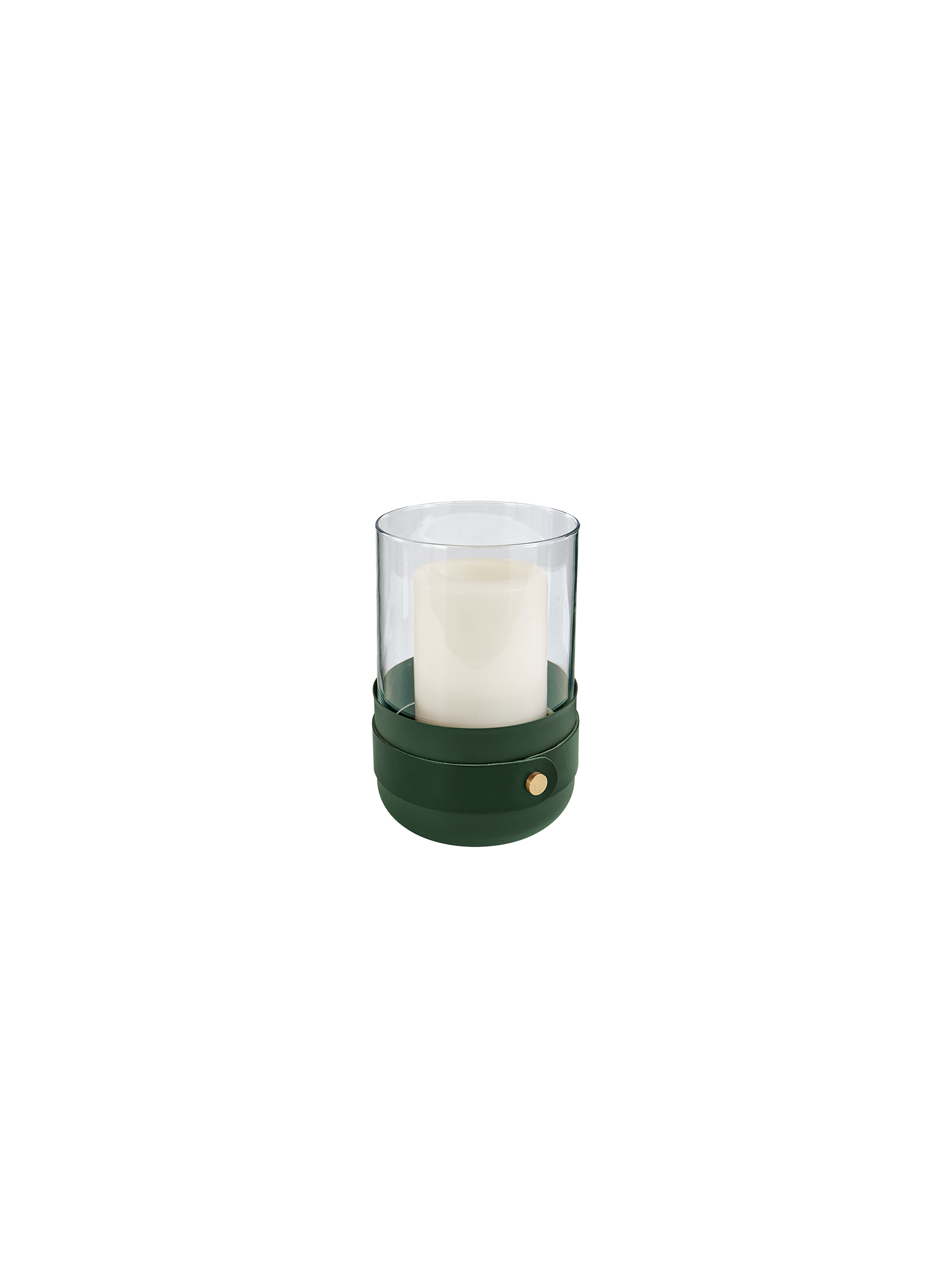 Das Vero Windlicht besteht aus pulverbeschichtetem Metall und klarem Glas. Ein robustes Band aus Rindsleder sorgt für einen stimmigen Akzent, eine passende Kerze gehört zum Lieferumfang. Das Windlicht ist nicht für den dauerhaften Einsatz im Freien geeignet.