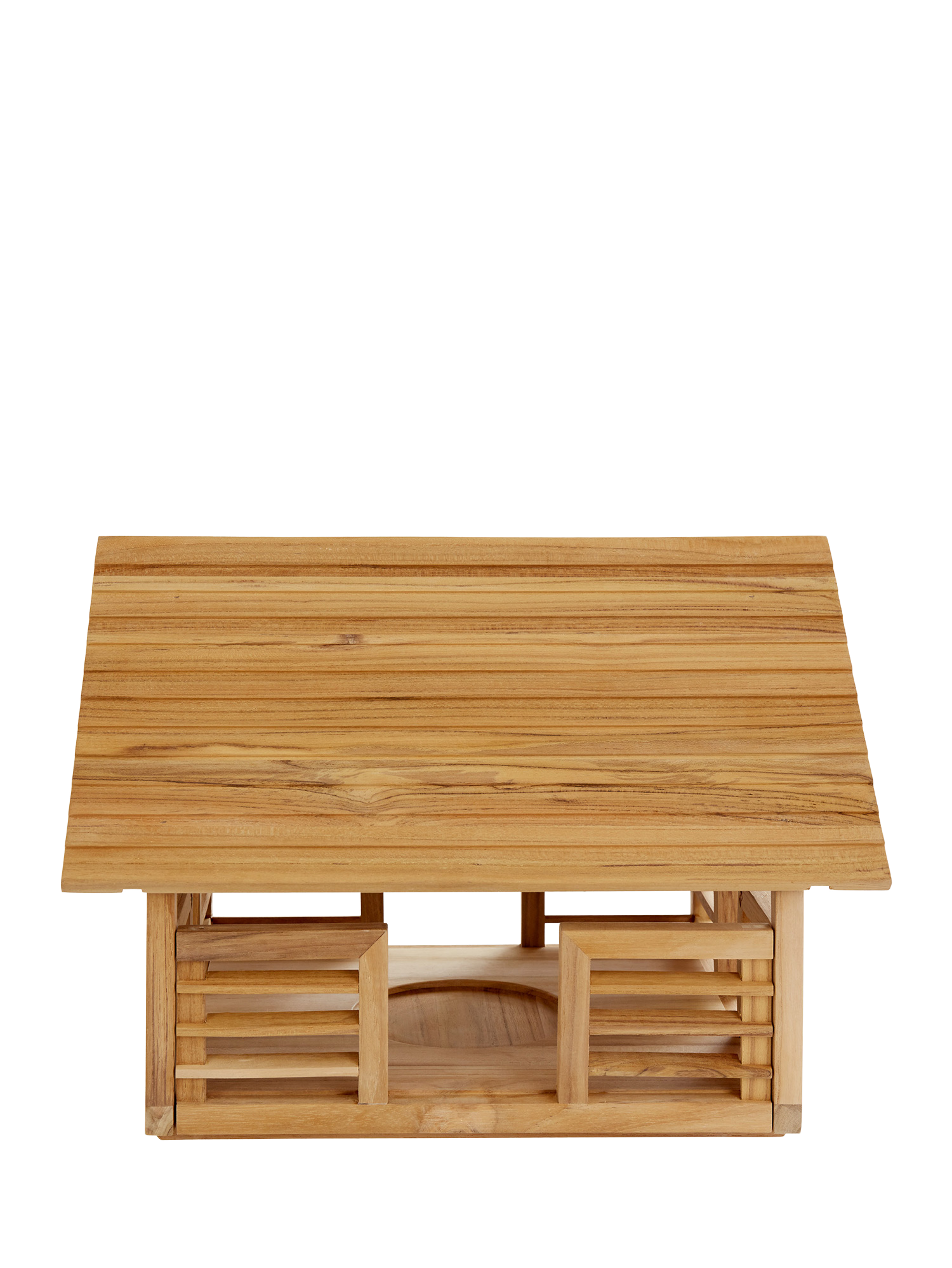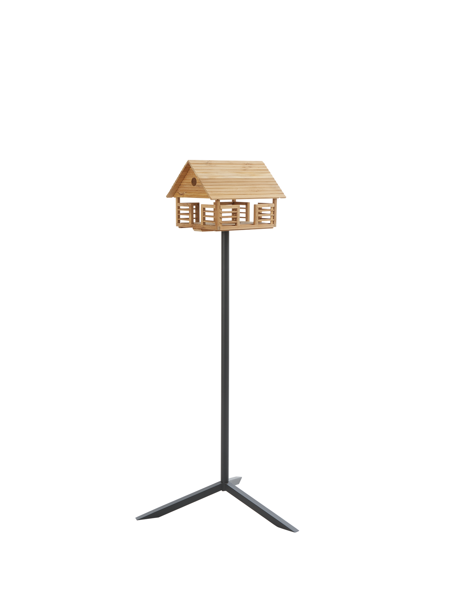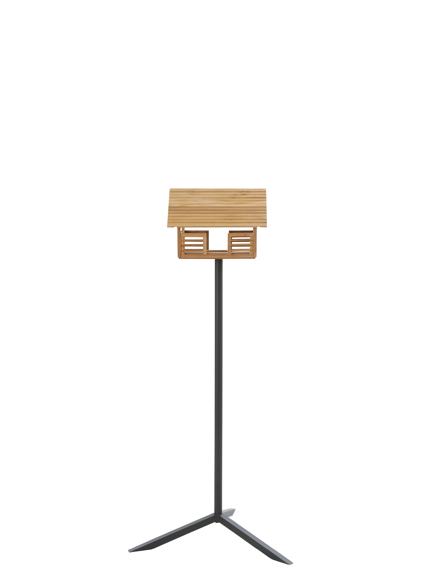 Die offene Bauweise des filigranen Futterplatzes erlaubt kleinen Vögeln wachsame Blicke nach allen Seiten und Menschen ungehinderte Sicht auf das lebhafte Geschehen. An der Längsseite lässt sich mit einem Handgriff die Futterlade herausziehen. In bester Handwerkstradition aus Teakholz gefertigt, steht das Vogelhaus bei dieser Beetlösung auf einem stabilen, unauffälligen Ständer aus pulverbeschichtetem Aluminium. Er wird mit mitgelieferten Spiessen im Boden fixiert.
